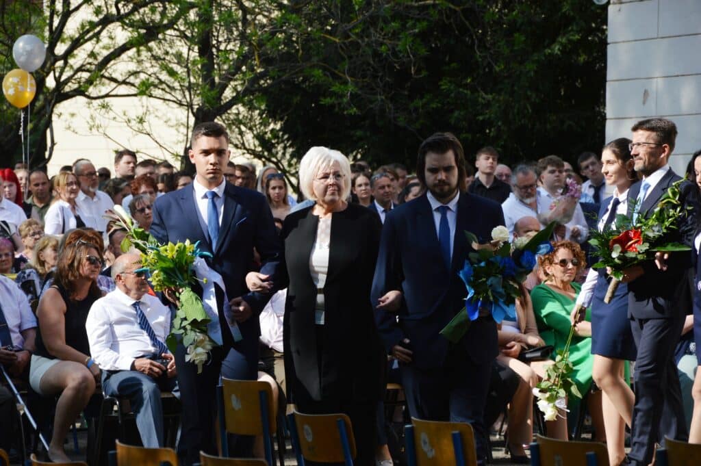 A folytatásban az igazgató megköszönte a pedagógusok áldozatos munkáját, kiemelve az osztályfőnököket: Kiss Gabriellát, Kálmán Tamást, Hajagos-Tóth Verát, Bozóné Rosta Esztert és Szolnoki Tamást. A szülőknek hálát adott, amiért négy, illetve hat évre a gimnáziumra és annak tanáraira bízták gyermekeiket.