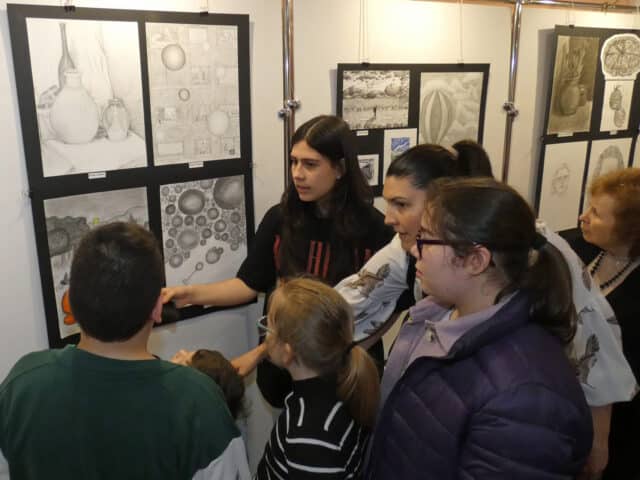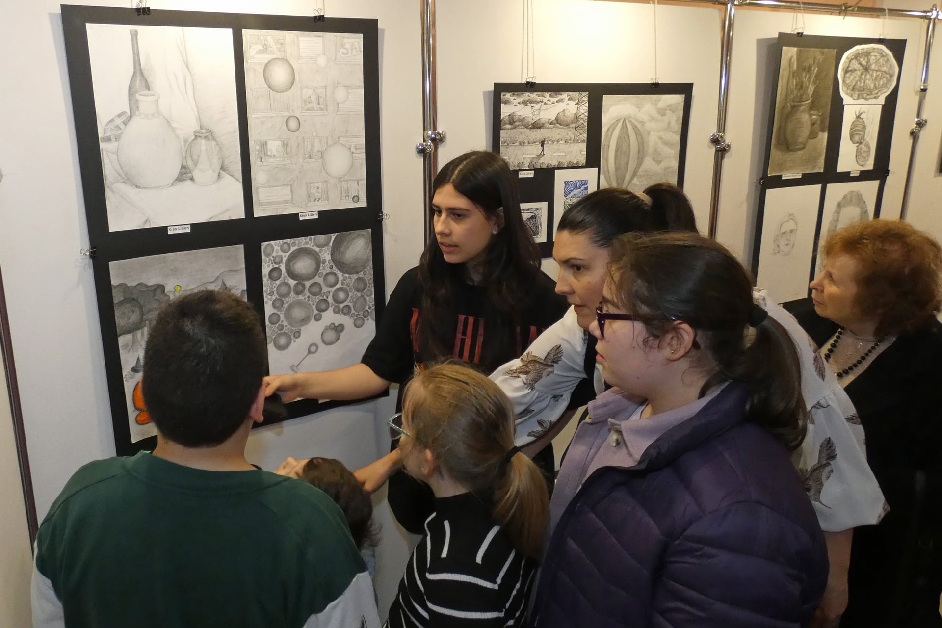 A tárlaton többféle technikával, anyaggal találkozik a néző: látható toll- és ceruzarajz, akvarell, tempera, kollázs, fekete-fehér, valamint színes fotó, agyagszobor. A kiállítást Kis-Fekete Vilmos, a művészeti iskola igazgatója és Szabó Ildikó tanárnő nyitotta meg.