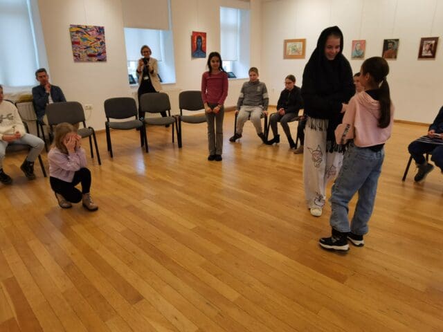 Abonyi Szilvia könyvtárigazgató rövid bevezetőjében mesélt az épület múltjáról, a Hattyúház nevének eredetéről, valamint a Petőfi családhoz fűződő kötődéséről. Ezt követően Páncsity Orsolya, a Magyarországi Németek Általános Művelődési Központjának pedagógusa és drámapedagógusa vezette a foglalkozást.