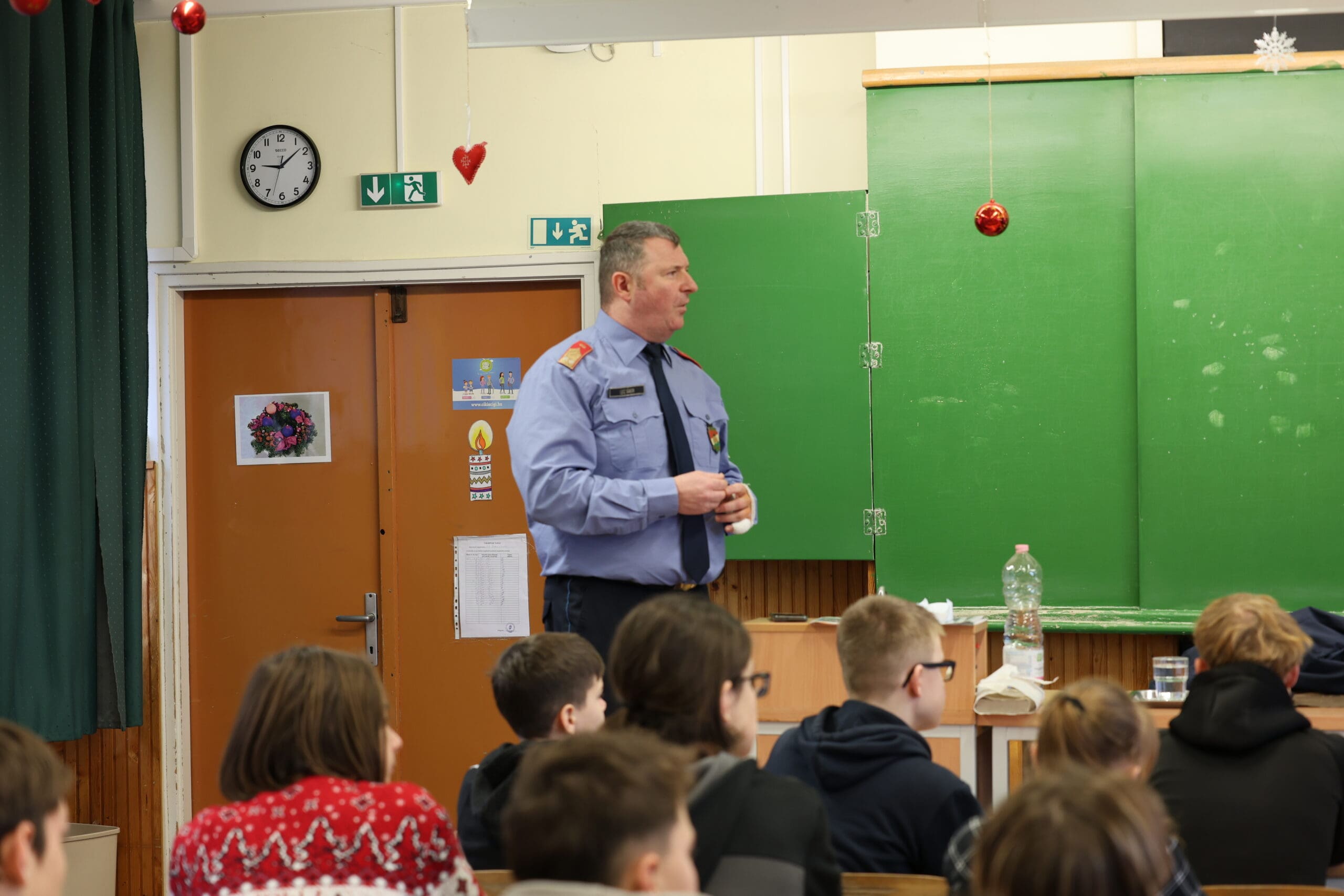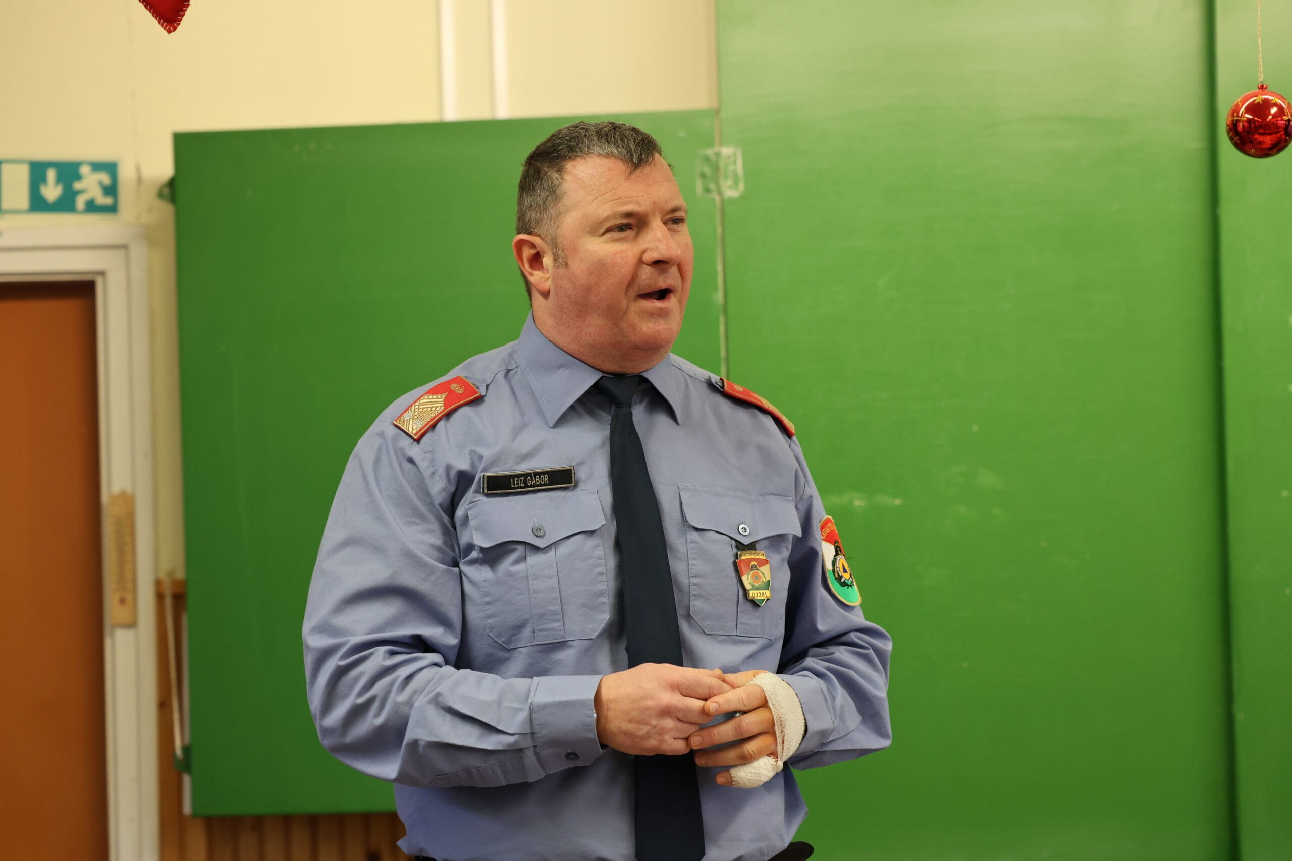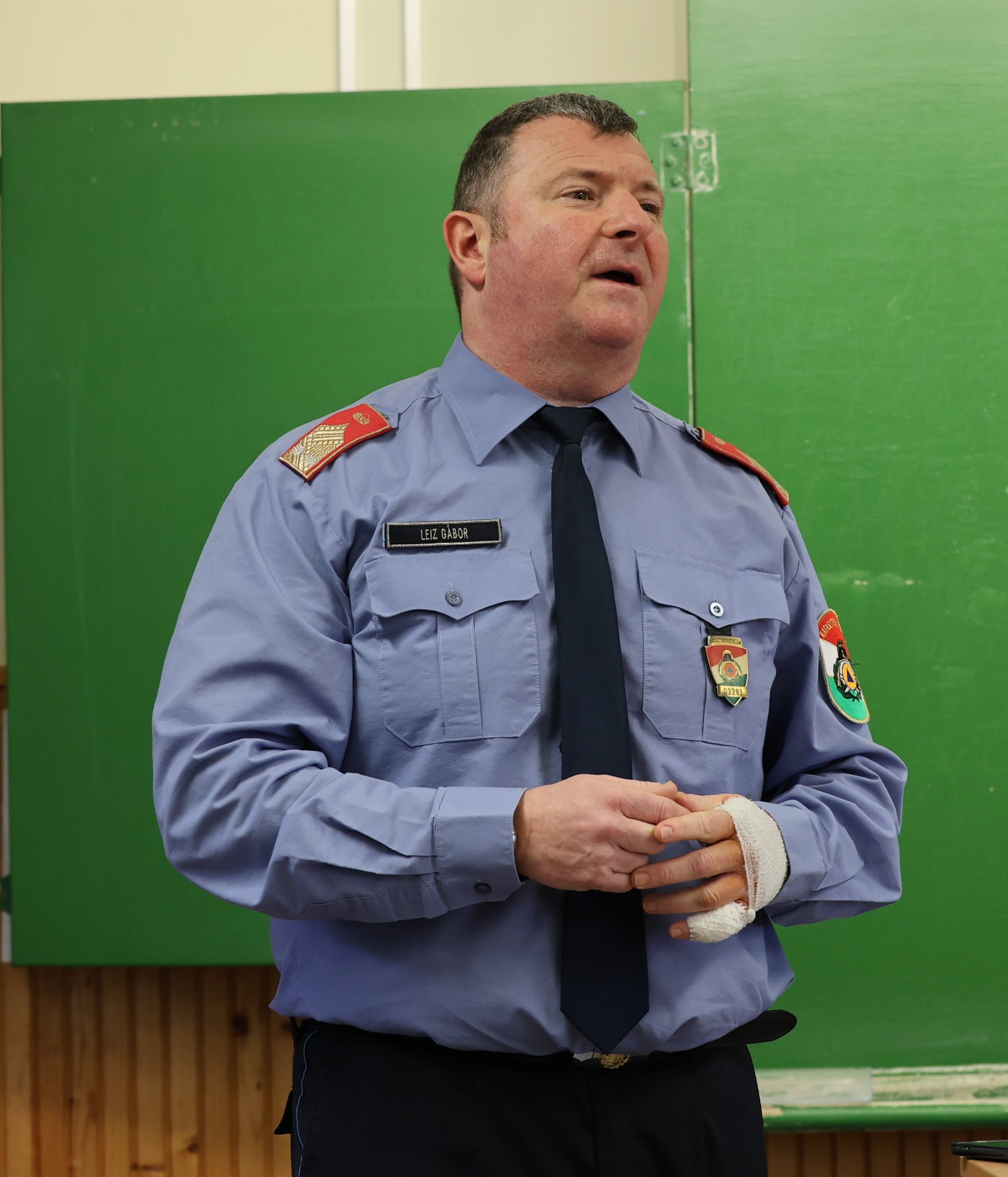 A tűzoltóparancsnok részletes tájékoztatást és gyakorlati tanácsokat adott a tanulóknak, hogy mire figyeljenek, hogy megelőzhetőek legyenek a tragikus kimenetelű tűzesetek.