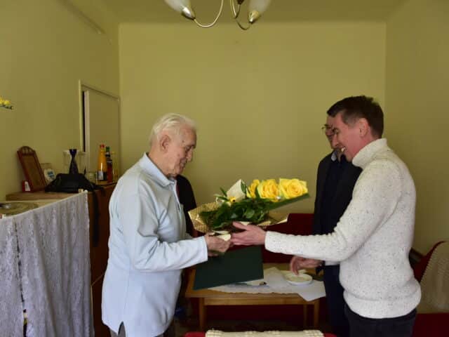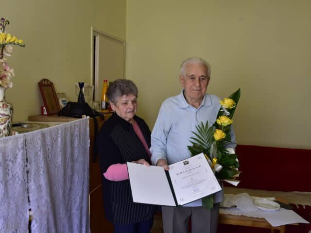 A jeles alkalomból Balla László alpolgármester és Gyenes Attila képviselő köszöntötte őt otthonában, átadva Orbán Viktor miniszterelnök kézjegyével ellátott emléklapot, valamint a városvezetés nevében egy virágcsokrot.