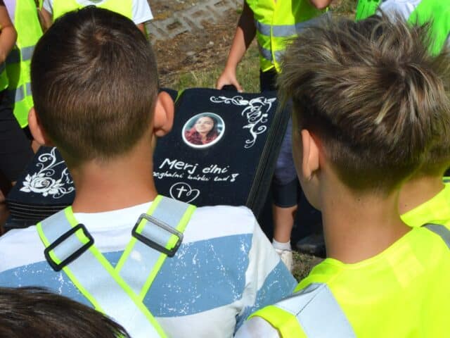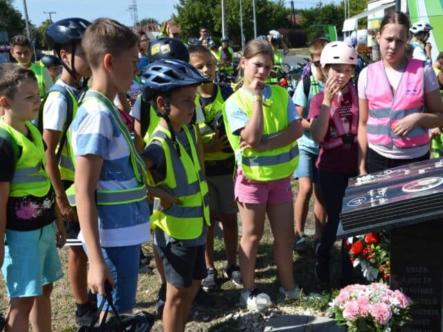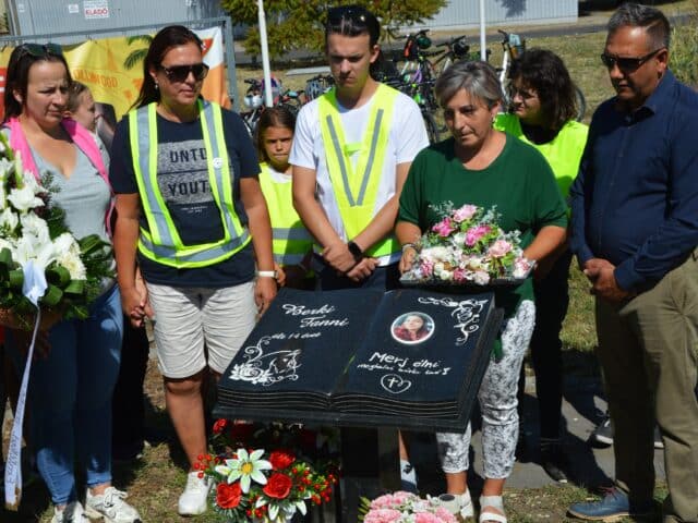 A 2022-ben közlekedési balesetben elhunyt, 14 éves Berki Fannira emlékeztek a közlekedésbiztonsági tábor résztvevői a tragédia helyszínén, augusztus 28-án, délelőtt.