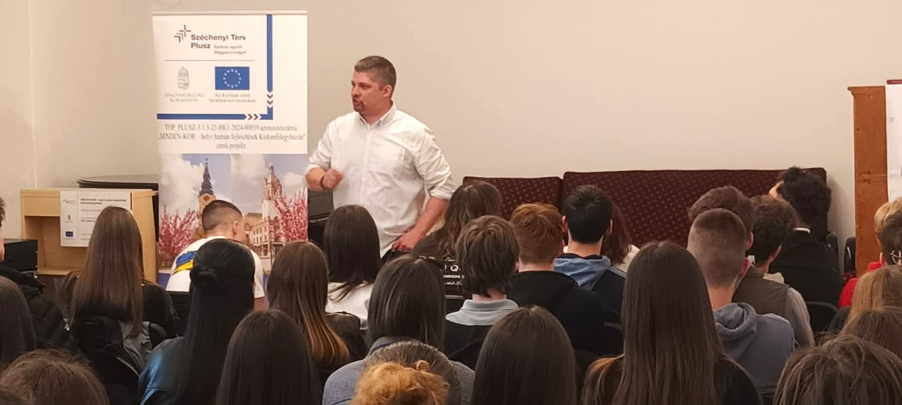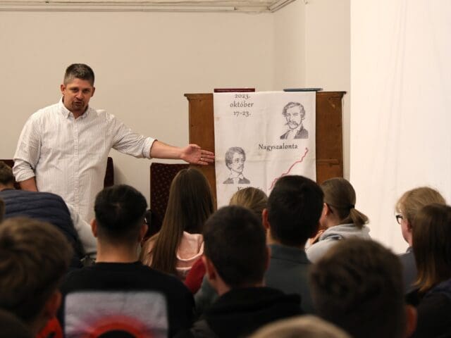 – Önök szerencsés helyzetben vannak, hiszen kiskunfélegyháziak, amely városhoz Petőfi Sándor ezer szállal kötődik. Úgy gondolom azért is különleges a mai nap, mert ha egy halhatatlan barátság történetére ennyi fiatal összegyűlik, akkor nincs olyan nagy baj a világban. Ha most nagyon figyelnek – és nem csak fizikailag, hanem lélekben is – akkor erről a témáról tudnak majd beszélni az érettségin. A magyar és a világirodalom legszebb legmélyebb, legerősebb, és legrövidebb barátságáról, Petőfi és Arany történetéről szeretnék önöknek beszélni – fogalmazott Tóth Péter Lóránt előadás kezdetén.