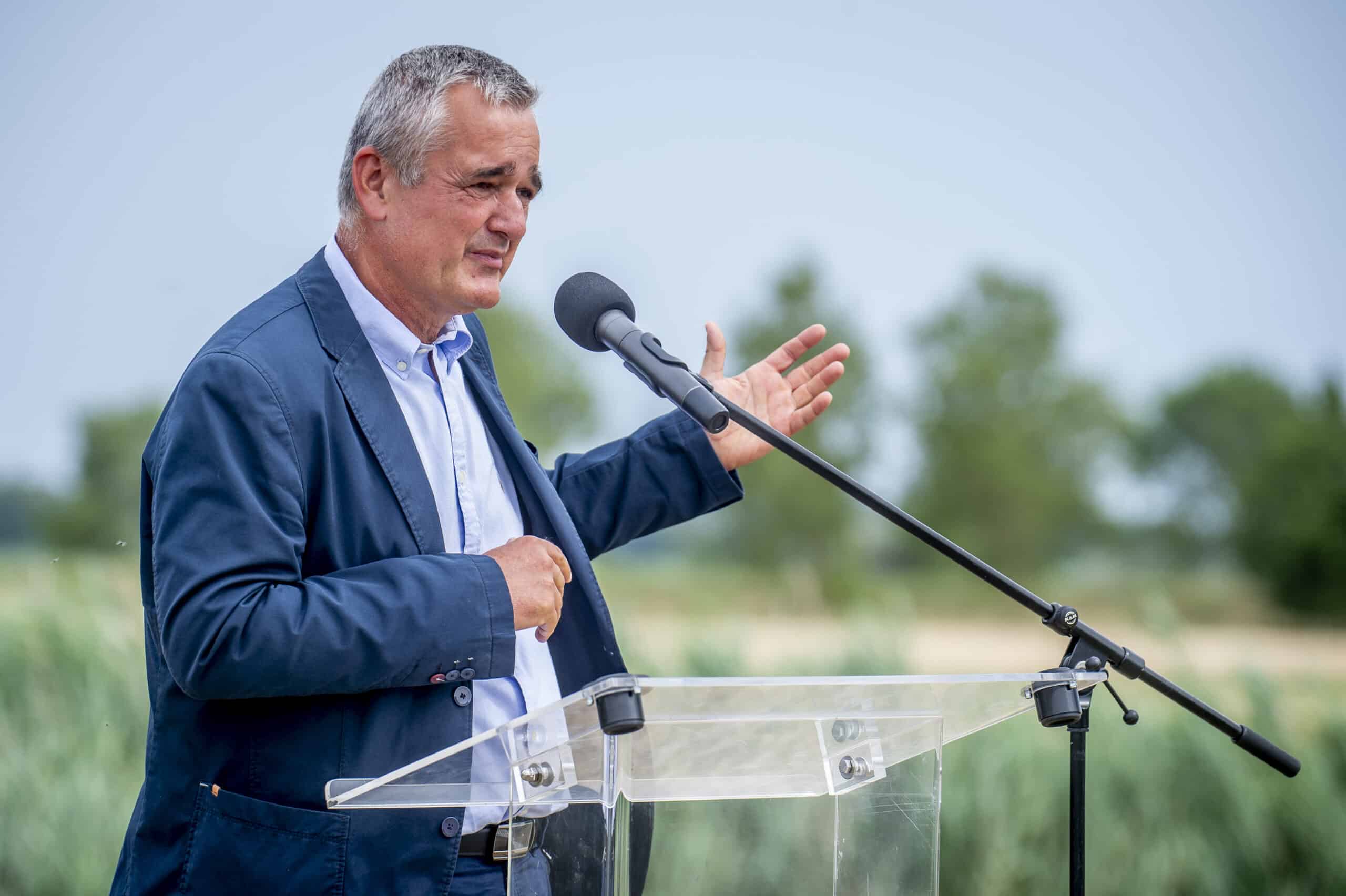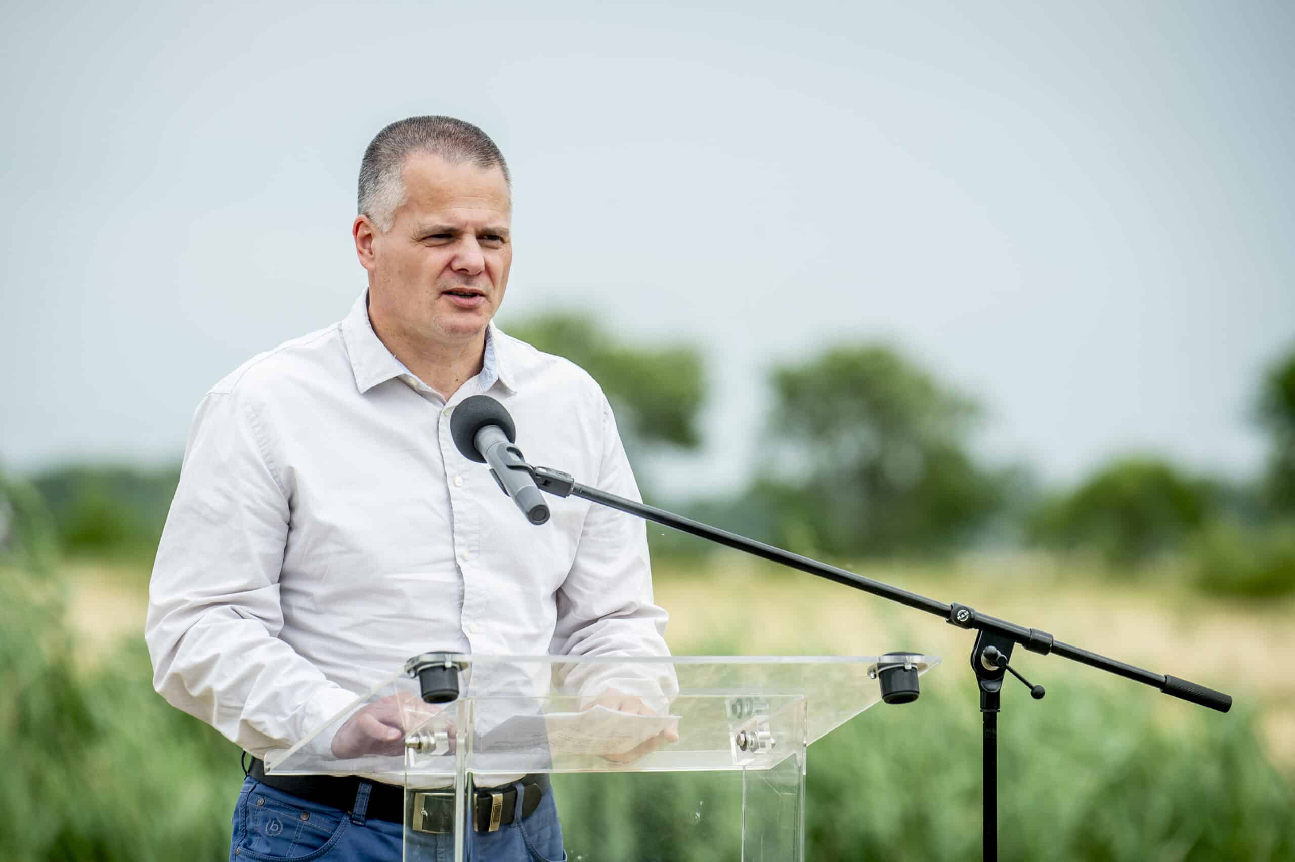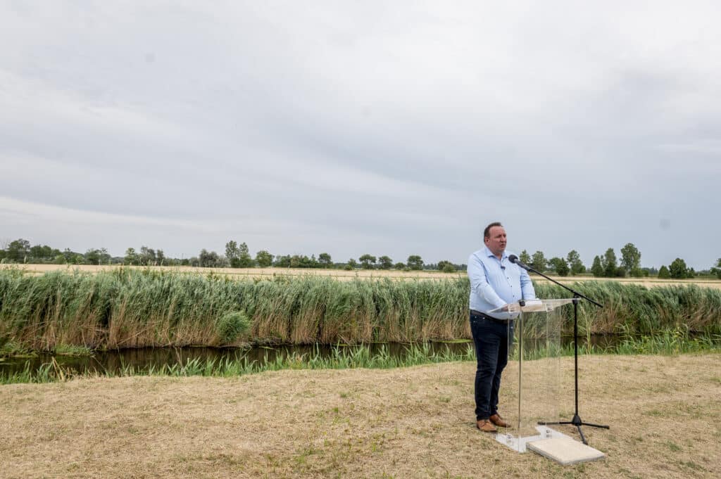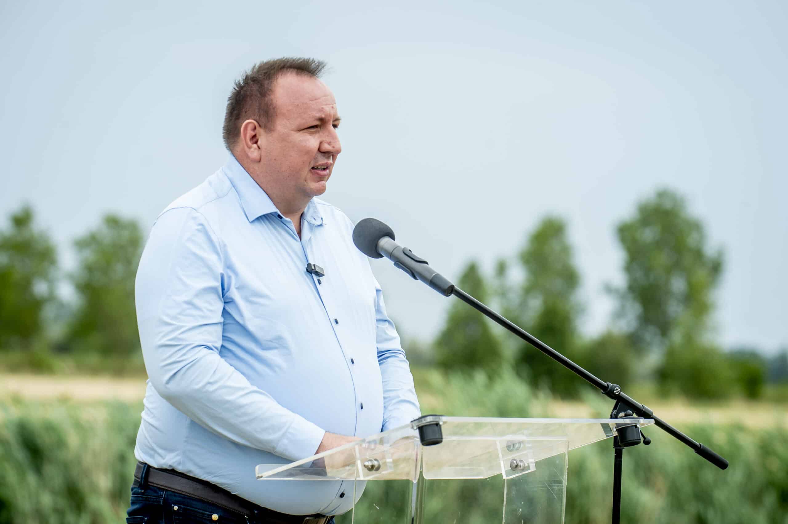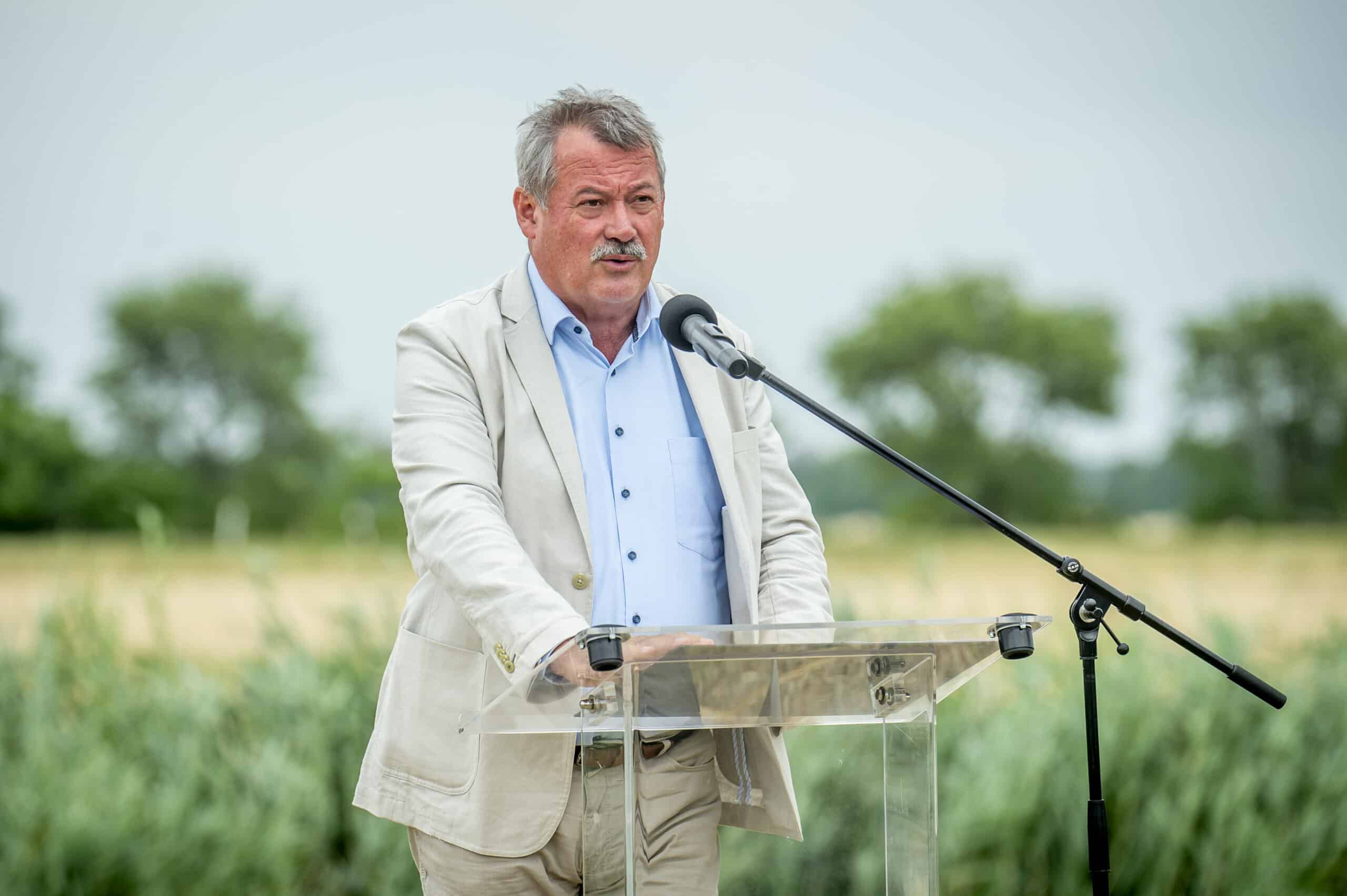 V. Németh Zsolt beszédében hangsúlyozta: a klímaváltozás következtében egyre szélsőségesebb időjárási viszonyok váltak jellemzővé, amelyek a vízgazdálkodási feltételek kiszámíthatatlanságához vezettek. A megváltozott körülmények új szemléletet követelnek: míg korábban az árvízvédelem volt a fókuszban, ma már a víz visszajuttatása a táji rendszerekbe is kiemelt jelentőséget kap. Az elmúlt 15 évben a kormány 170 milliárd forintot fordított a vízkészletek gyarapítására. Jelenleg 242 milliárd forintnyi forrás jut az aszály elleni védekezésre – a minisztériumon, a vízügyi igazgatóságokon, önkormányzatokon, egyesületeken és civil szervezeteken keresztül. Ebből 67 milliárd forintot a „Vizet a tájba!” program keretében a Homokhátságon megkezdődött beruházásra fordítanak.