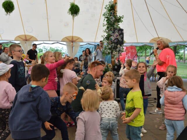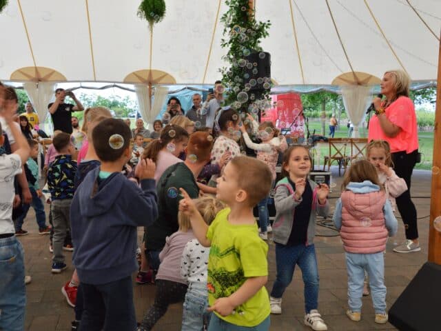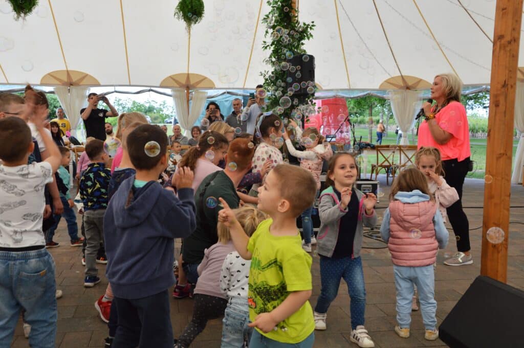 Megannyi játék, önfeledt szórakozás, ingyen palacsinta és jégkrém is várta a gyermekeket, egészen este hét óráig. A programok között a Kackiás Folkszínház Koplaló Mátyás című interaktív mesejátéka, a Kunszállási Önképző Kör, a Kiskun Alapfokú Művészeti Iskola kunszállási néptánccsoportjának fellépése is helyet kapott. A Happy Step táncosai idén is óriási hangulatot varázsoltak a pázsiton, majd a Buborék Együttes zenés, táncos, szappanbuborékkal tarkított egyórás koncertje adta meg a nap csúcsát. Játékos tanulással várta a kicsiket a KRESZ-Suli, a legbátrabbak az óriás RunBall pályán bizonyíthattak, de ugrálóvár, népi játékok, Fun Park ügyességi pálya, lovaglás, arcfestés, csillámtetoválás és kézműves foglalkozások is mind a gyermekek örömét szolgálták.