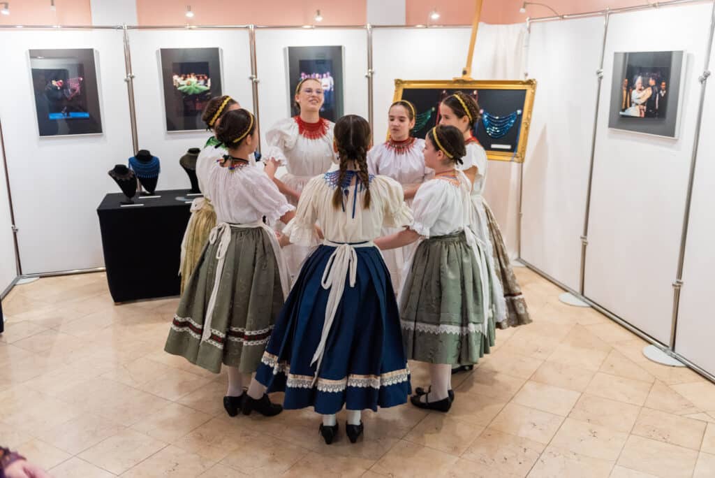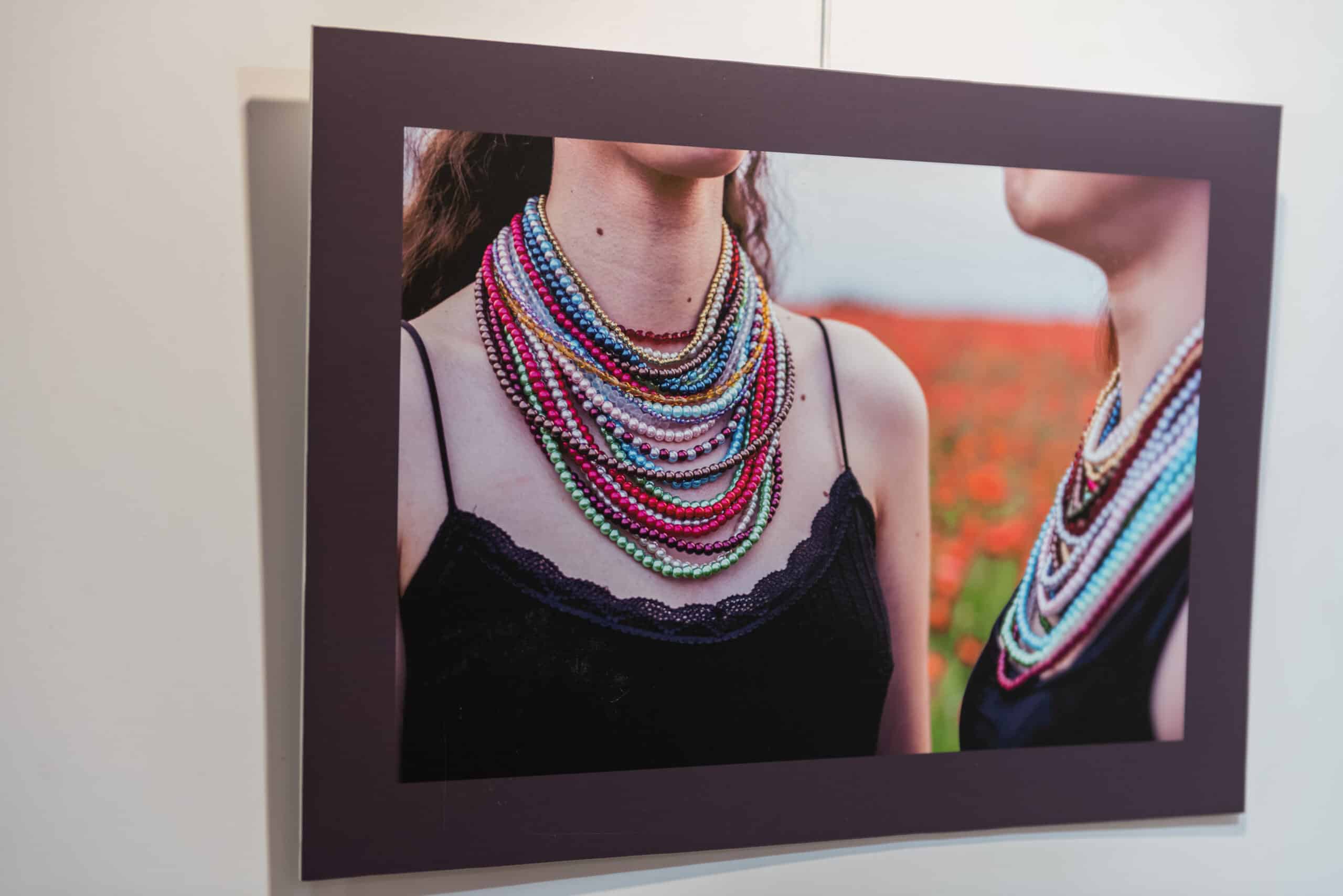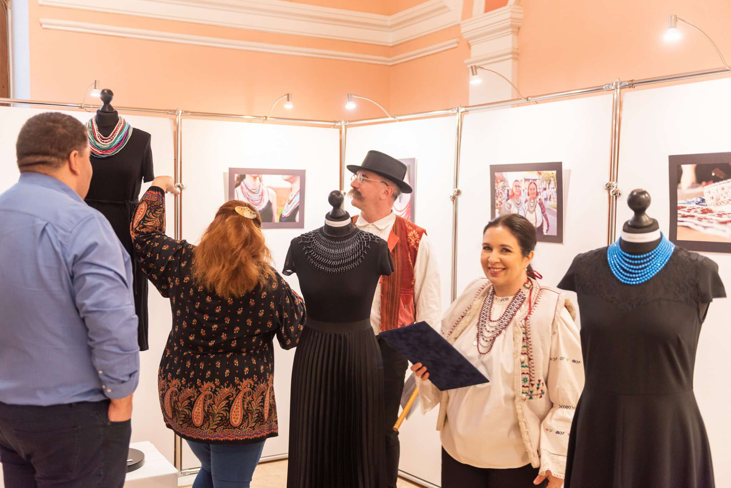 A kiállítótérben gyöngysorok, nyakékek, valamint néptáncosokat és hagyományőrzőket ábrázoló fotók kaptak helyet. Ez az első közös kiállítása Samu Mónikának és Mészáros Andrásnak, akiket nemcsak a művészet, hanem a magánélet is összeköt: házastársak.