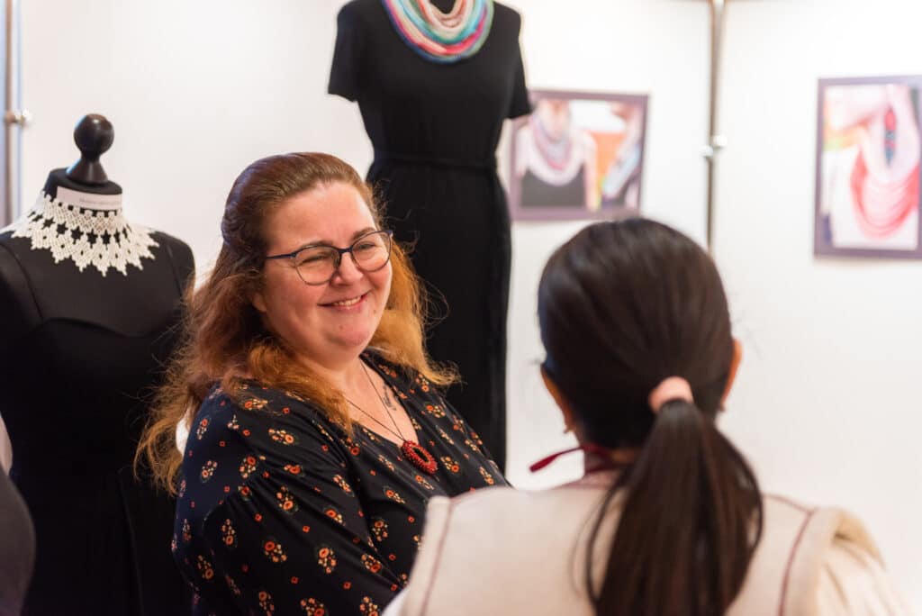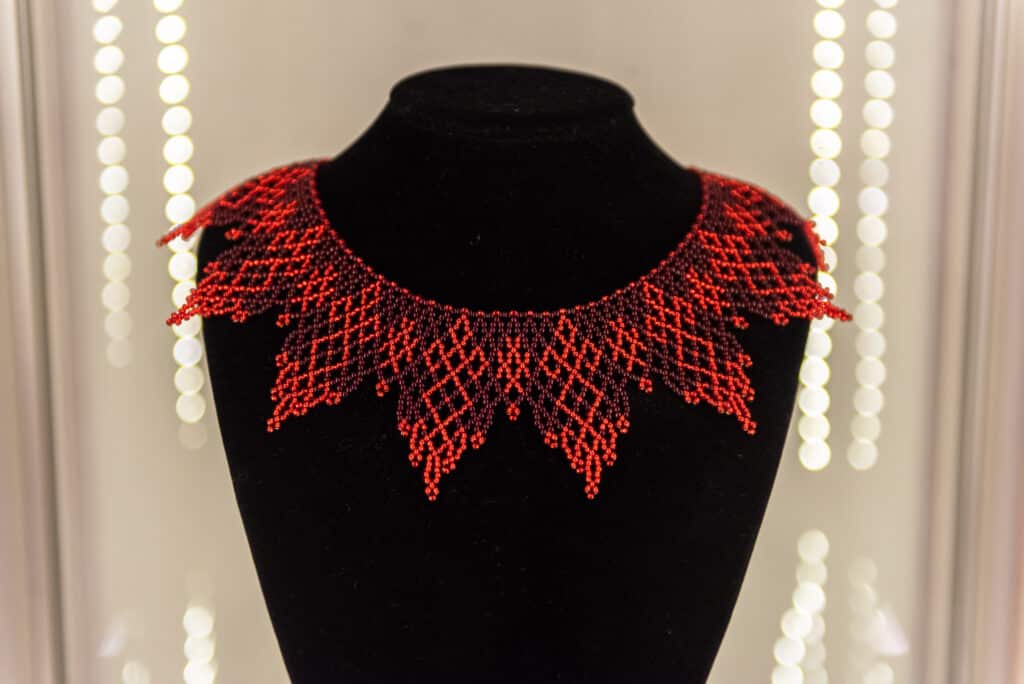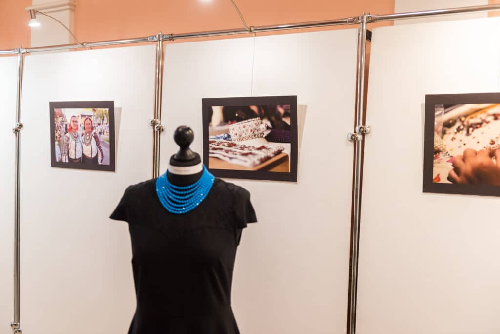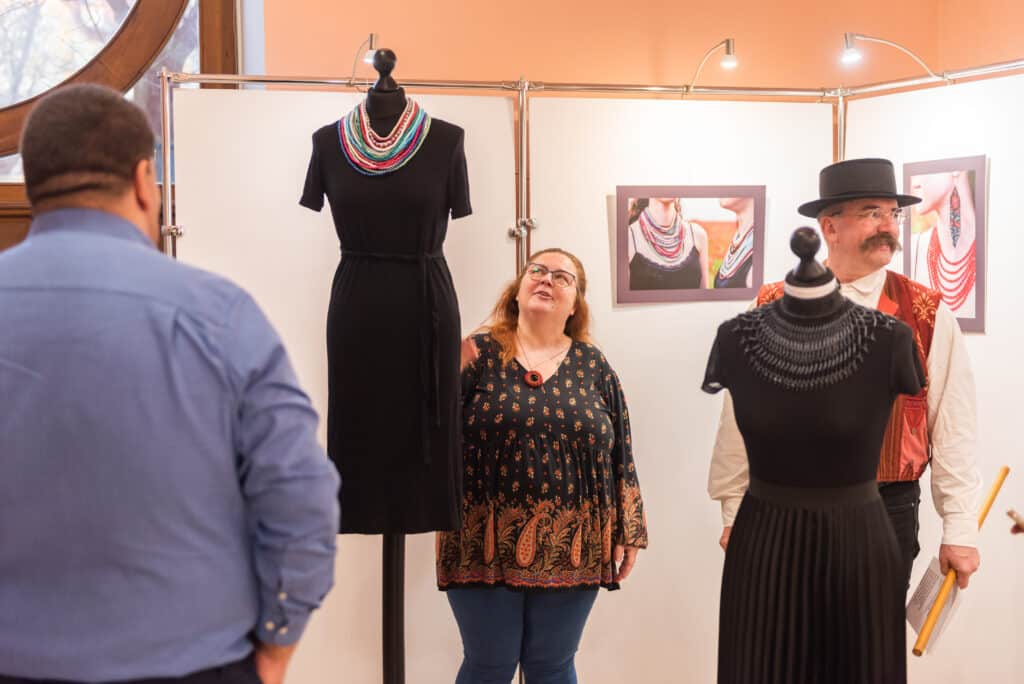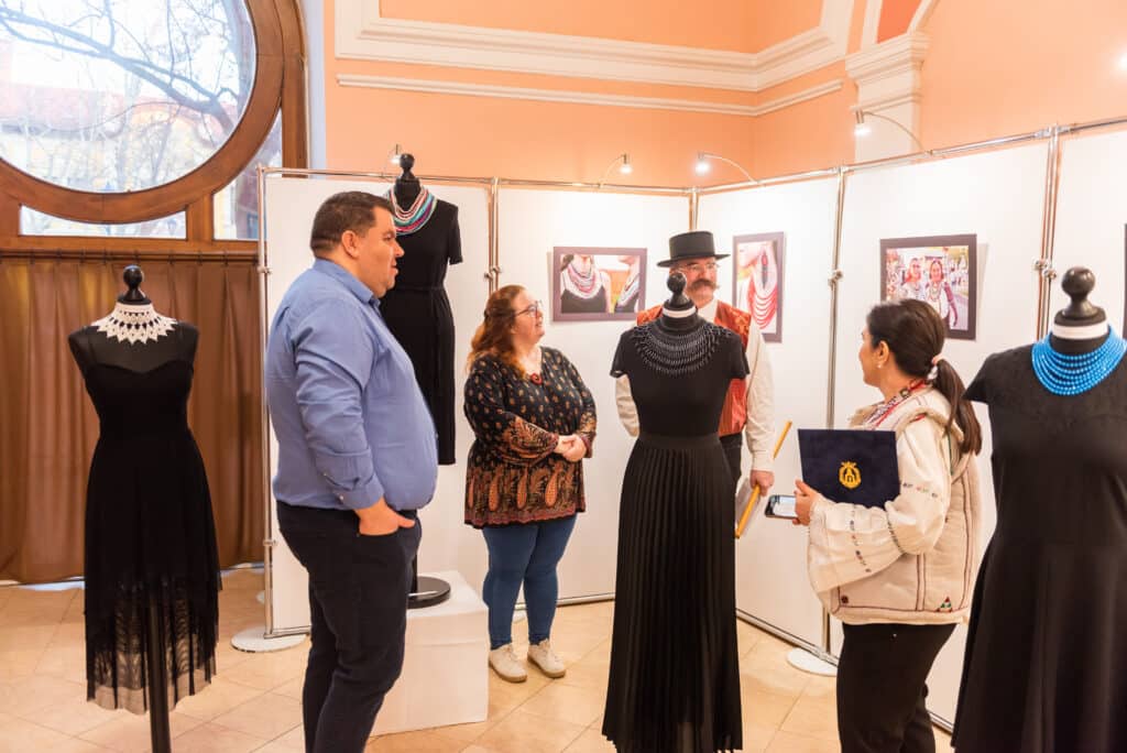 A kiállítótérben gyöngysorok, nyakékek, valamint néptáncosokat és hagyományőrzőket ábrázoló fotók kaptak helyet. Ez az első közös kiállítása Samu Mónikának és Mészáros Andrásnak, akiket nemcsak a művészet, hanem a magánélet is összeköt: házastársak.