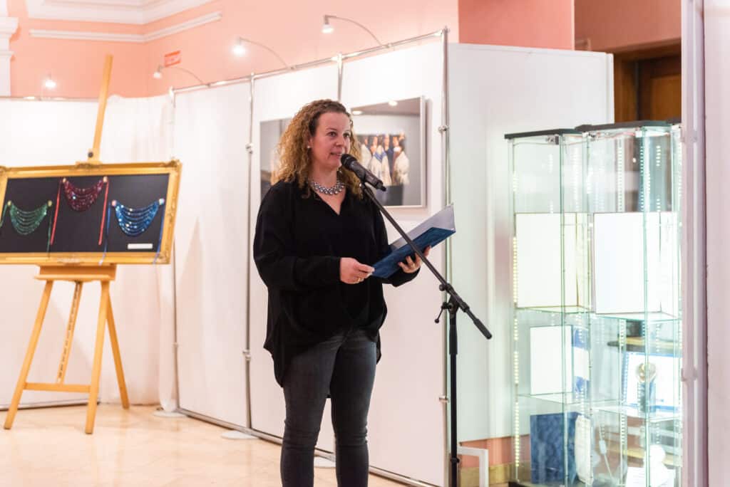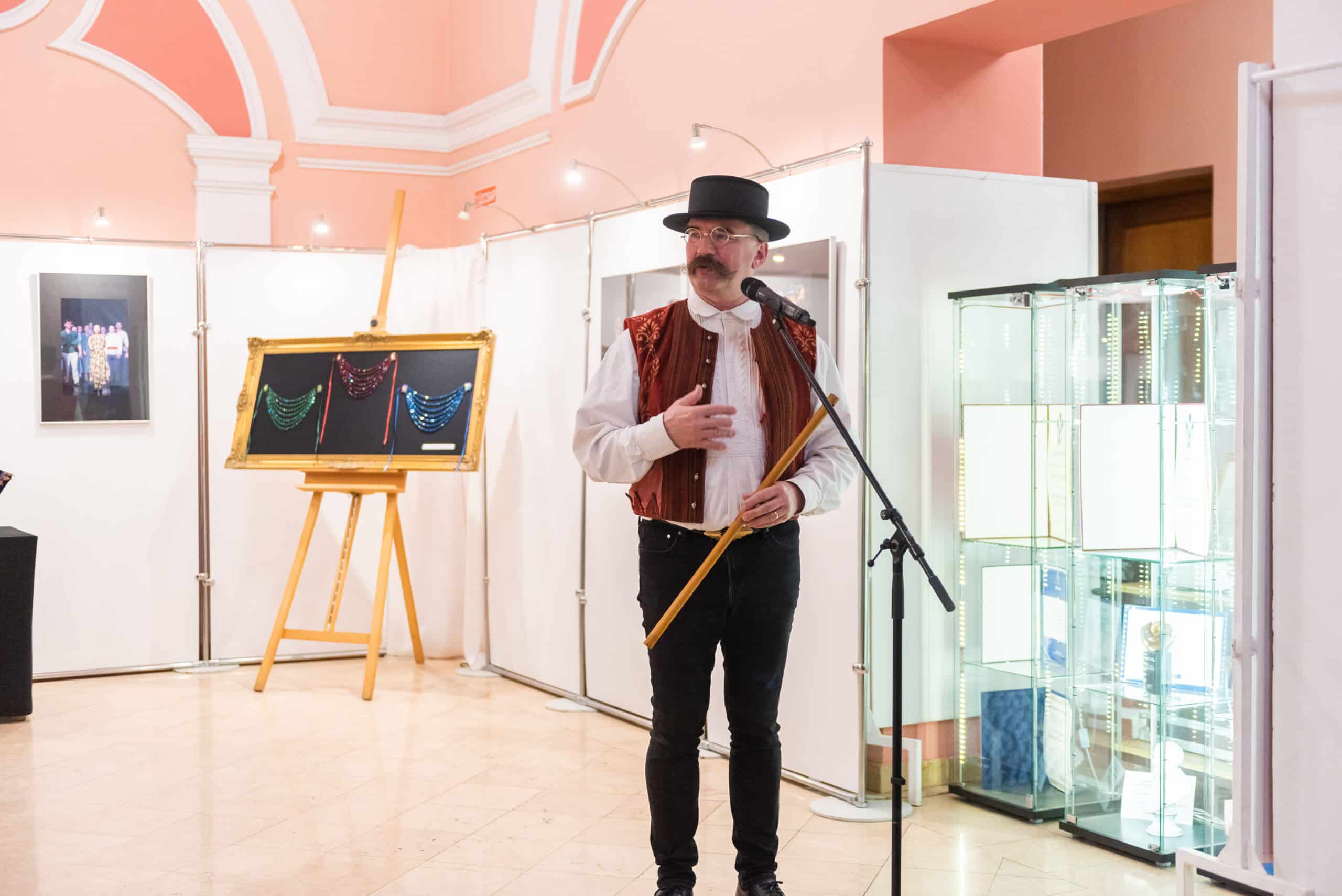 Beszédében kiemelte, hogy Mónika és András nemcsak az életben, hanem az alkotásban is kiegészítik egymást. András fotóin keresztül bepillantást nyerhetünk a gyöngyfűzés kulisszatitkaiba, olyan pillanatokat rögzítve, amelyeket mások talán sosem láthatnának. Mónika pedig többszörösen díjazott alkotóként a gyöngyfűzés szinte minden tájegységre jellemző formáját élteti tovább munkáiban.