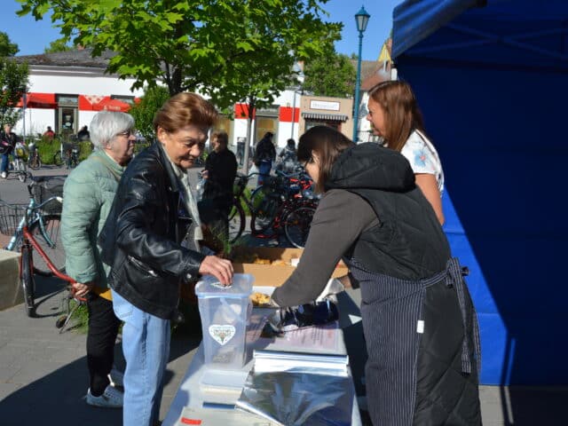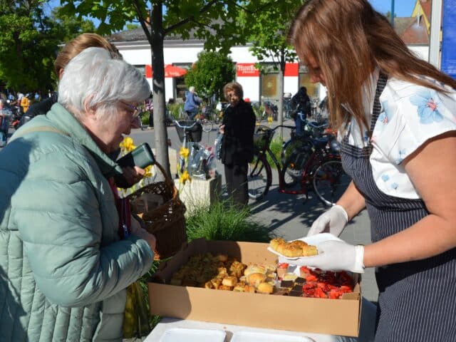Május 9-én, pénteken, 12 óráig a piac főbejáratánál, illetve az Ink-Hub tetováló stúdiónál vásárolhatnak a finomságokból, míg a polgármesteri hivatal árkádja alatt délután is rendelkezésre állnak a süteményes asztalok. A felhívásra iskolák, cukrászdák és magánszemélyek is felajánlásokat tettek, ezeket a délután során is várják a szervezők.
