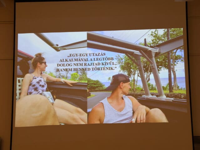 Ádám Adrienn saját élményein keresztül mesélt arról az útról, ami már gyermekkorában elkezdődött, amikor cserediák programok révén külföldre utazhatott. Később utazásszervezőként végzett, majd több szakmát kipróbálva mindig a világ megismerése felé fordult. Hét évet élt Bécsben, ahol munkája mellett férjével egyre több országot fedeztek fel, végül pedig úgy döntöttek, feladják alkalmazotti életüket, és az utazást választják.