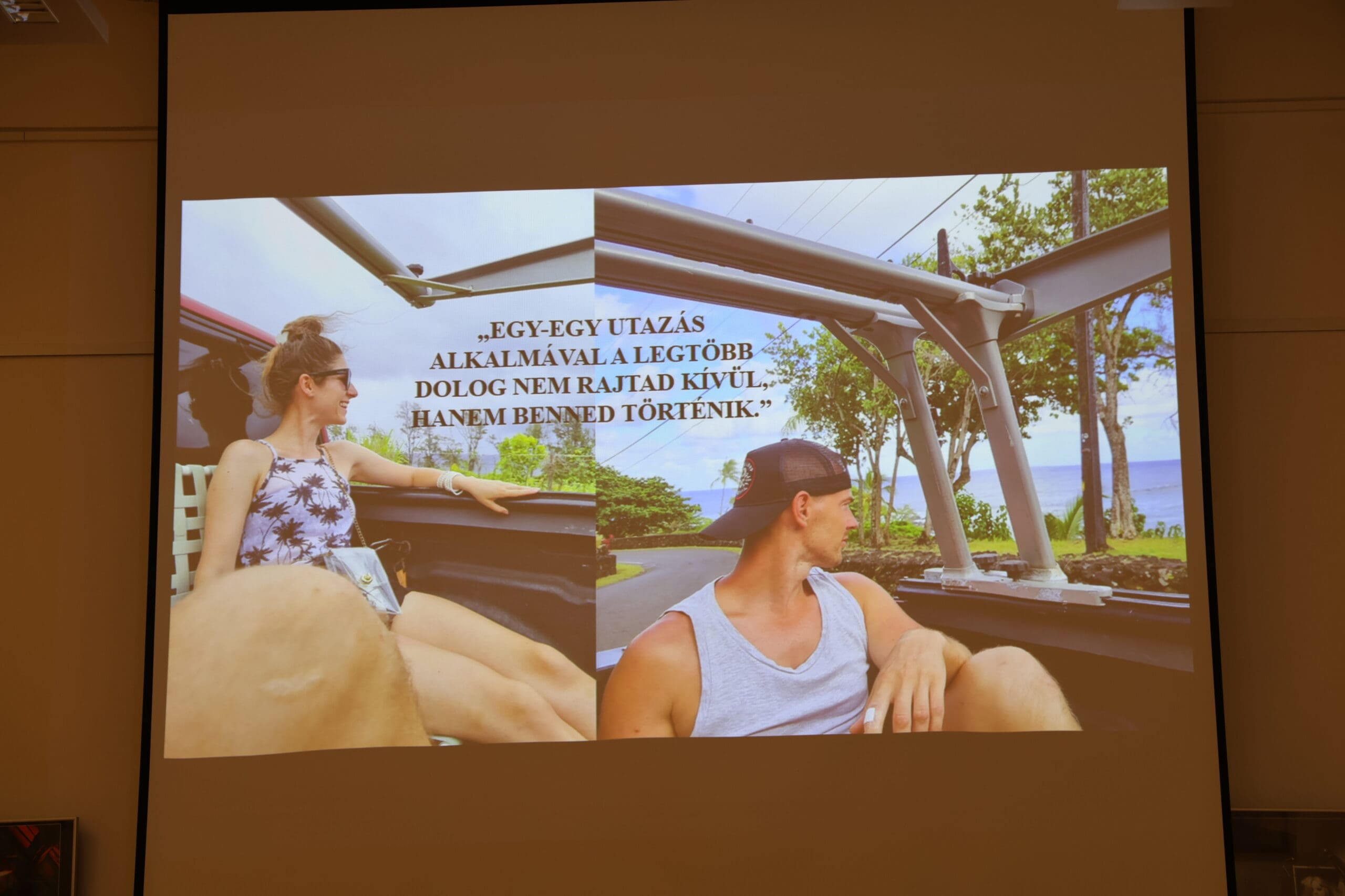 Azóta Európa számos országában jártak, majd Adrienn harmincadik születésnapja alkalmából három hónapot töltöttek a Hawaii-szigeteken. Előadásának középpontjában ez az időszak állt, hiszen legutóbbi könyve is itt született. Hawaii a Csendes-óceán vulkanikus szigetcsoportja, ahol az esőerdők, a különleges partok és az egyedülálló élővilág mellett az „aloha” szemlélet – a nyitottság, a természet tisztelete és az élet öröme – határozza meg a mindennapokat.
