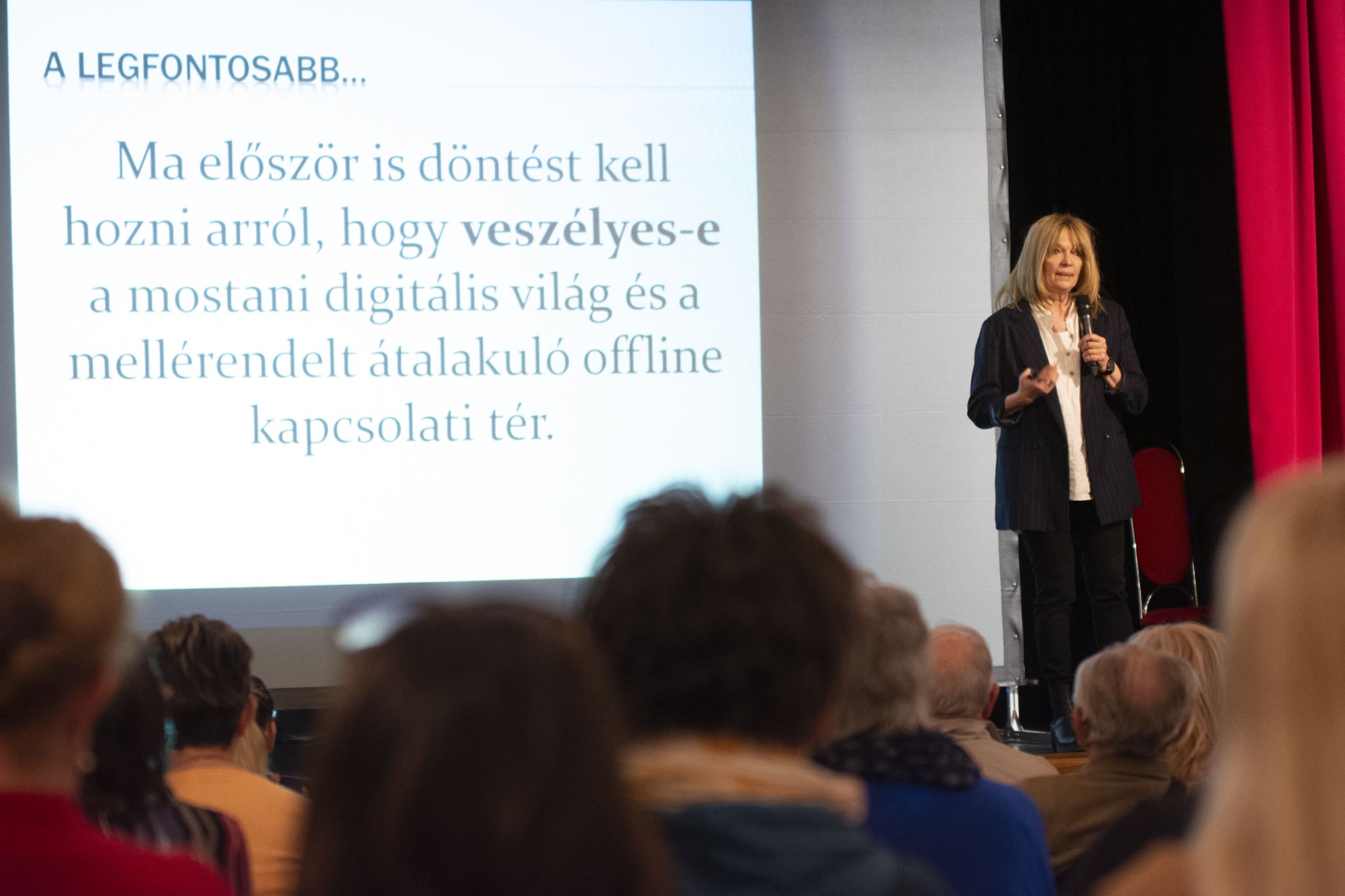 Korunk egyik legmeghatározóbb mozgatórugója a digitális, online tér. Tari Annamária rávilágított arra, hogy rohanó mindennapjaink bár ugyanúgy 24 órából állnak, mint nagyszüleink idejében, manapság már 48, vagy akár 72 órányi tennivalót préselünk bele. Nagyon más világot élünk, mint akár 15-20 évvel ezelőtt, folyamatosan online elérhetőnek kell lennünk. Az egyfókuszú figyelem ideje rohamosan lecsökkent az analóg, lassú, várakozásokkal teli gyermekkor eltűnésével. A közösségi média megjelenésével megjelent az azonnali érzelmi szükséglet kielégítése, melynek veszélyeire nem voltunk felkészülve. Az előadó szerint, az információtechnológia térnyerésével tulajdonképpen kaptunk egy csatornát arra, hogy másnak mutassuk magunkat, mint a valóság, kritizáljunk másokat szinte következvények nélkül, folyamatosan rivalizáljunk.