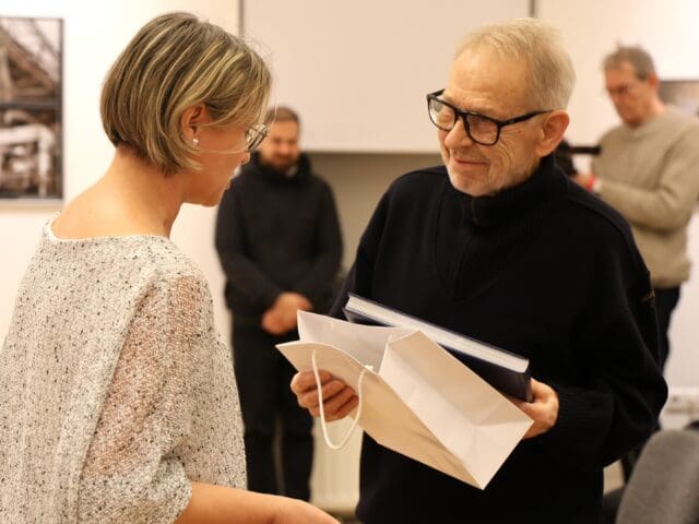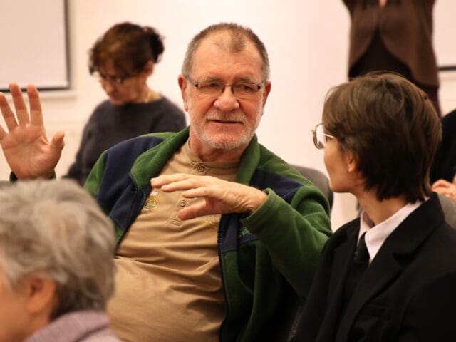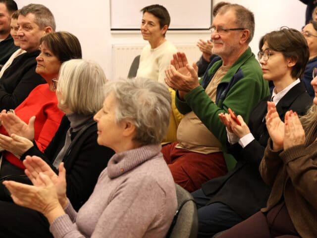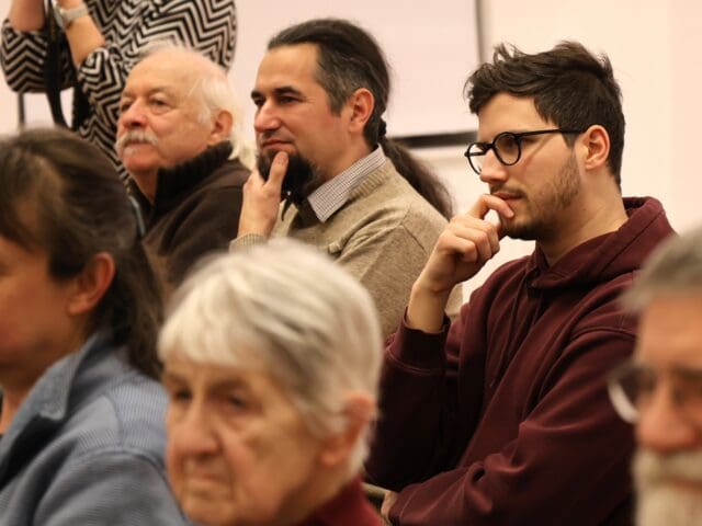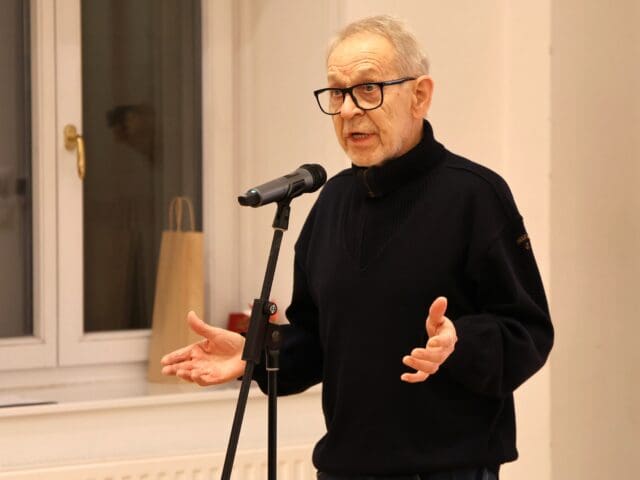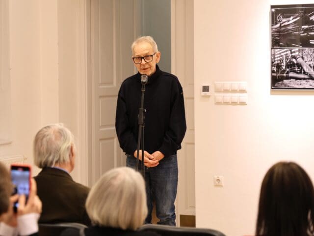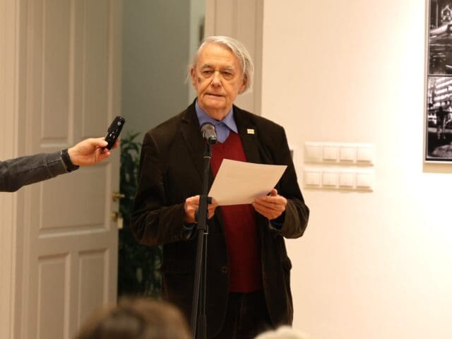 A kiállításmegnyitón Horváth Péter is mikrofon elé lépett. Megköszönte a megjelenteknek az érdeklődést, majd a tanítványaival való kapcsolatáról árult el néhány dolgot.