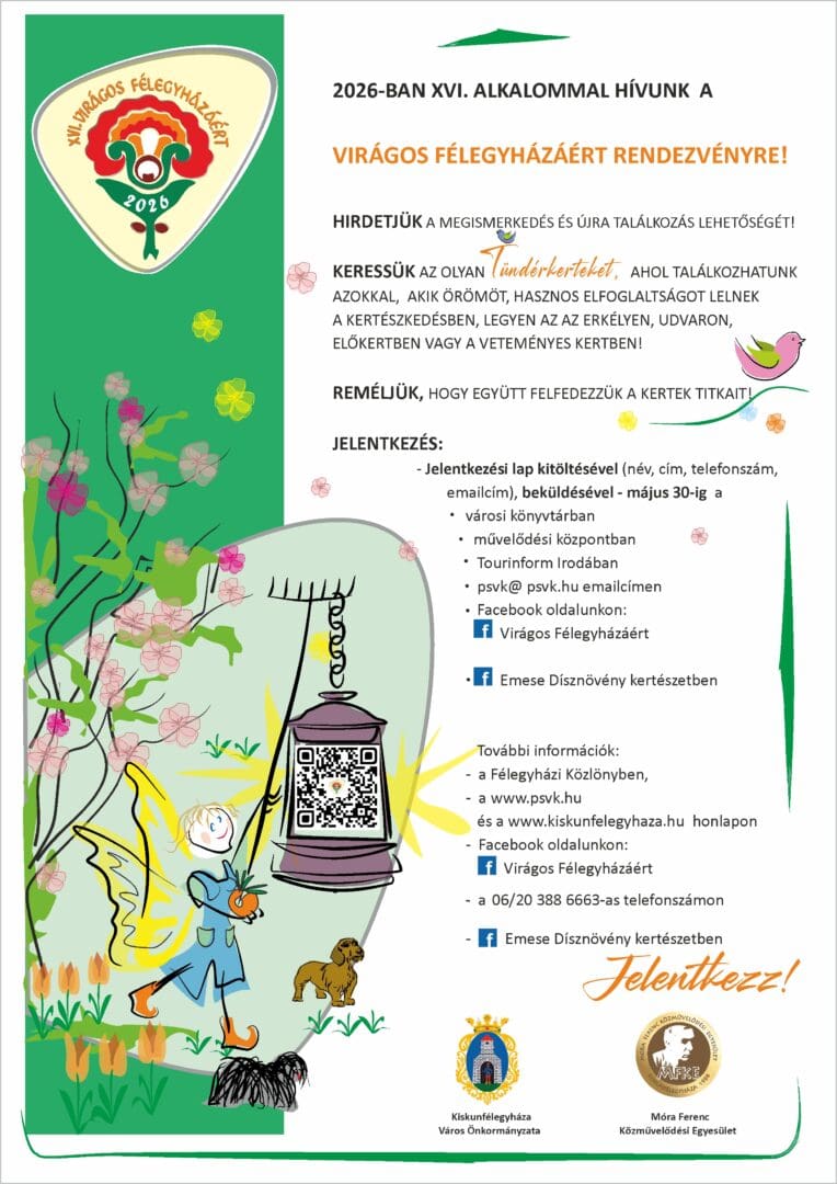 Tizenhatodik alkalommal hirdetik meg a „Virágos Félegyházáért” kezdeményezést, amely évről évre arra ösztönzi a helyieket, hogy szebbé, zöldebbé és élhetőbbé varázsolják közvetlen környezetüket. A 2026-os felhívás ismét lehetőséget kínál mindazoknak, akik örömüket lelik a kertészkedésben, és szívesen mutatnák meg gondozott, virágokkal teli kertjeiket.