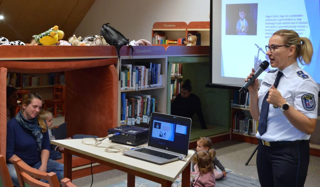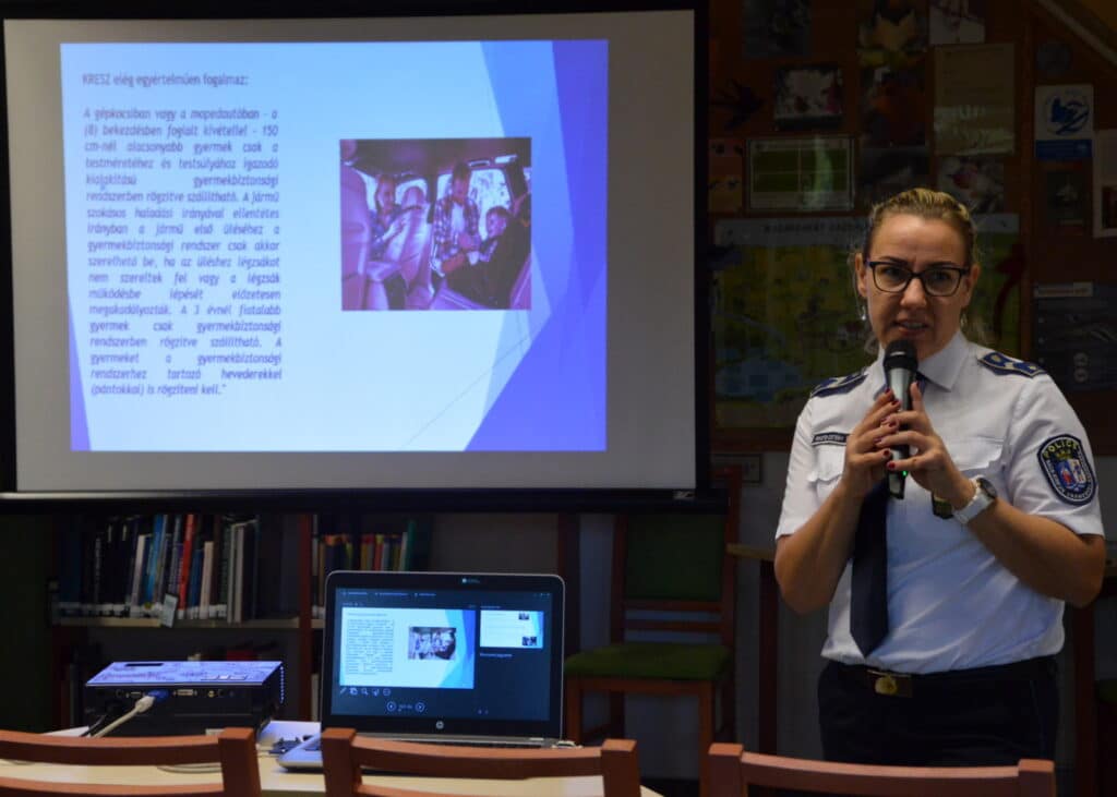 Az előadás középpontjában a gyermekek közlekedésbiztonsága állt – az autóban, az utcán és a játékszerek használata közben egyaránt. A szakember kiemelte: a KRESZ egyértelműen fogalmaz, amikor kimondja, hogy 150 centiméternél alacsonyabb gyermeket csak testméretéhez és testsúlyához igazodó gyermekbiztonsági rendszerben lehet szállítani. A 3 év alatti kicsiket kizárólag megfelelő gyermekülésben szabad utaztatni, a rögzítésről pedig mindig gondosan meg kell győződni.