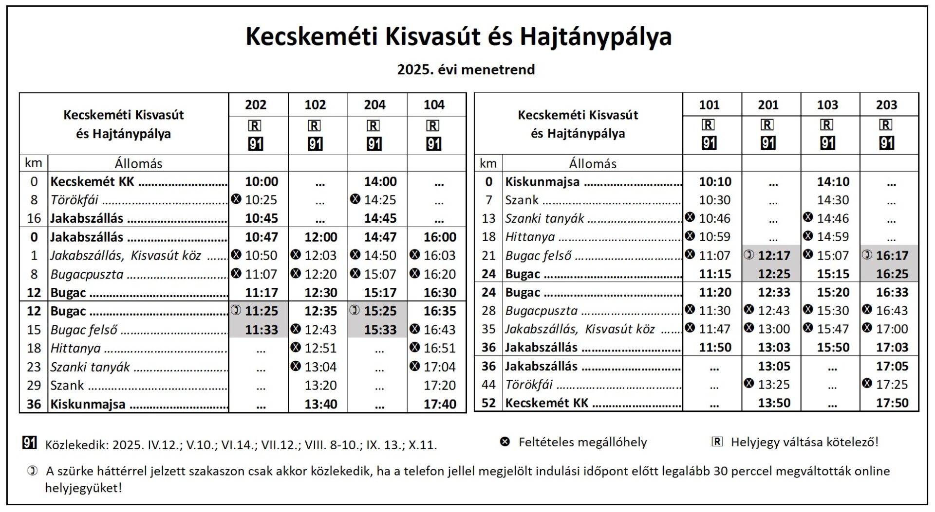Így akár végig is lehet utazni a teljes, 149-es vonalat. Ahogy a korábbiakban, így most is előre, online lehet a menetjegyeket megvásárolni a www.kecskemetikisvasut.hu oldalon. (Külön oda, külön vissza, ahogy a nagyvasúton is.)