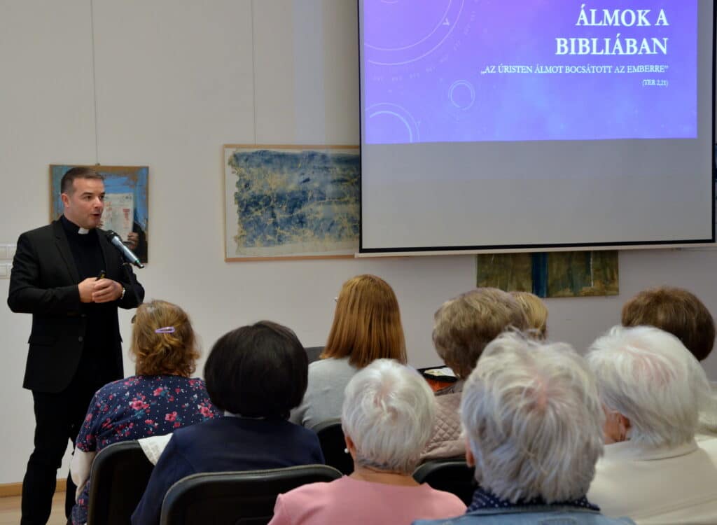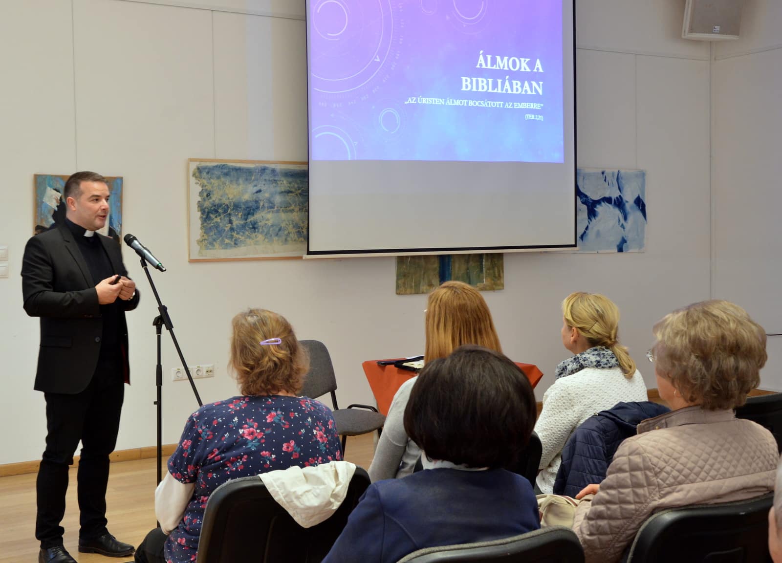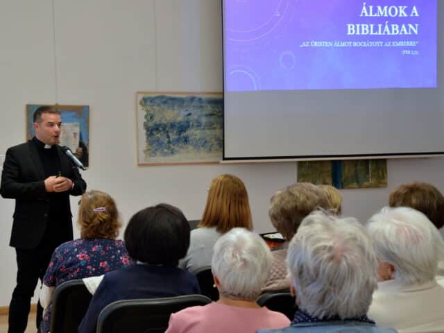 „Isten elfelejtett nyelve az álom” – idézte Geszler Péter atya Gyökössy Endre lelkész szavait, amikor arról beszélt, hogy minden ember álmodik, s a Biblia is tele van olyan álmokkal, amelyekben Isten szól az emberhez. Mint mondta, a Teremtés könyvében is olvashatjuk, hogy az Úristen álmot bocsátott az emberre, legelőször Ádámra, hogy megalkossa bordájából társát, Évát.