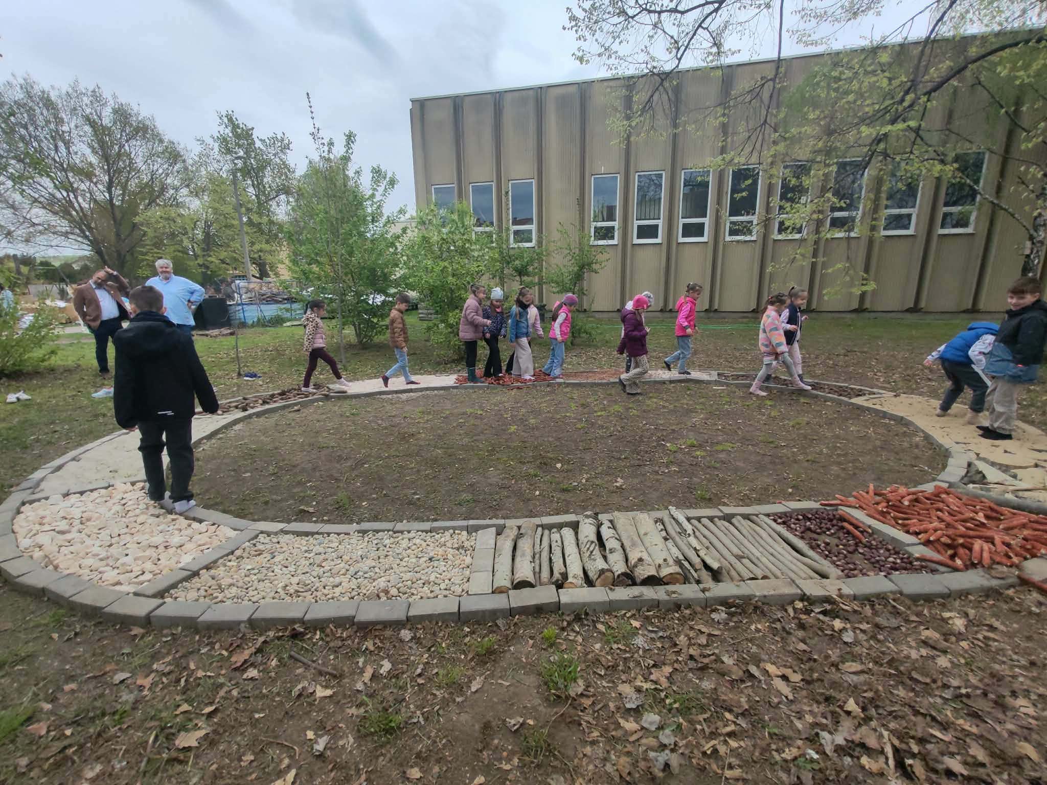 A szakmai beszélgetést követően a vendégek megtekintették az iskola kertjét, melyet Farkas Imréné tanító vezetésével gondoznak tanulók, megkóstolhatták a Platán-szörpöt, ami a saját maguk termelte fűszernövényekből készült. A szülői összefogással alkotott mezítlábas, szenzoros ösvény is sokak tetszését elnyerte.