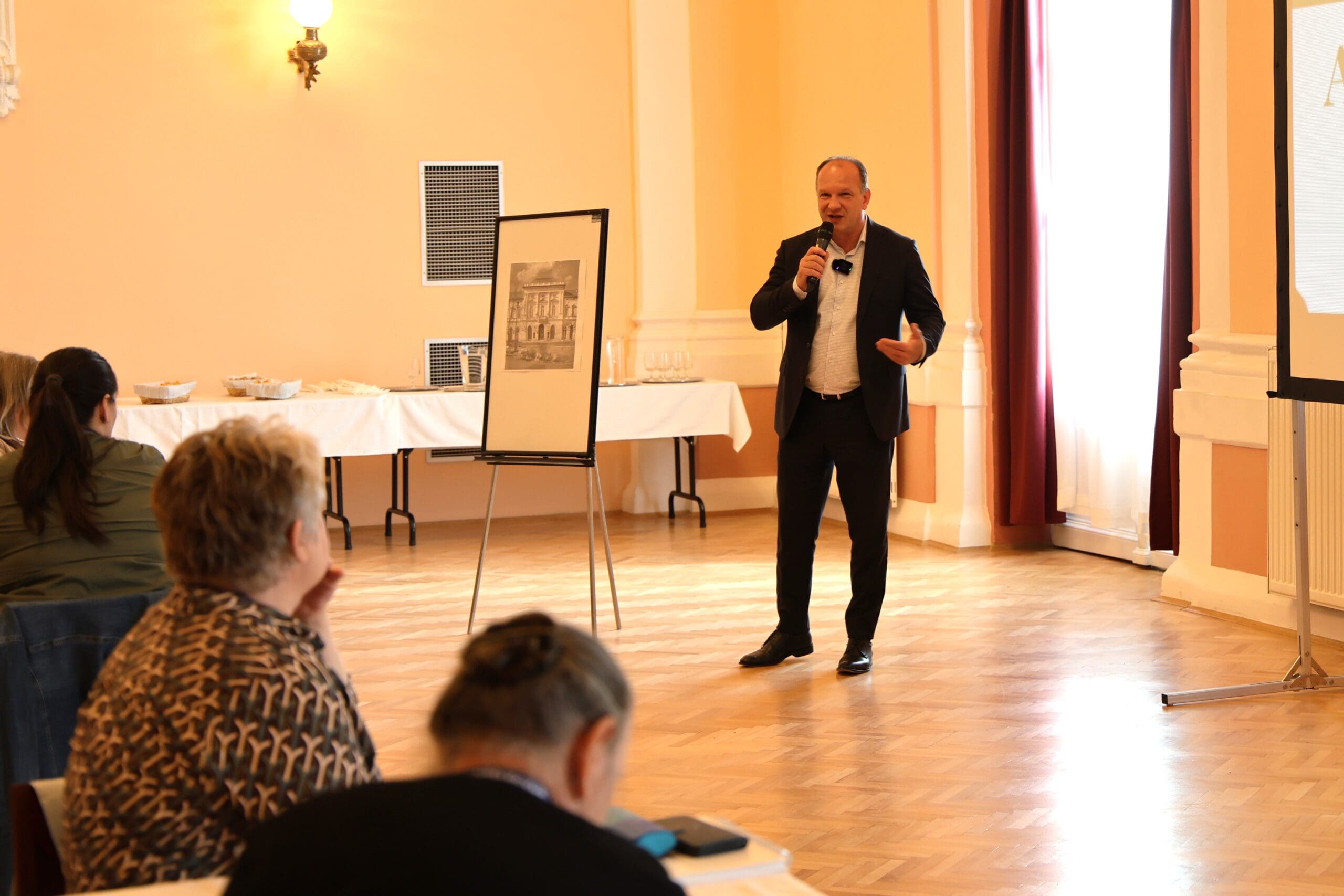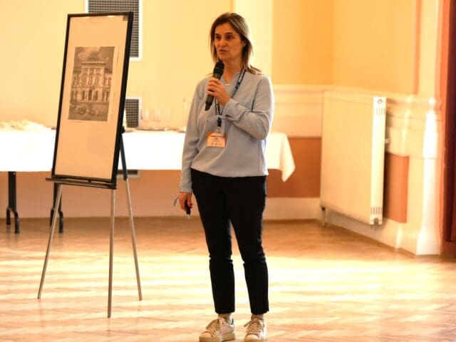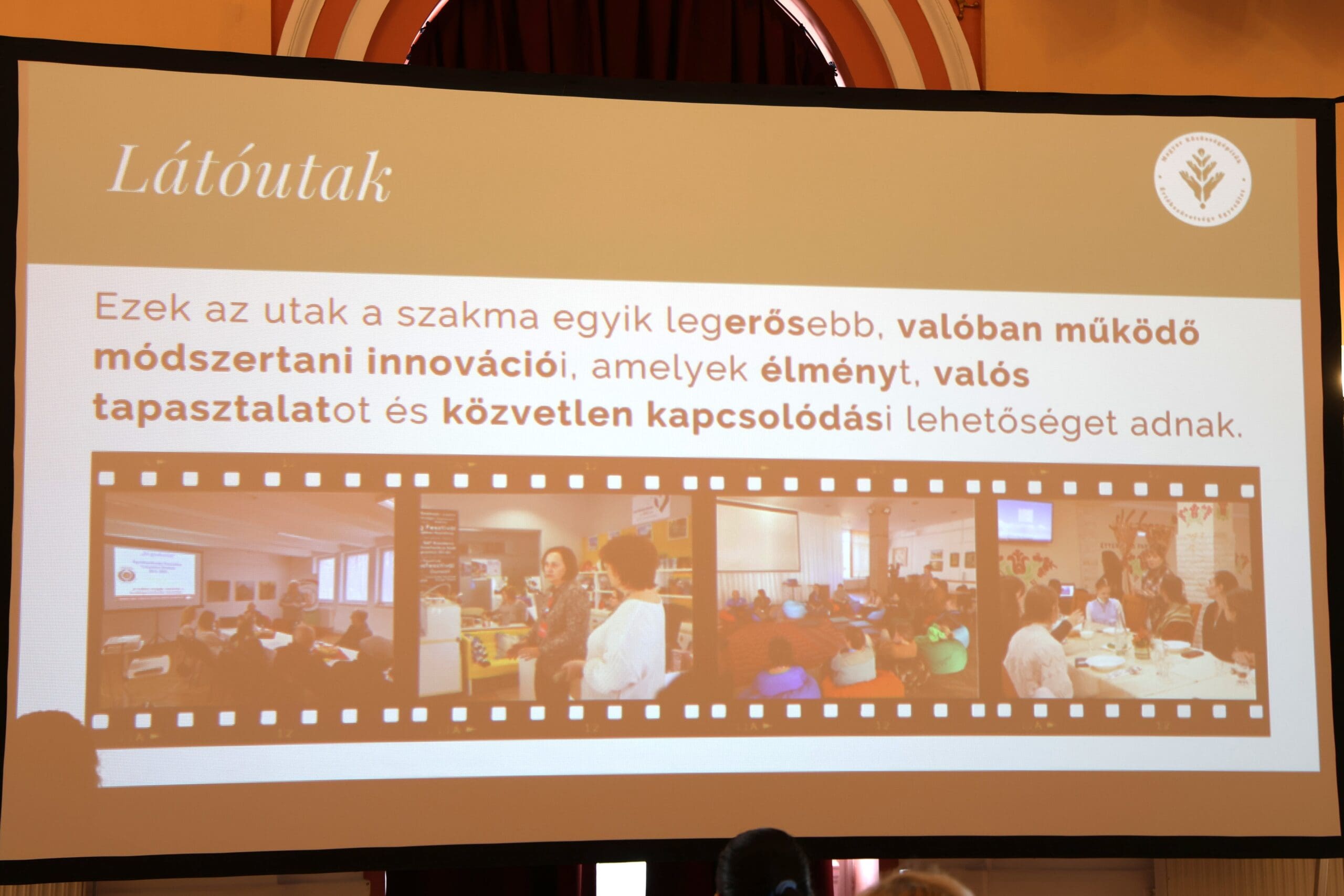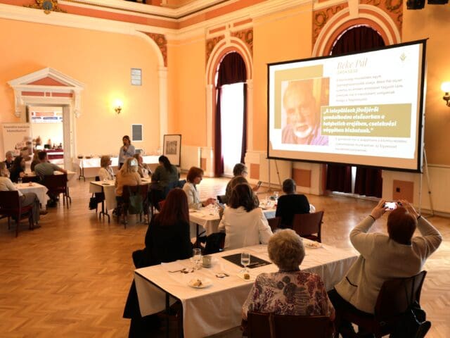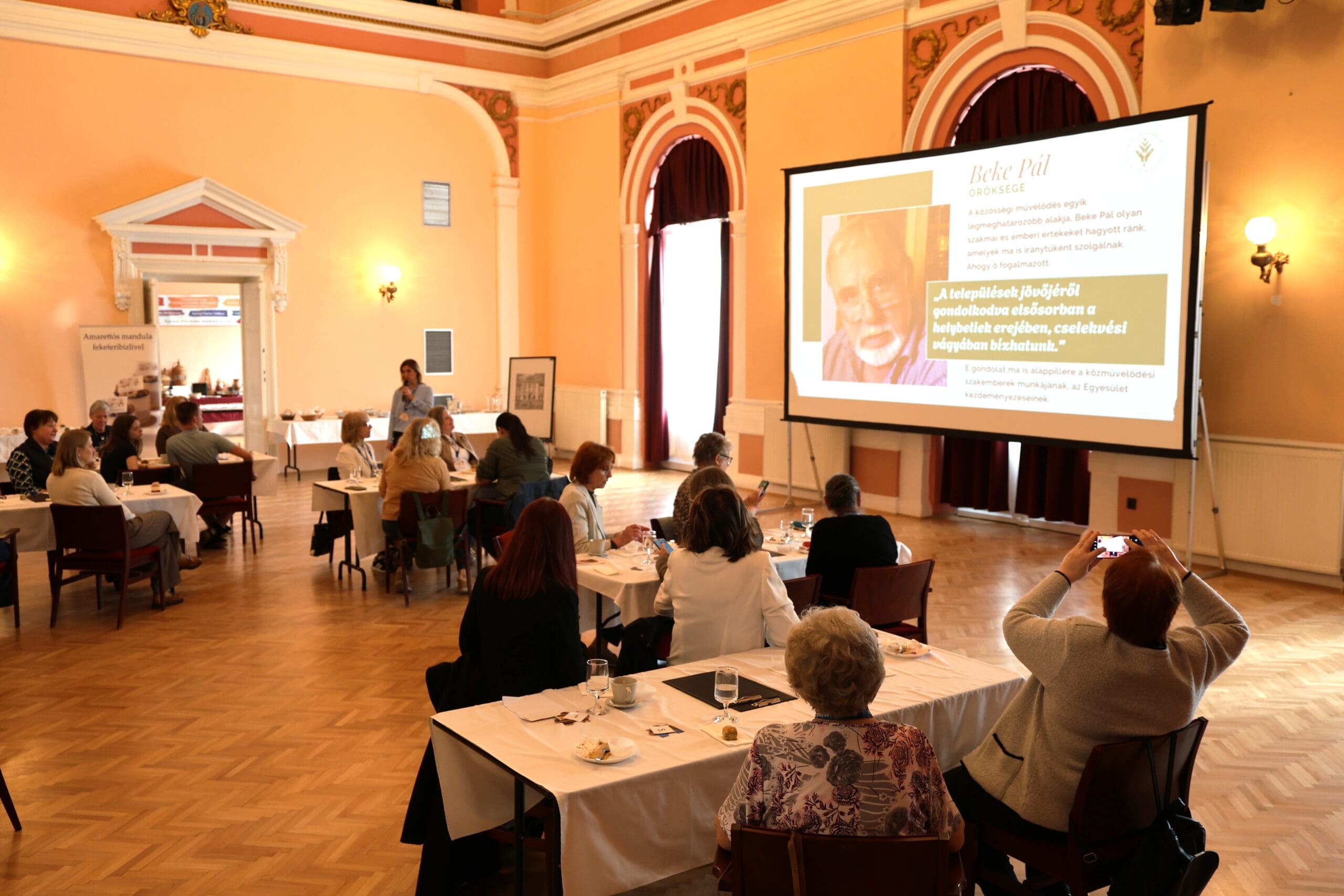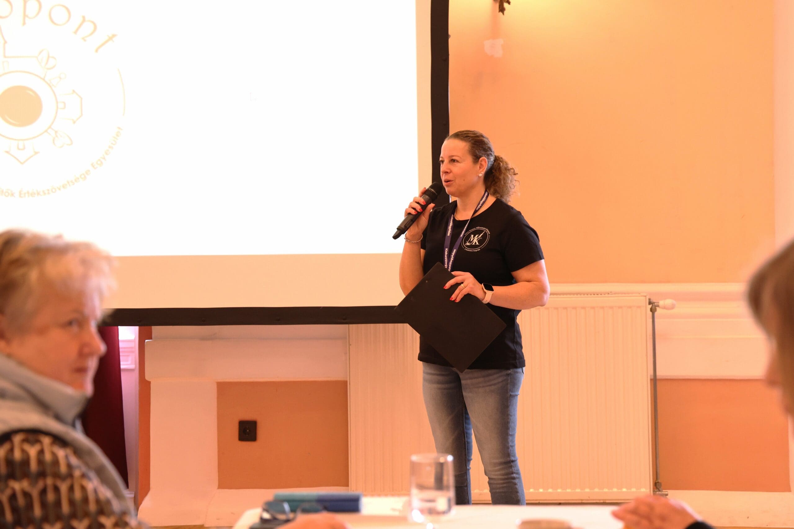 Vadkerti-Tóth Rita, az esemény mentora, a Konecsni György Művelődési Központ Tájház és Városi Könyvtár vezetője beszédében az egyesület munkájának fontosságát részletezte. Beke Pál, a közösségi művelődés legmeghatározóbb alakjának szavait idézte, amely szerint a települések jövőjéről gondolkodva elsősorban a helybeliek erejében és cselekvési vágyában bízhatunk. Ahogy fogalmazott: ez a gondolat ma is alappillére a közművelődési szakemberek munkájának és az egyesület kezdeményezéseinek. Megtudtuk, hogy a Magyar Közösségépítők Értékszövetsége Egyesület 2019-ben jött létre, több különböző céllal: nagyon fontos volt, hogy megerősítse a közösségi művelődési szakmai utánpótlást a Kárpát-medencében, valamint a tapasztalt és a pályakezdő szakembereket összekösse – új módszertani irányokkal fűszerezve. A szakmai tevékenységük fő fókuszában a fiatal szakemberek bevonása, tudásmegosztás, módszertani innováció, szakmai élmények és kedvcsinálók, hálózatépítés és partnerség, szenior-junior párbeszéd és a szakemberek pályán tartása áll. Kiépített programjaik között kiemelte a Látópont Hálózatot, a Látóutakat, a mentorprogramot, a KözösÉg Fesztivált, valamint kiadványaikat és módszertani segédanyagaikat.