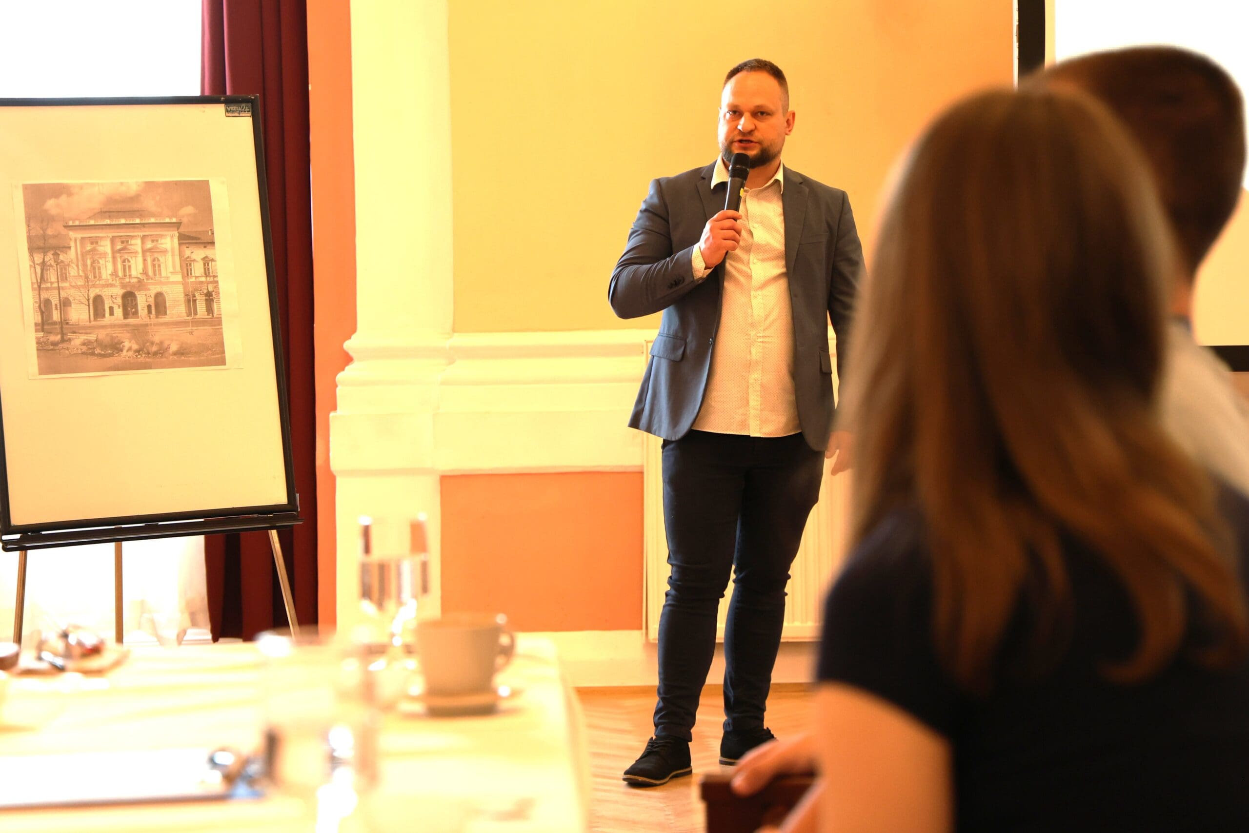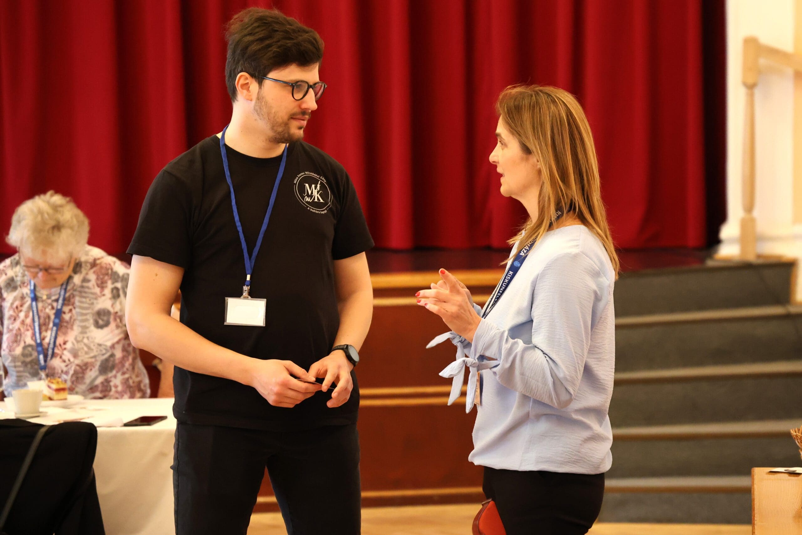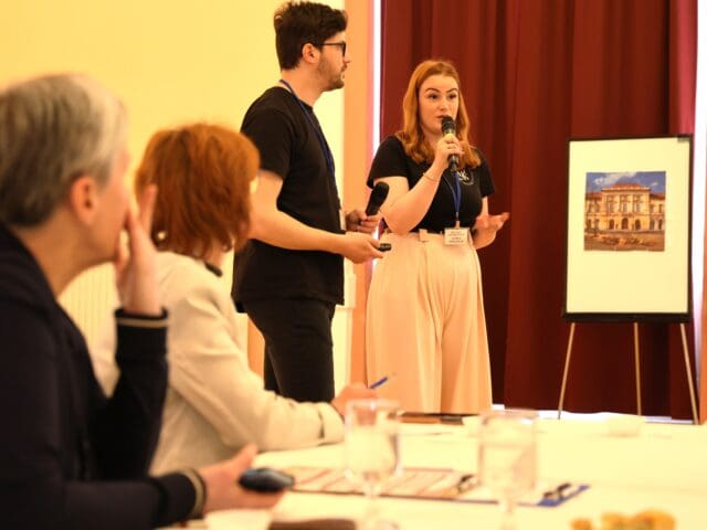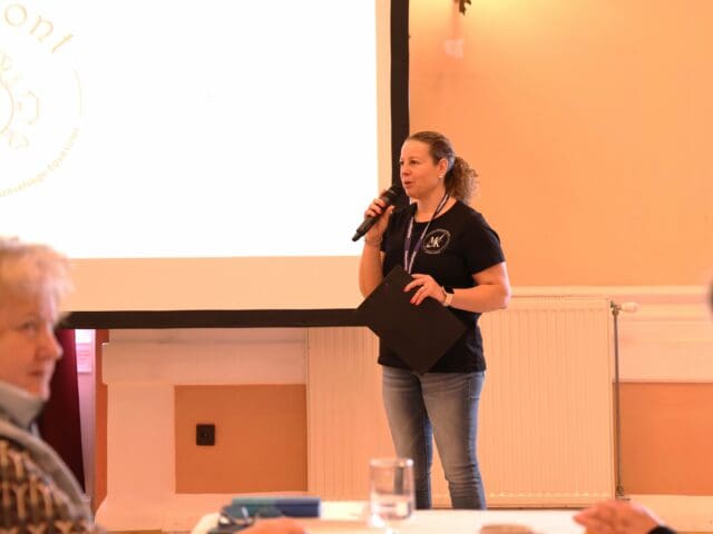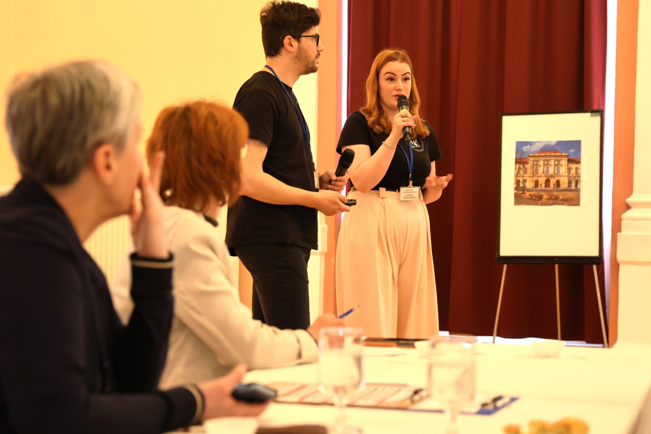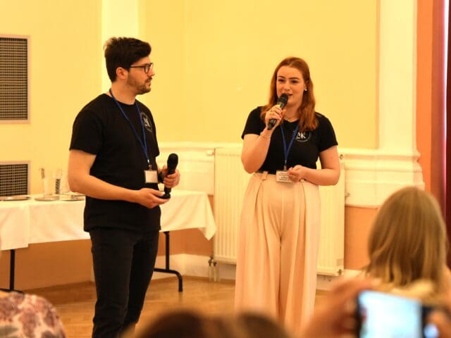 Vadkerti-Tóth Rita, az esemény mentora, a Konecsni György Művelődési Központ Tájház és Városi Könyvtár vezetője beszédében az egyesület munkájának fontosságát részletezte. Beke Pál, a közösségi művelődés legmeghatározóbb alakjának szavait idézte, amely szerint a települések jövőjéről gondolkodva elsősorban a helybeliek erejében és cselekvési vágyában bízhatunk. Ahogy fogalmazott: ez a gondolat ma is alappillére a közművelődési szakemberek munkájának és az egyesület kezdeményezéseinek. Megtudtuk, hogy a Magyar Közösségépítők Értékszövetsége Egyesület 2019-ben jött létre, több különböző céllal: nagyon fontos volt, hogy megerősítse a közösségi művelődési szakmai utánpótlást a Kárpát-medencében, valamint a tapasztalt és a pályakezdő szakembereket összekösse – új módszertani irányokkal fűszerezve. A szakmai tevékenységük fő fókuszában a fiatal szakemberek bevonása, tudásmegosztás, módszertani innováció, szakmai élmények és kedvcsinálók, hálózatépítés és partnerség, szenior-junior párbeszéd és a szakemberek pályán tartása áll. Kiépített programjaik között kiemelte a Látópont Hálózatot, a Látóutakat, a mentorprogramot, a KözösÉg Fesztivált, valamint kiadványaikat és módszertani segédanyagaikat.