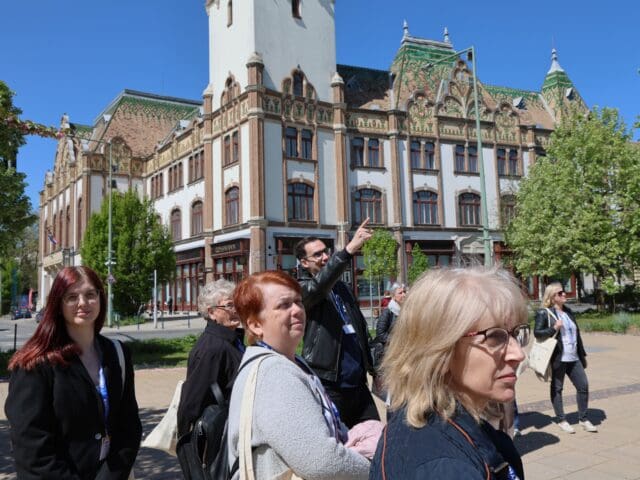 Az esemény folytatásában a Móra Ferenc Művelődési Központ munkatársai, Almási Emerencia és Nagy Gergely bemutatta intézményük jó gyakorlatát, a középiskolás kvízt. Prezentációjuk részletesen kitért a tervezés, szervezés, megvalósítás fázisaira, majd a bemutató után a megjelentek kérdéseire is választ adtak. A szakmai nap belvárosi sétával zárult, Magony Ádám vezetésével.