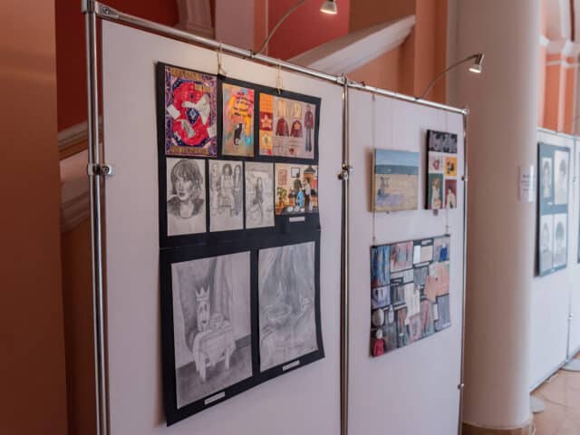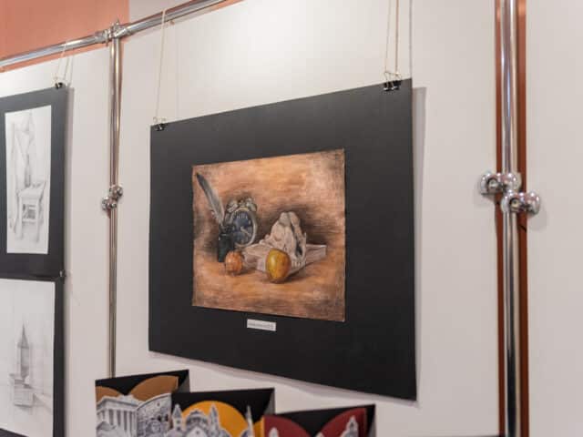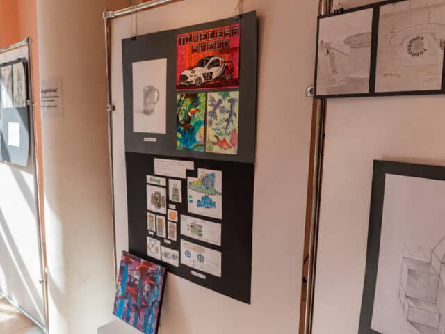 A Móra Ferenc Művelődési Központ auláját teljesen betöltötték a gimnazista diákok alkotásai. A tárlat grafikákat, festményeket és 3D-s műveket egyaránt tartalmaz. A gazdag képanyag tematikája változatos: a geometrikus formák mellett portrék, valamint – a címhez hűen – absztrakt és abszurd alkotások is helyet kaptak.
