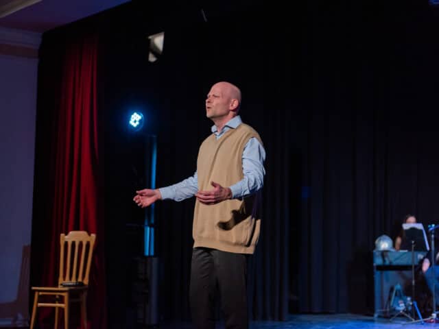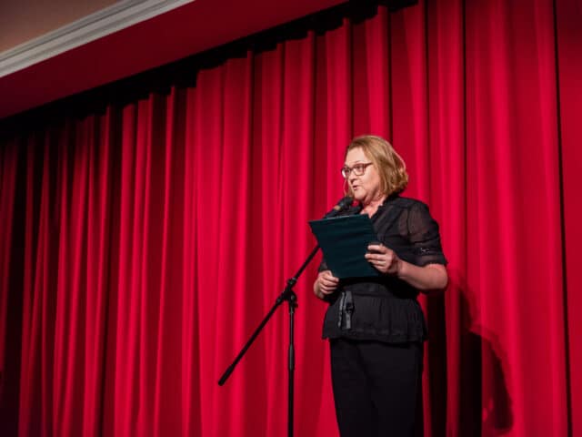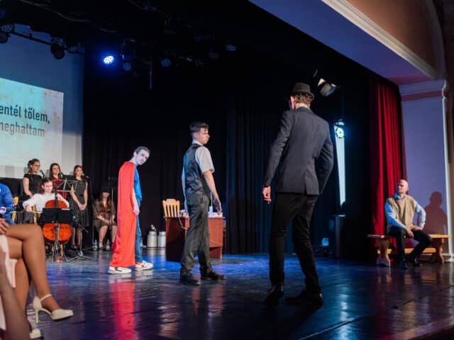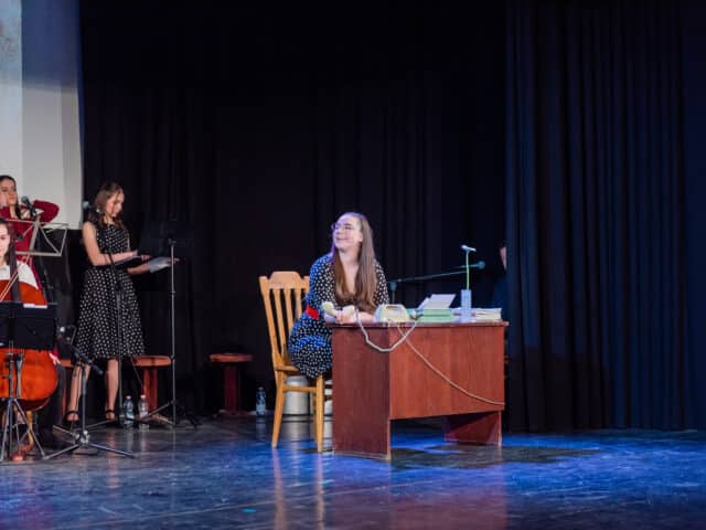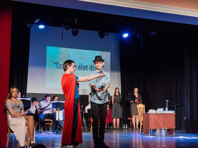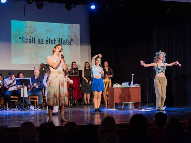 Az esemény a színházteremben folytatódott, ahol Kovács-Csonka Szilvia, az intézmény igazgatója köszöntötte a megjelenteket. Kiemelte: örömteli, hogy immár tizenharmadik alkalommal rendezik meg a gimnázium ezt a rendhagyó irodalmi előadást.