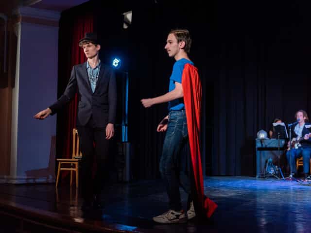 A diákok és tanárok közös előadása epizodikus szerkezetben elevenített fel néhány, az íróra jellemző történetet, zenés és táncos betétekkel színesítve.