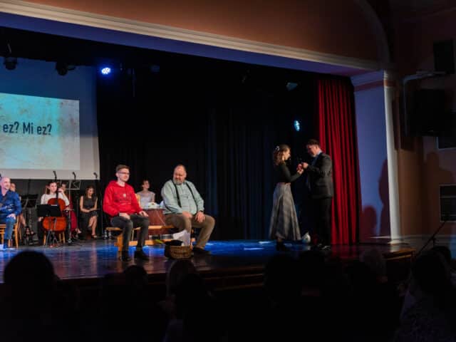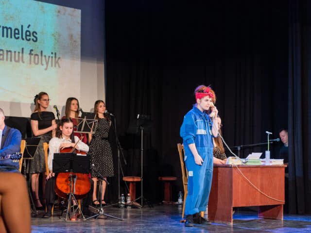 Az előadást Kovácsik Zita, a gimnázium tanára vezette fel és beszélt Örkény István munkásságáról. Elmondta: Örkény a 20. századi magyar irodalom egyik legeredetibb és legkülönlegesebb hangú írója volt. Legismertebb műfaja az úgynevezett egyperces novella, amely rövid, csattanós, gyakran abszurd és ironikus történeteivel új színt hozott a magyar prózába. Ezek a novellák groteszk módon világítanak rá a társadalmi és emberi visszásságokra, miközben humorral és mély emberismerettel ábrázolják a mindennapokat.