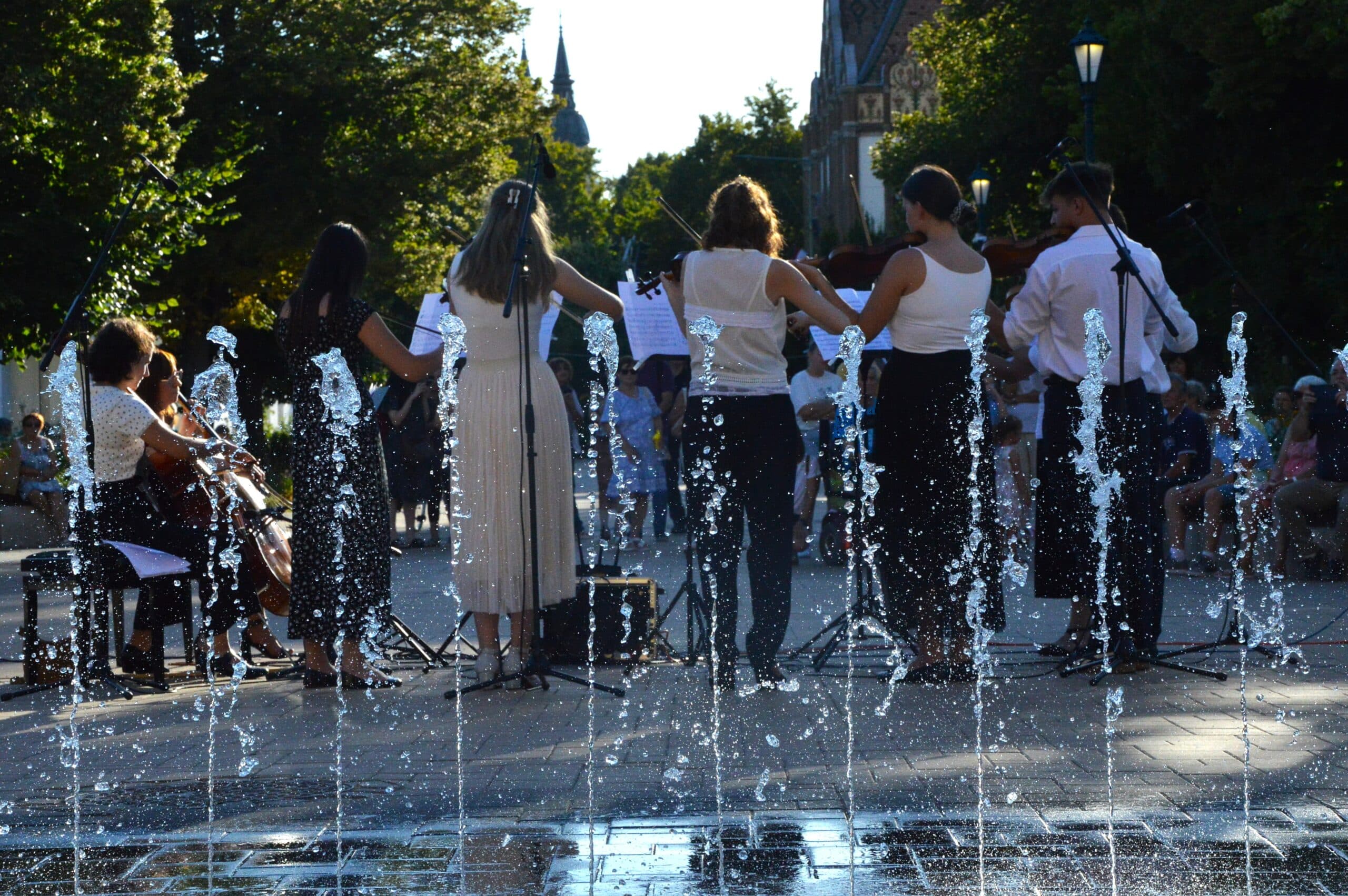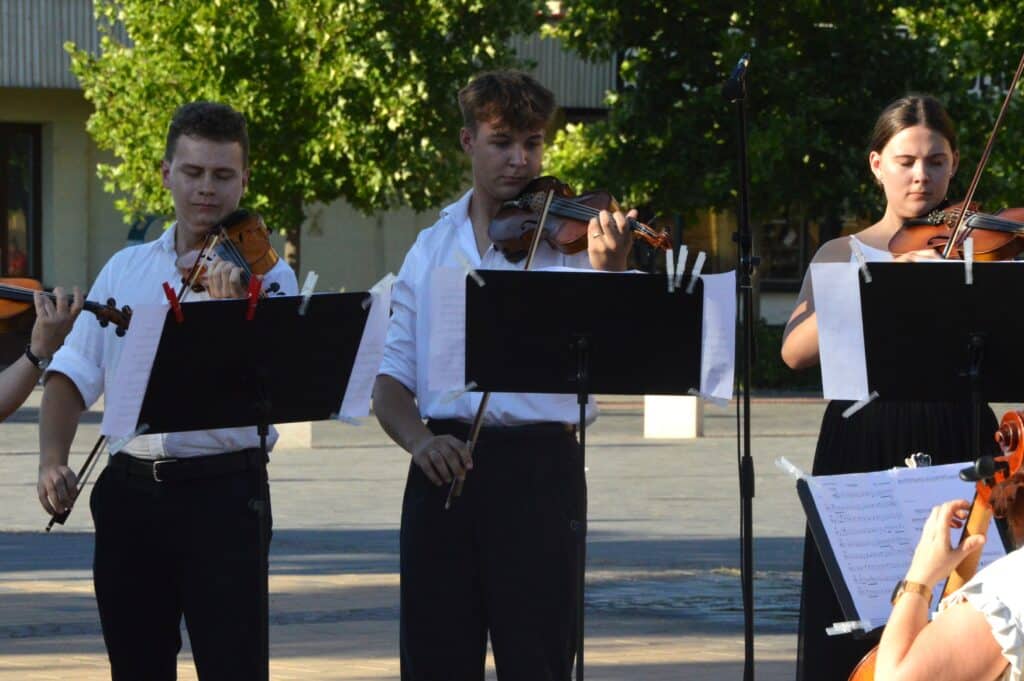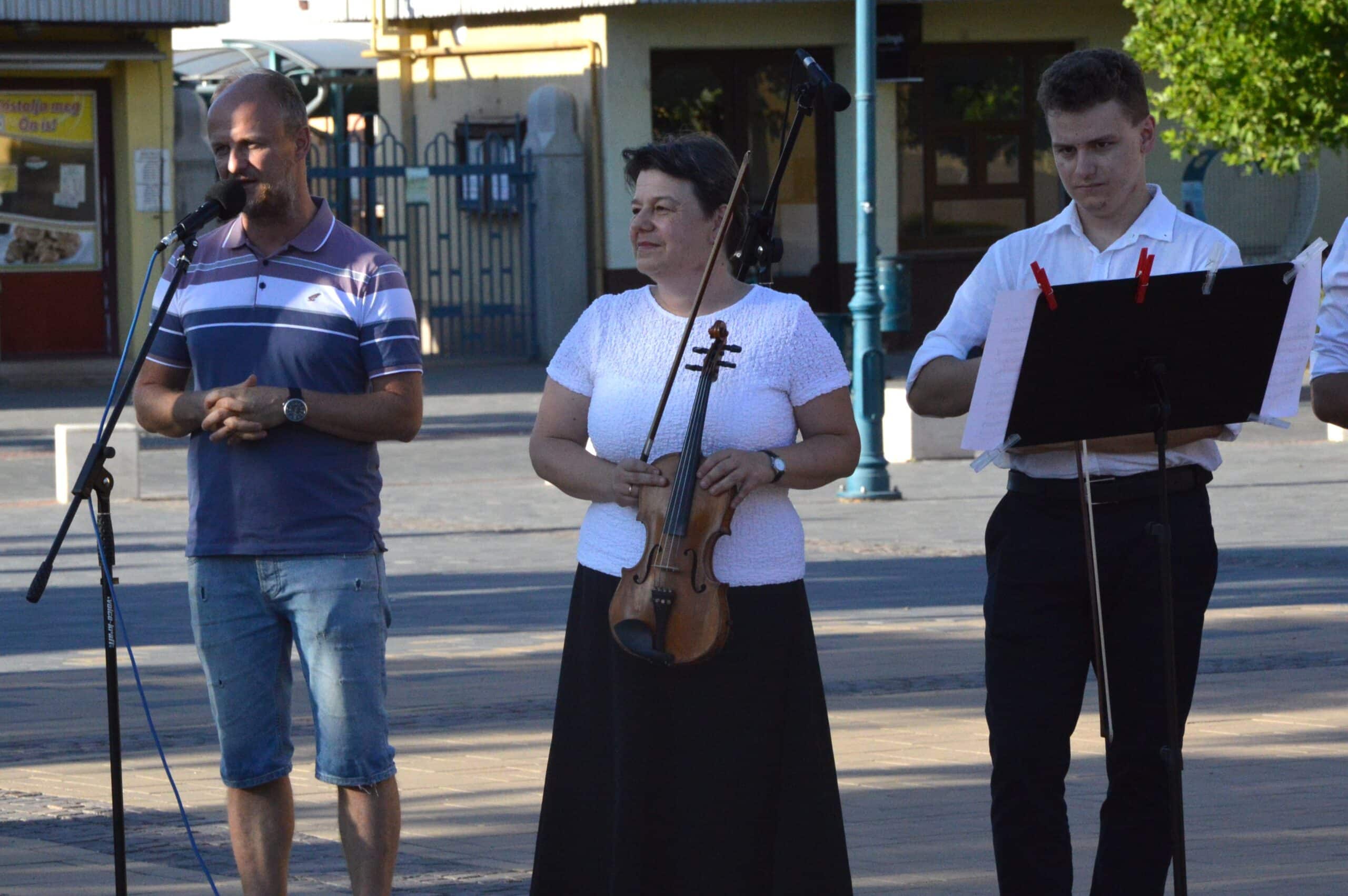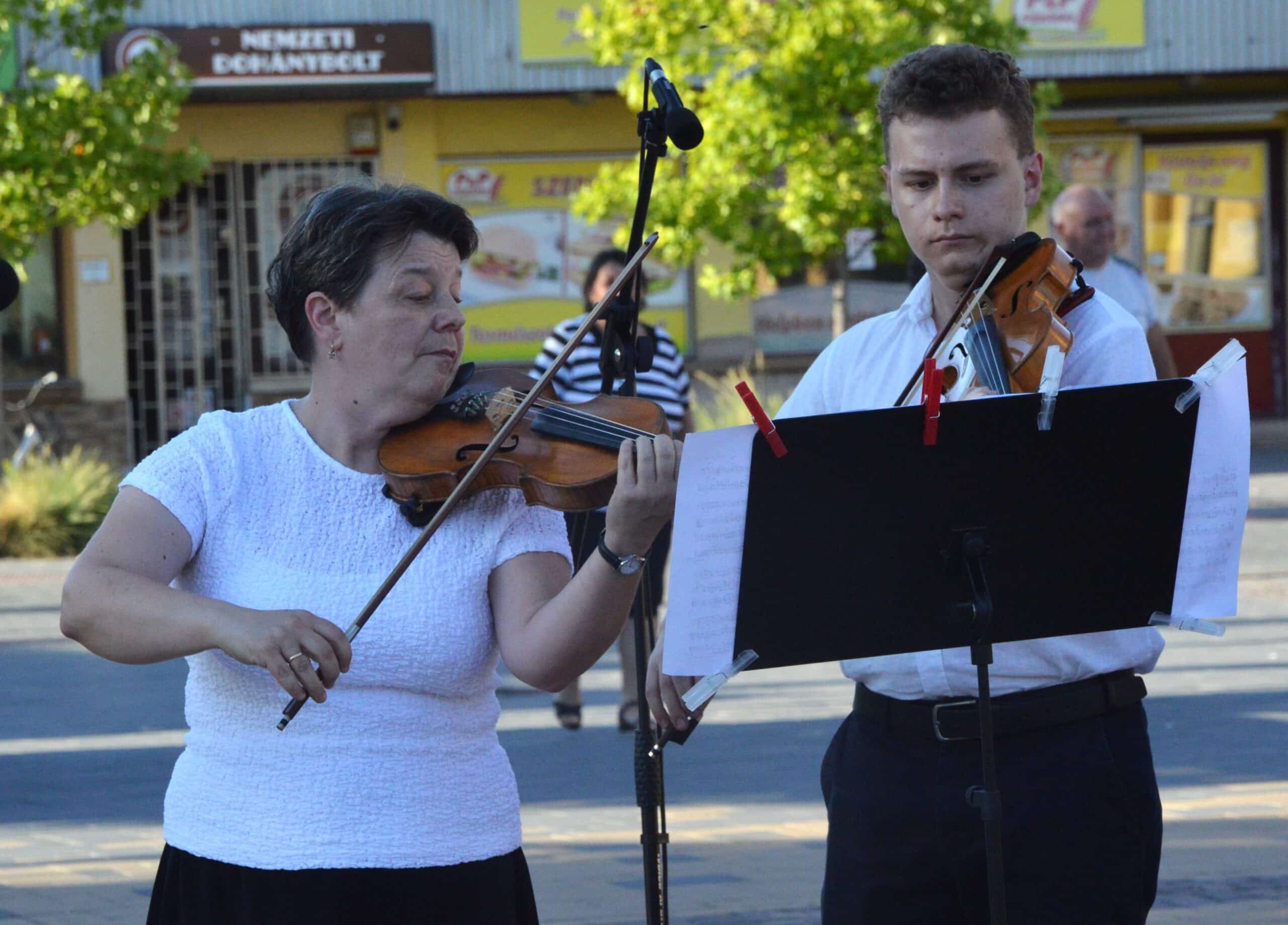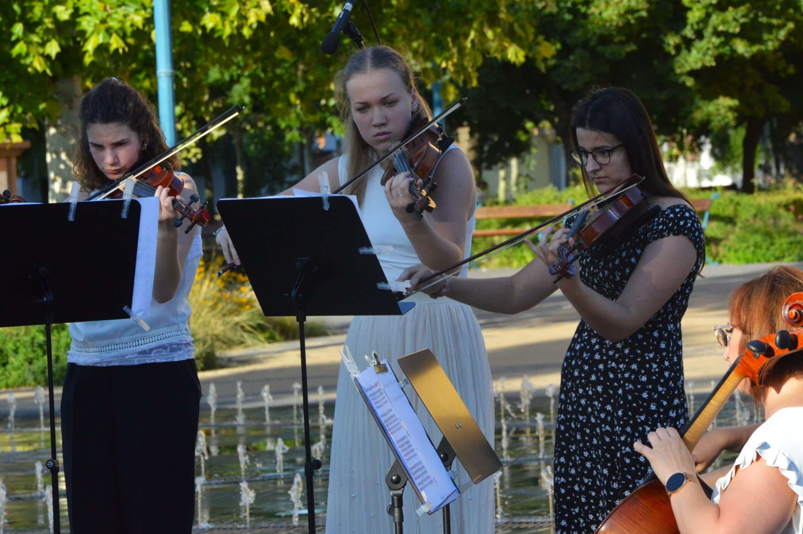 Folytatódott a Béke-Tér-Zene programsorozat augusztus 8-án, pénteken este a Sarlós Boldogasszony Templom előtt. Az eseményen a Kiskunfélegyházi Balázs Árpád Alapfokú Művészeti Iskola vonósegyüttese lépett fel Závogyánné Varga Ildikó és Kurai-Kis Szilvia vezetésével.
