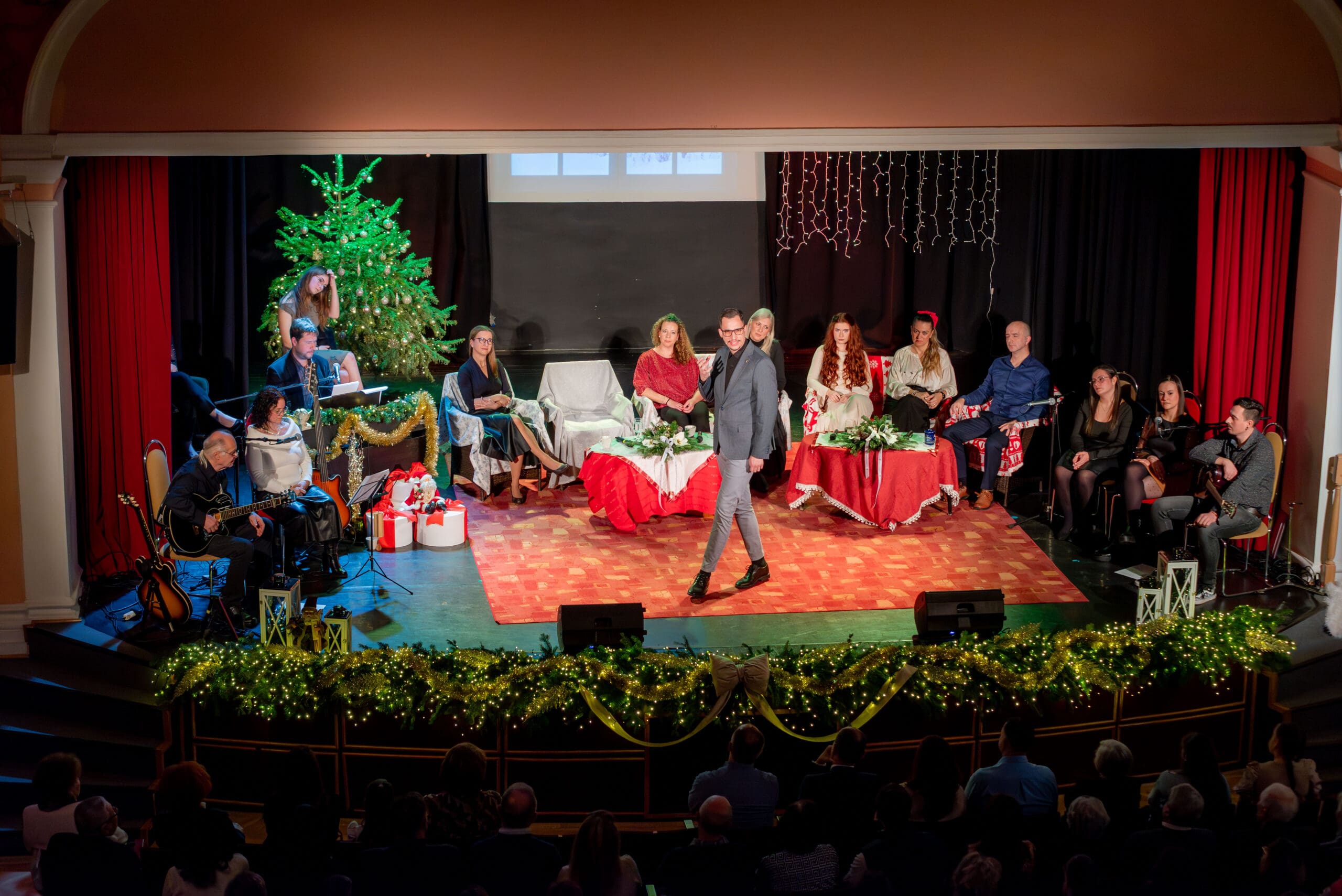 – Bízunk benne, hogy az este folyamán olyan élményekben részesülhetnek, amelyek elvarázsolják önöket egy olyan világba, ahol ráhangolódhatnak a közelgő ünnep csodájára, a karácsonyra. Ezen gondolatokból kiindulva állítottuk össze ma esti műsorunkat olyan fellépőkkel, akik a művelődési központtal közvetett, vagy közvetlen kapcsolatot ápolnak és akik városunk kulturális és zenei köreiből jöttek el önökhöz. Az este folyamán felcsendülnek musical betétek, magyar és külföldi örökzöld dallamok, dicsőítő énekek, valamint elhangoznak magyar írók tollából született prózai művek is – ismertette az igazgató.