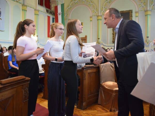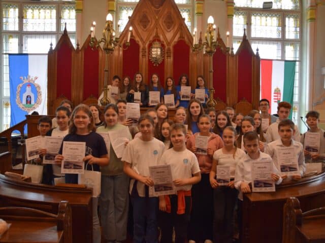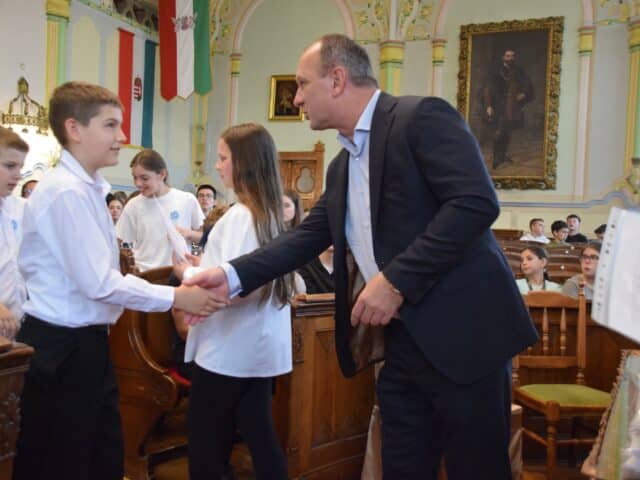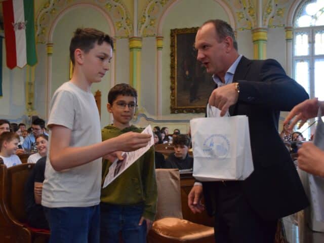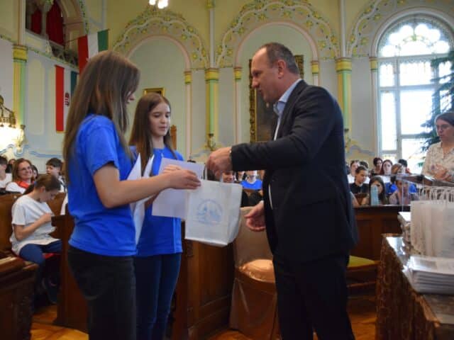 Hozzátette azt is, hogy örül annak, hogy így a tavaszi időszakban megtelik a városháza gyermekhanggal, hiszen ilyenkor a legtöbben a Levéltárba és a díszterembe jönnek a helyismereti vetélkedő feladatait megoldani.