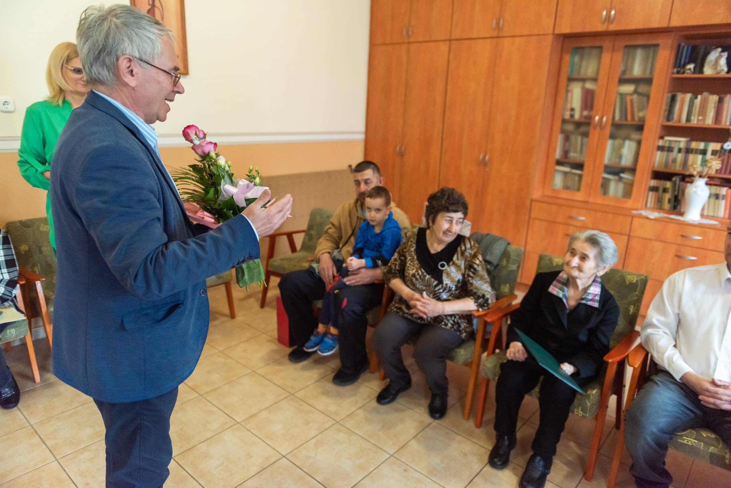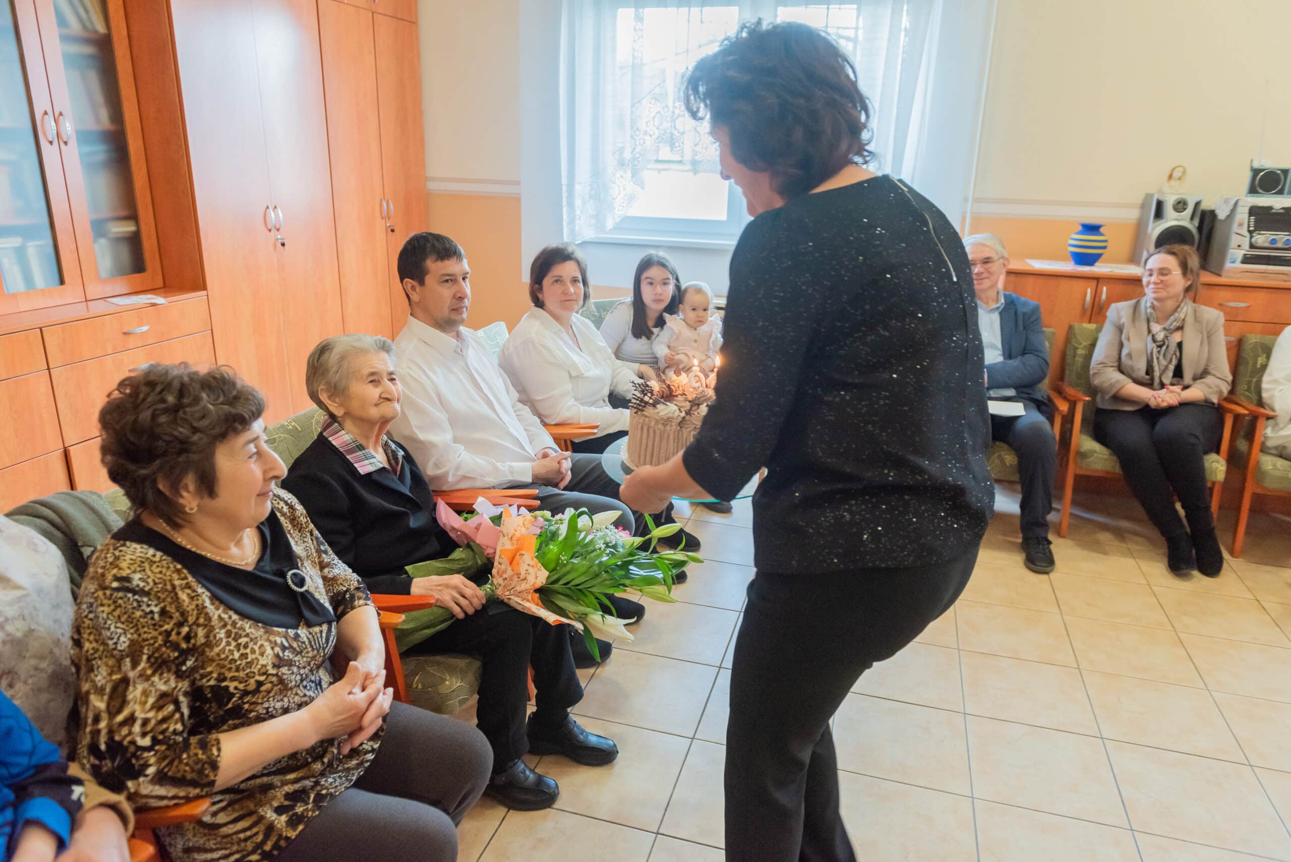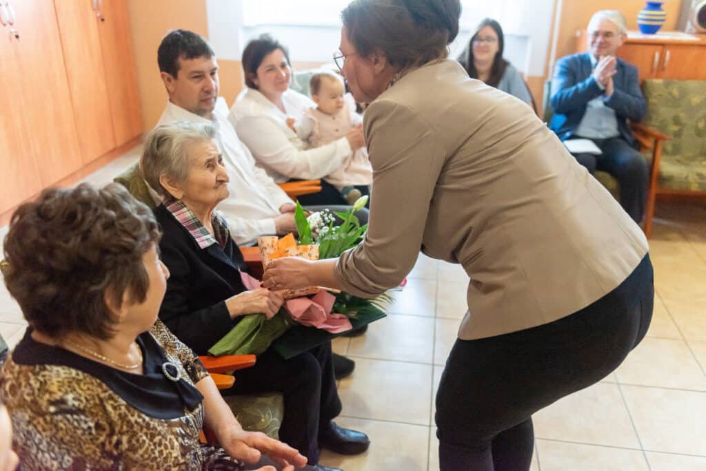 A félegyházi Nádasdy utcai Idősek Otthonában Balla László alpolgármester és Magyariné Tóth Erika intézményvezető köszöntötte a város nevében a 90-dik születésnapját családtagjai körében ünneplő Kalapács Istvánné Kovács Erzsébetet.