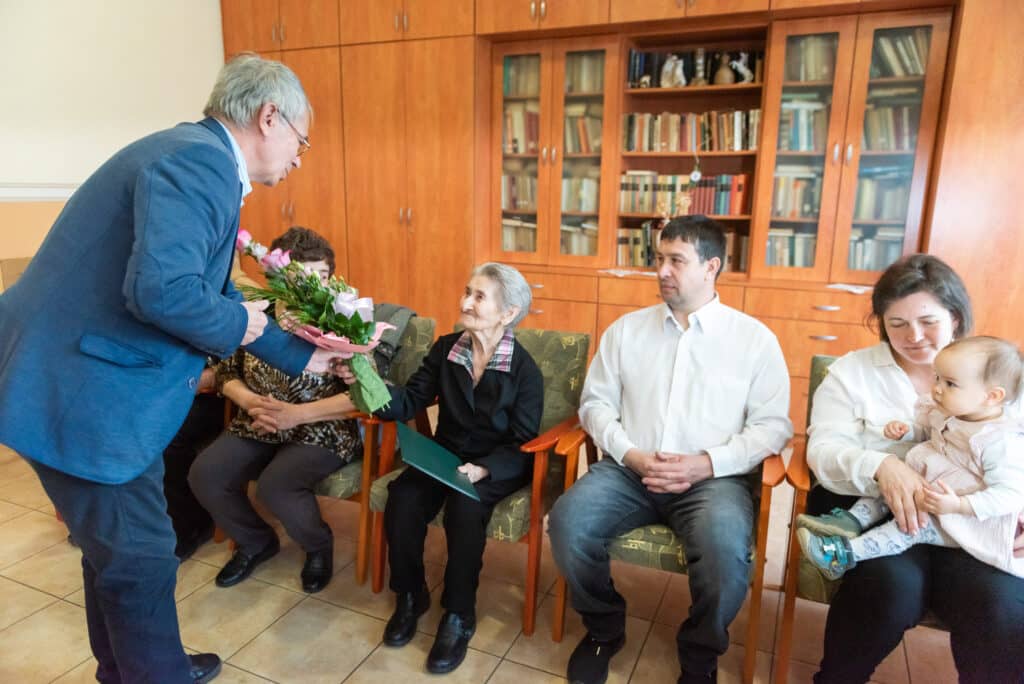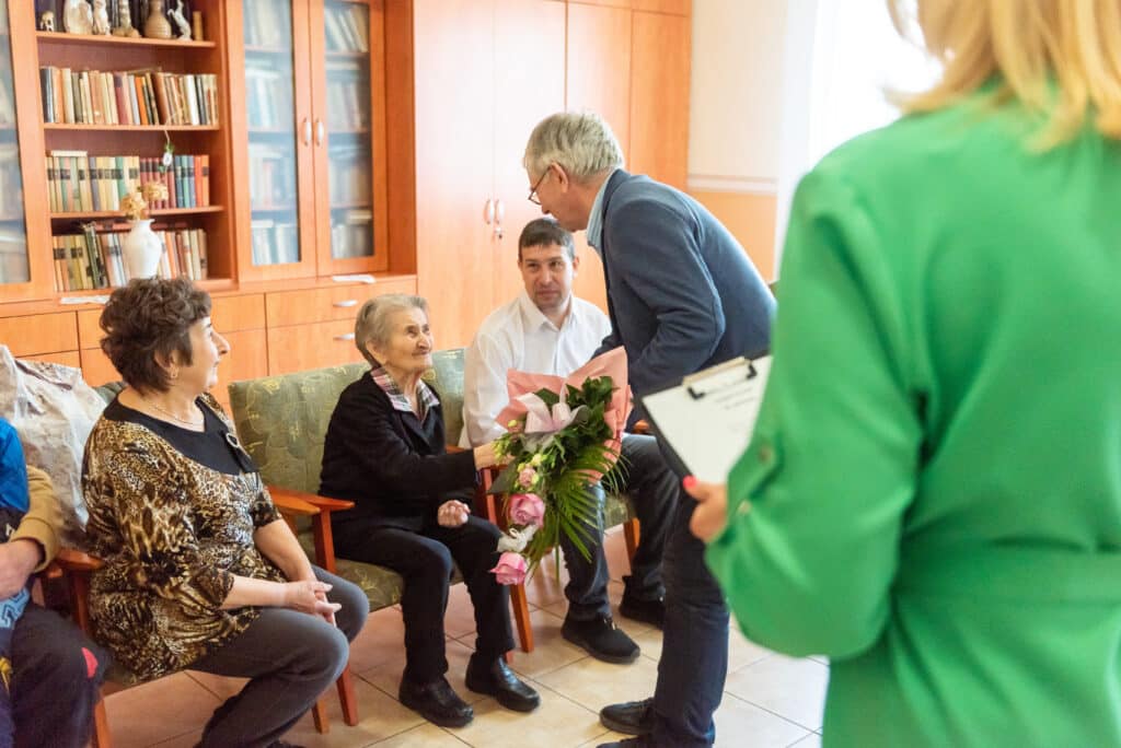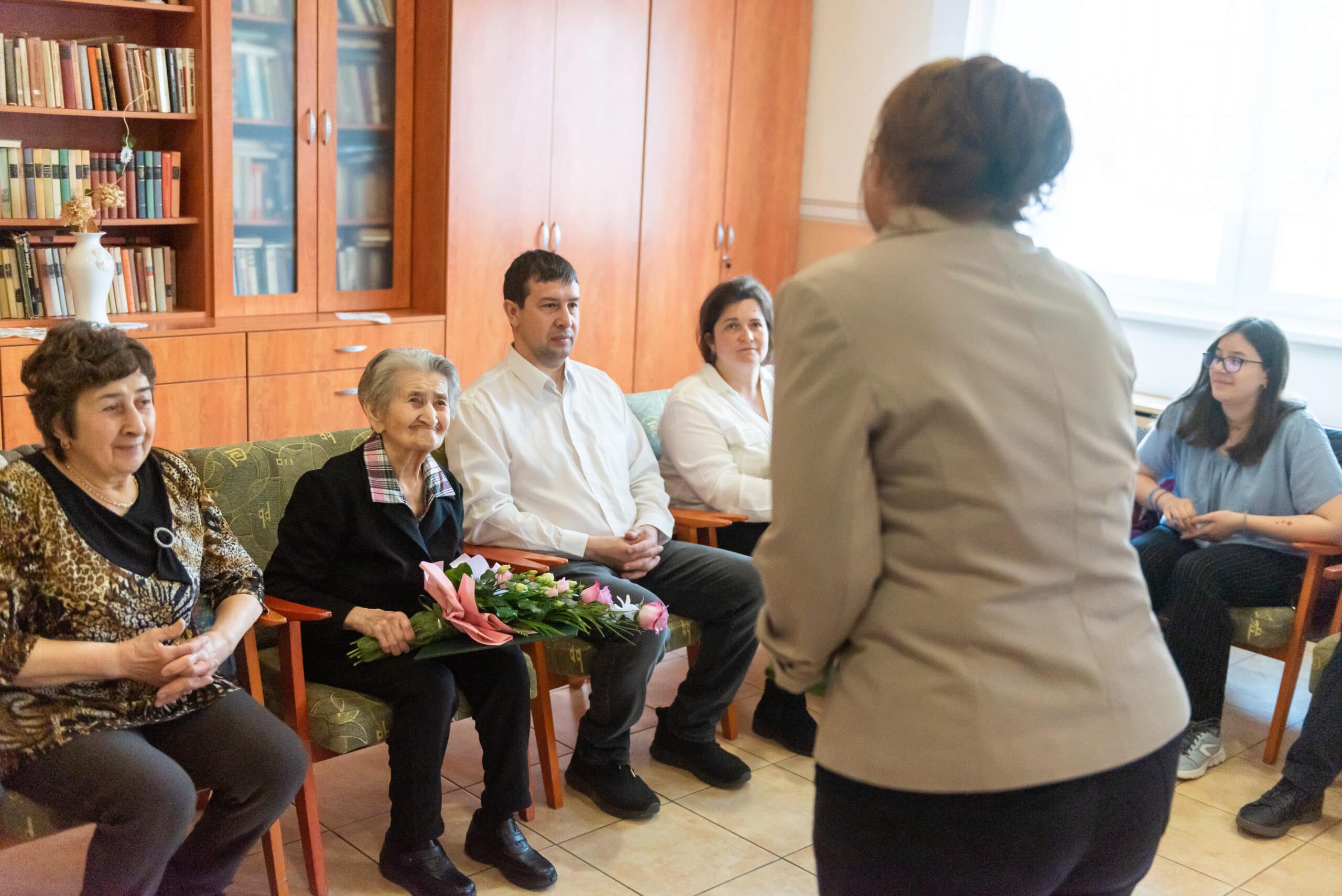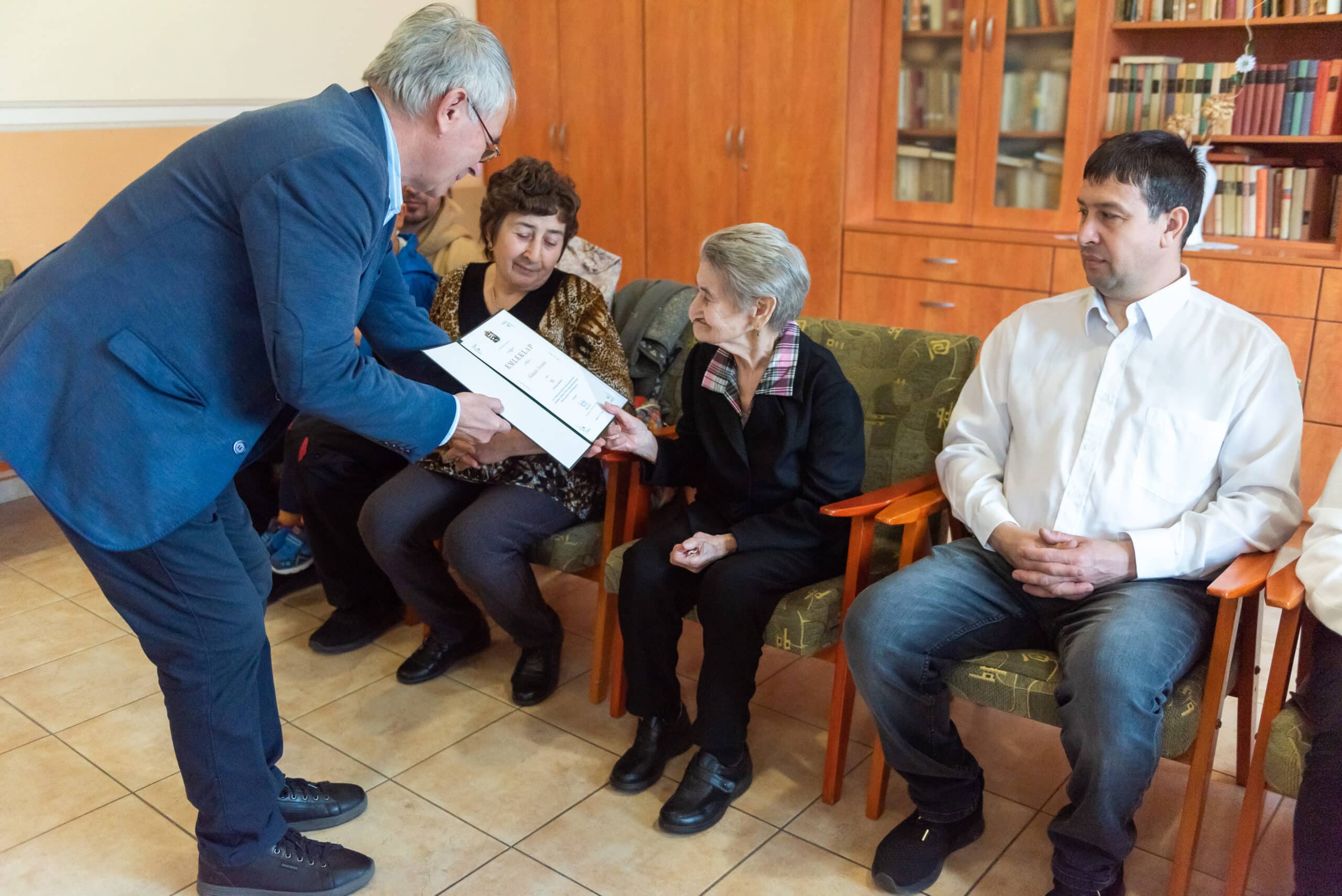 A félegyházi Nádasdy utcai Idősek Otthonában Balla László alpolgármester és Magyariné Tóth Erika intézményvezető köszöntötte a város nevében a 90-dik születésnapját családtagjai körében ünneplő Kalapács Istvánné Kovács Erzsébetet.