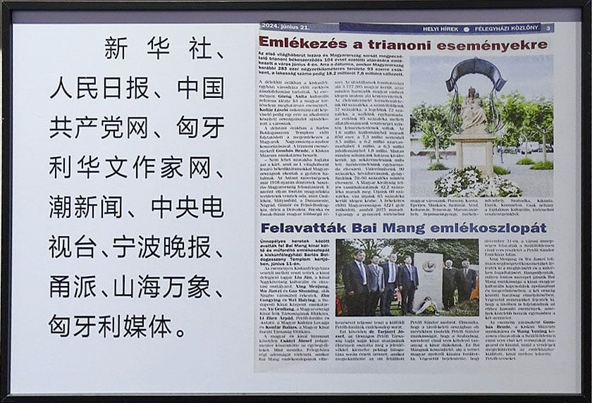 Dr. Tarjányi József lapunknak elárulta, hogy több esemény előzte meg a kínai utat. Fontos mérföldköve volt ennek, hogy ismeretséget kötött a 30 éve hazánkban élő Li Zhen Árpáddal, aki saját, kétnyelvű, kínai-magyar Petőfi-kötetének bemutatóján járt először Kiskunfélegyházán. Ekkor fogalmazódott meg kettejük között a gondolat, hogy egy kínai Petőfi műfordítónak állítsanak emlékoszlopot Kiskunfélegyházán. A 60-70 kínai fordító közül Bai Mangra esett a választásuk, aki hasonlóan Petőfihez nagyon fiatalon halt mártírhalált a szabadságért vívott harcban, hazájában. Az avatás megvalósult, ahol tiszteletét tette Bai Mang szülővárosának delegációja is, majd a későbbiekben a kínai nagykövetet is Kiskunfélegyházán köszönthették. A későbbiekben Li Zhen Árpád felajánlása és fordítása nyomán helyezték el a Petőfi Emlékház falán a költő Szülőföldemen című versének első versszakát, kínai nyelven.