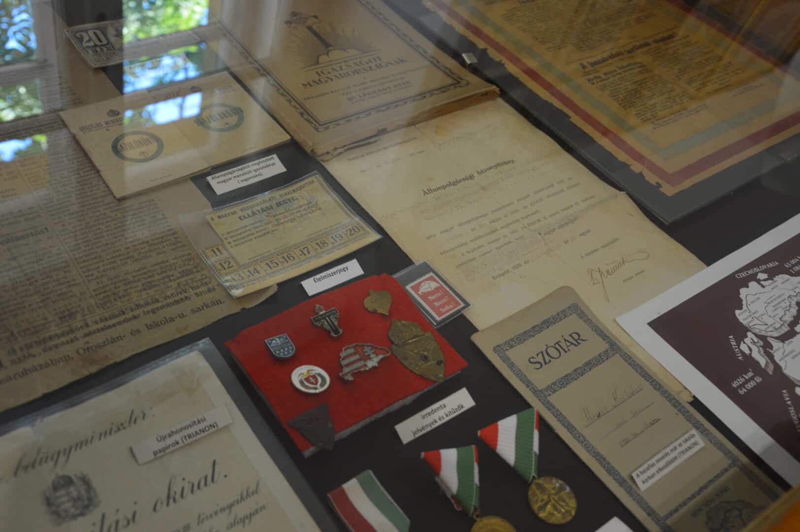 A következő vitrinben újabb emberi sorsok elevenednek meg a dokumentumokat által. Ezek már nem a csatatérhez, hanem a békekötés következményeihez kötődnek. A vagonlakók emlékei ezek, akik a trianoni határok miatt kényszerültek elhagyni otthonukat, és éveken át vasúti vagonokban éltek.