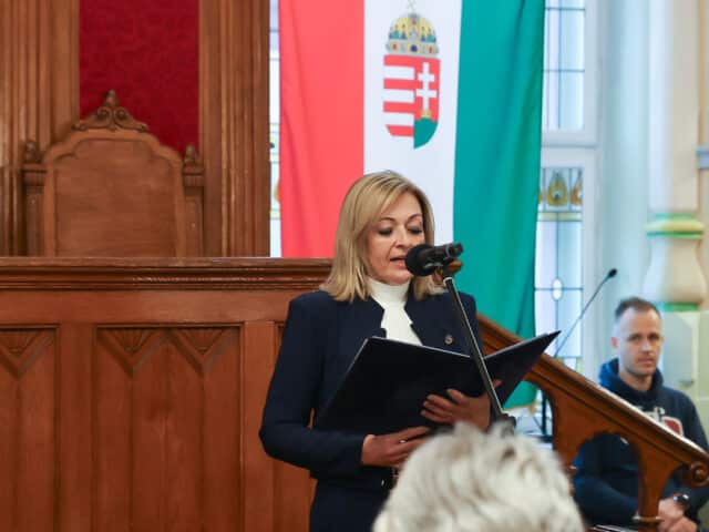 Csányi József polgármester ünnepi beszéde kezdetén dr. Ónodi Izabella, a Művelődési Szociális Bizottság elnökének jókívánságait tolmácsolta a megjelenteknek, aki egyéb elfoglaltsága miatt nem tudott jelen lenni.