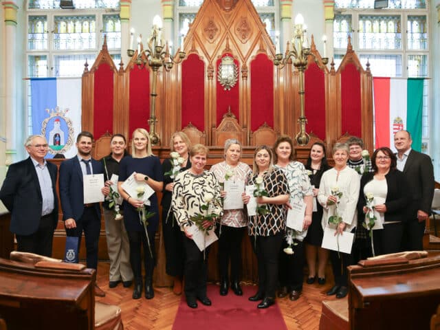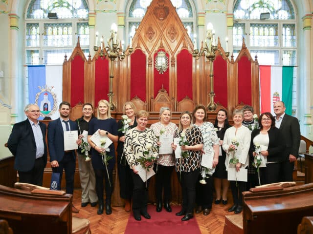 – Önök azt a szakmát, hivatást választották magunknak, amelyben ezt a gondoskodást, törődést, áldozatkészséget viszik tovább életünk során. Nap mint nap találkoznak olyan rászoruló emberekkel, akikről gondoskodni kell és ezt feltétel nélkül, őszinte szívvel végzik. Szépsége mellett el kell ismernünk, hogy talán a legnehezebb területe ez a munka világának, ahol nincs ünnepnap, nincs éjszaka és nincs olyan pillanat, amikor szolgálatukat le tudnák tenni. Önök ezt választották és mindent megtesznek azért, hogy az önökre bízott ellátottakat, gondozottakat jó szívvel, tiszta erkölccsel ellássák. Őszinte tisztelettel tekintek minden szociális ágazatban dolgozóra, hiszen az ott tapasztaltak mindig megérintik az embert. Nekünk az önkormányzatnál az egyik legnagyobb feladatunk, hogy mi is gondoskodjunk önökről. Sajnos a szociális ágazatban dolgozók anyagi megbecsülése messze elmarad az elvárttól, mi megpróbáljuk mégis azokat a lehetőségeket kihasználni, amelyek rendelkezésre állnak. Ezzel tudjuk hálánkat kifejezni Önök felé. Mindannyiuknak jó egészséget kívánok és bízom benne, hogy még hosszú évekig tudunk együtt dolgozni! – fogalmazott a polgármester, aki az ünnepség folytatásában átnyújtotta az ágazatban dolgozók elismeréseit.