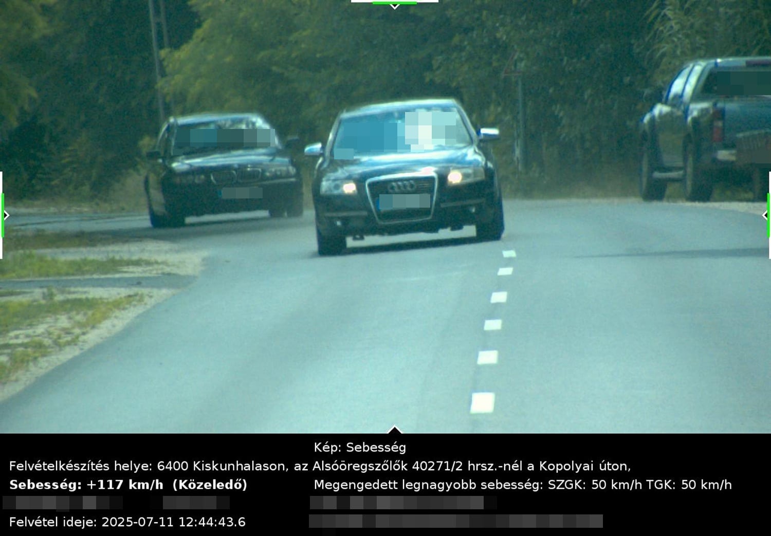 Az elmúlt héten a megengedett sebességhatárokat regisztráltan 2651-en lépték át. A szabálytalankodóknak legalább 50 ezer forint közigazgatási bírságot kell fizetniük, a kiszabható büntetés összegének maximuma pedig 468 ezer forint. Annak a gyorshajtónak, aki 50 helyett 117 km/h-val közlekedett, 312 ezer forintot kell fizetnie.