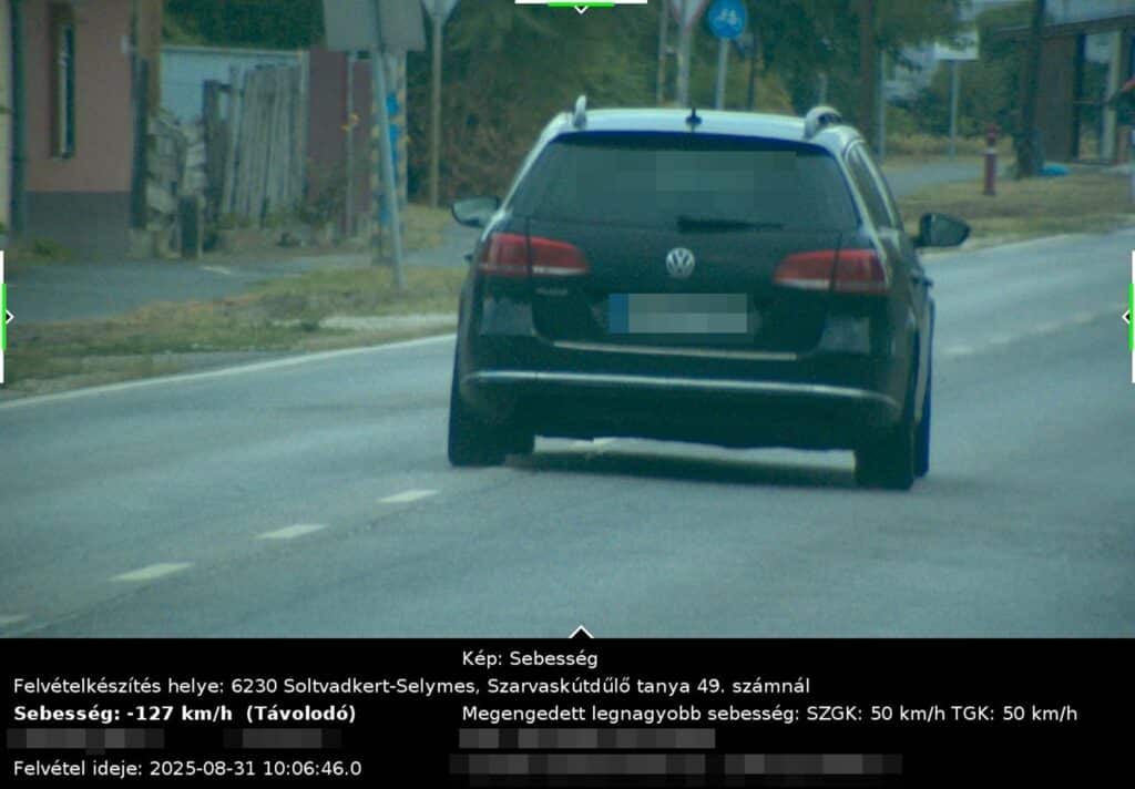 Az elmúlt héten a megengedett sebességhatárokat regisztráltan 2392-en lépték át. A szabálytalankodóknak legalább 50 ezer forint közigazgatási bírságot kell fizetniük, a kiszabható büntetés összegének maximuma pedig 468 ezer forint. Ennyit, a legmagasabb összeget kell fizetnie annak a sofőrnek, aki Soltvadkertnél 50 helyett 127 km/h-val közlekedett.
