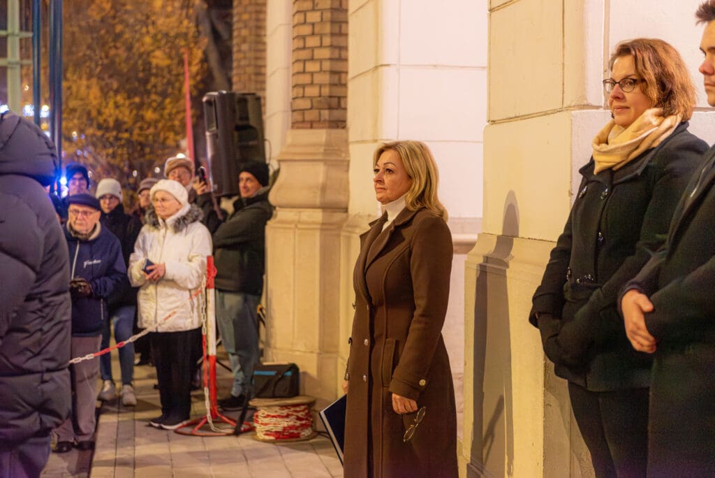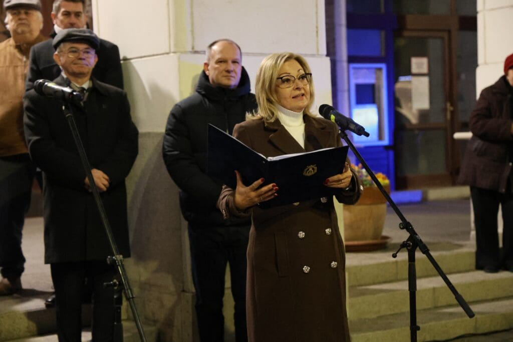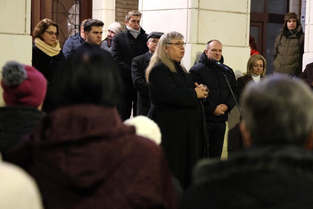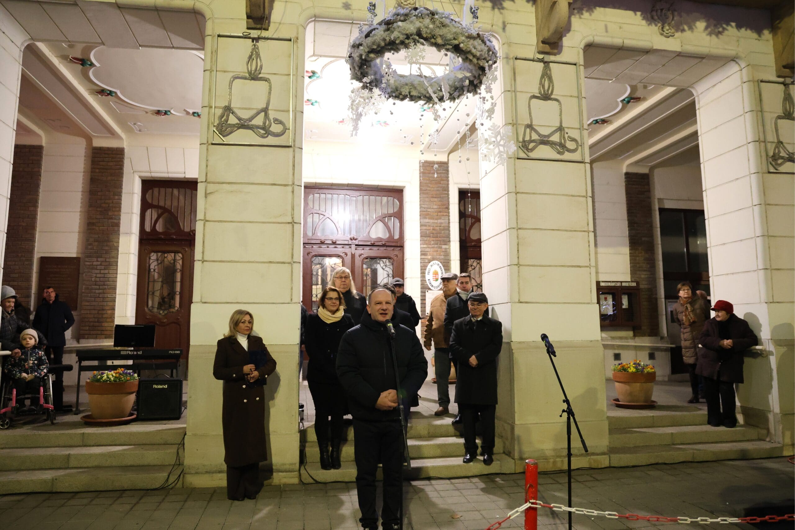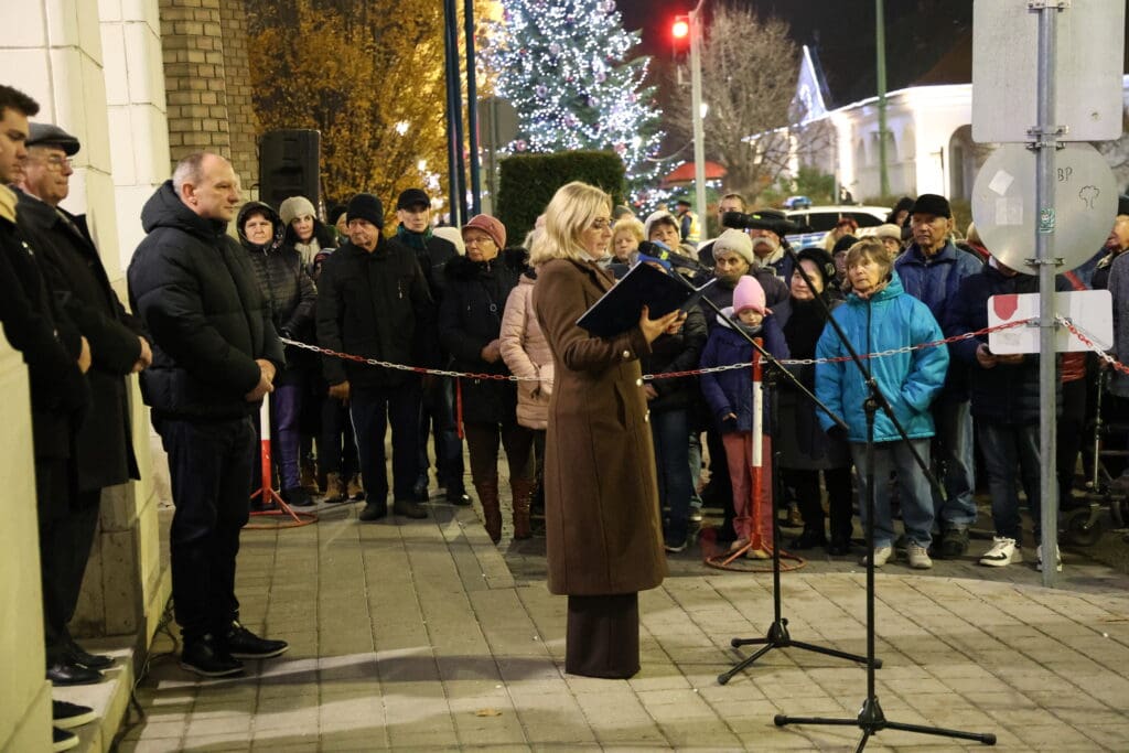A műsor kezdetén Keresztes Tünde, az önkormányzat kulturális szakreferense mondott köszönetet azoknak, akik az idei városi advent ünnepi dekorációjának megvalósításán dolgoztak.
