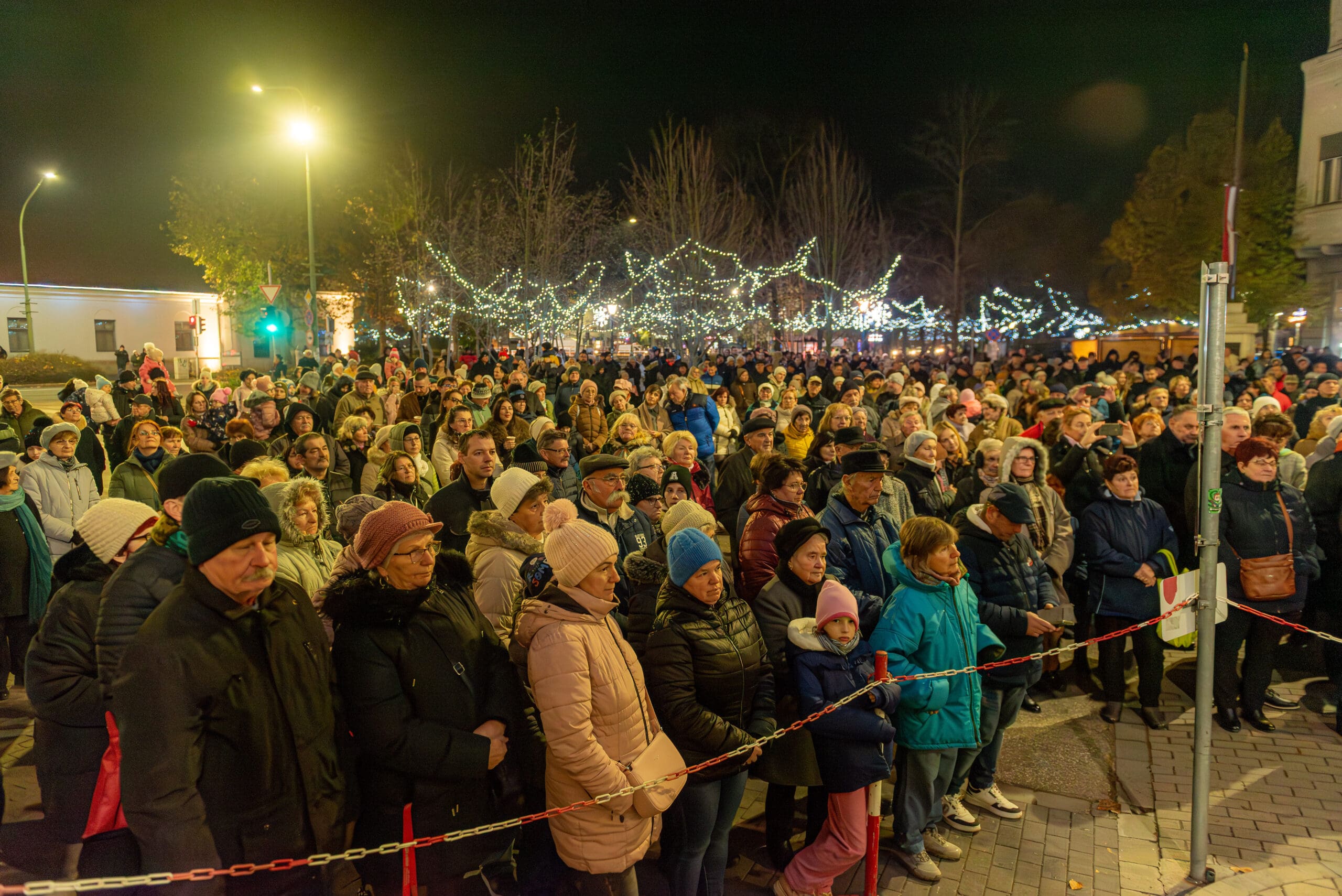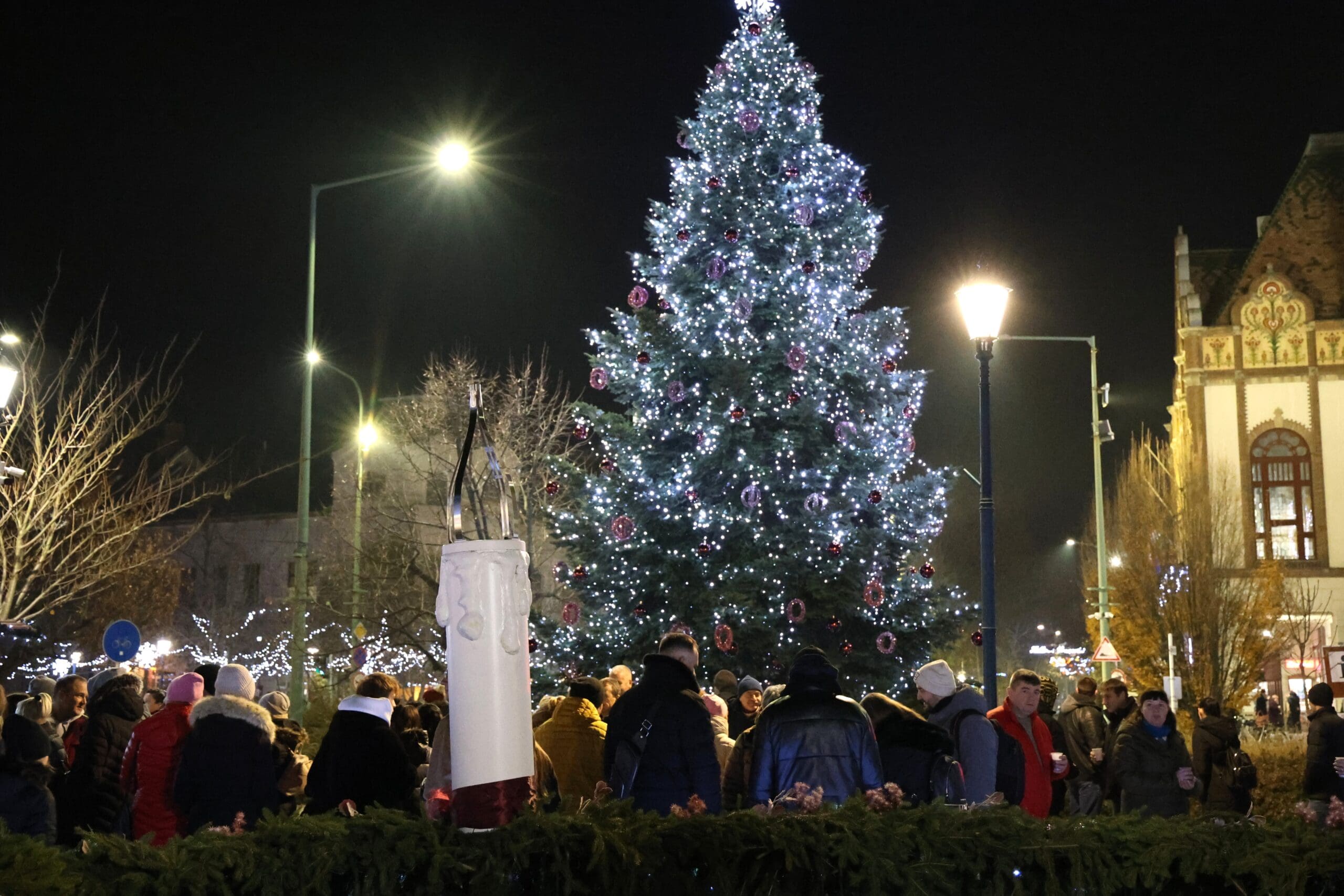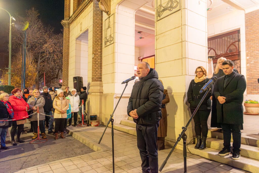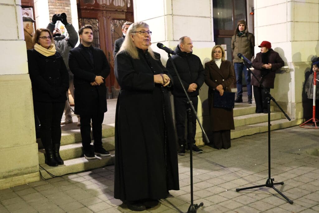 Hajagos Gyula, a Szent István Templom plébánosa emlékeztette a megjelenteket arra, hogy Jézus Krisztusra várva ki kell nyitnunk szívünk ajtaját. Ahogy fogalmazott, a városban jelenlévő fények, ragyogás, csillogás mind azt jelzik, hogy készülődik valami. A jelenségnek üzenete van. Várjuk Jézus Krisztust, hogy belépjen az életünkbe és ha valakit várunk, akkor villanyokat kapcsolunk és kitárjuk az ajtót. Ki kell nyitnunk szívünk ajtaját, hogy a találkozás Jézussal, a karácsony ünnep lehessen.