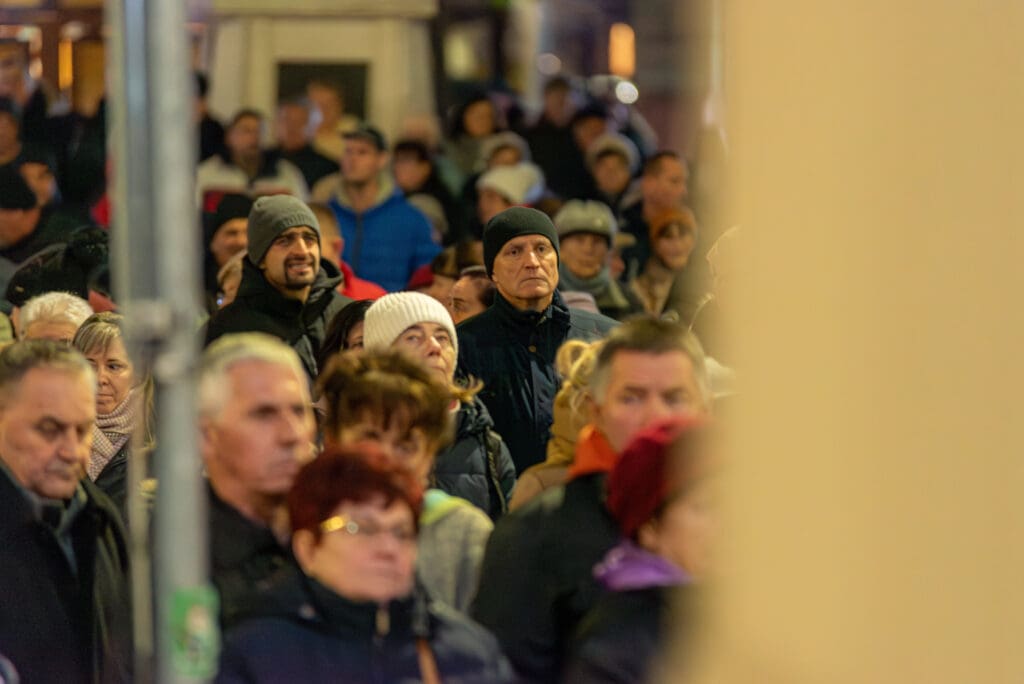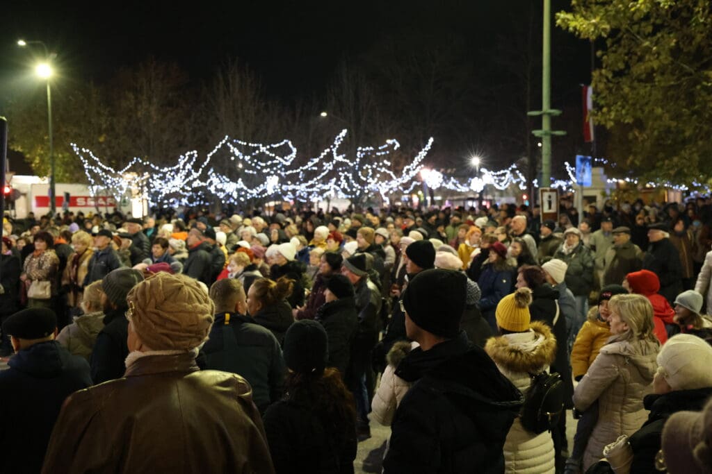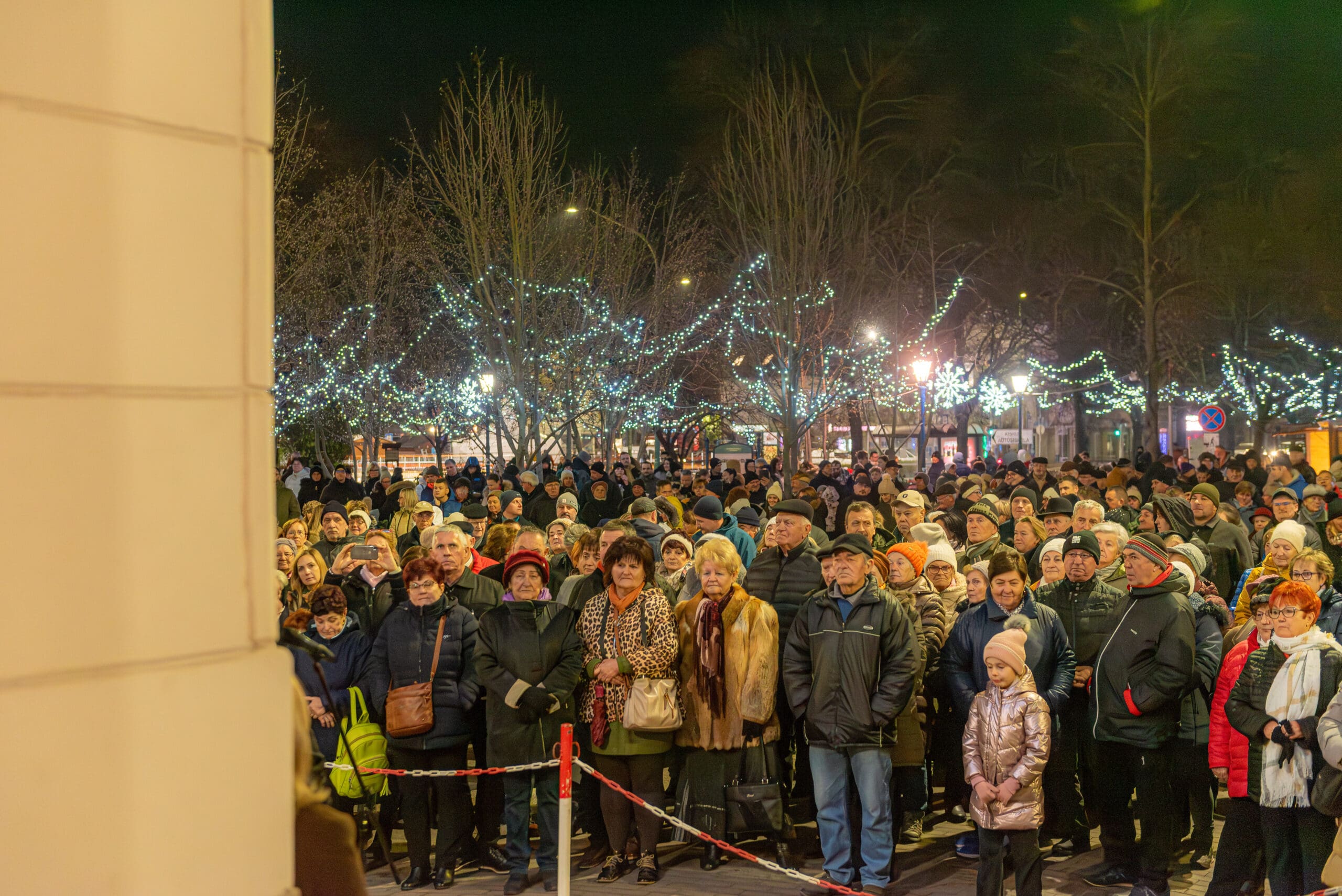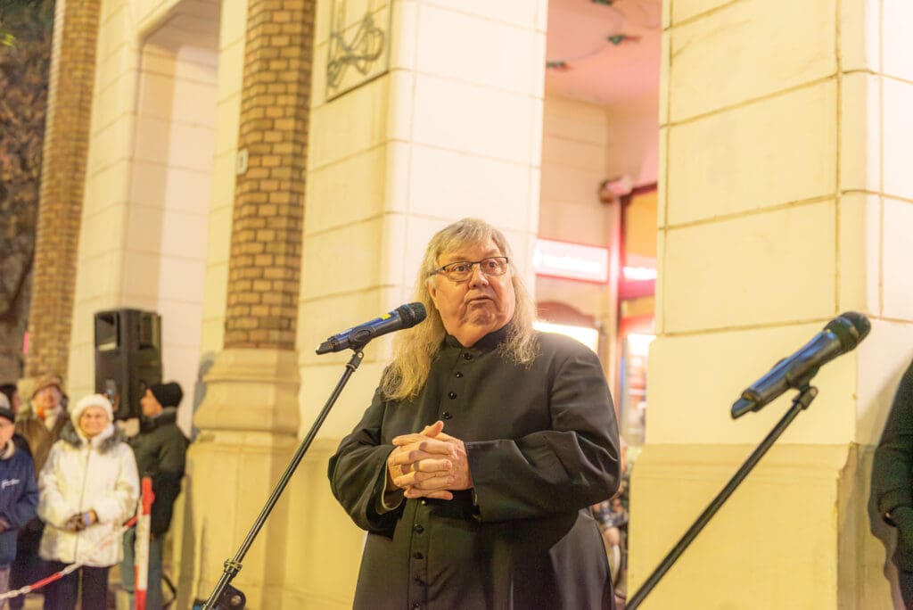 Hajagos Gyula, a Szent István Templom plébánosa emlékeztette a megjelenteket arra, hogy Jézus Krisztusra várva ki kell nyitnunk szívünk ajtaját. Ahogy fogalmazott, a városban jelenlévő fények, ragyogás, csillogás mind azt jelzik, hogy készülődik valami. A jelenségnek üzenete van. Várjuk Jézus Krisztust, hogy belépjen az életünkbe és ha valakit várunk, akkor villanyokat kapcsolunk és kitárjuk az ajtót. Ki kell nyitnunk szívünk ajtaját, hogy a találkozás Jézussal, a karácsony ünnep lehessen.