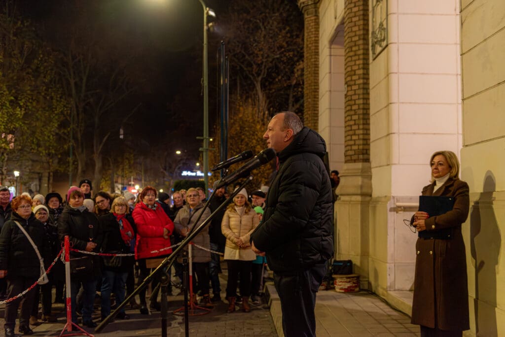 – Ebben is látható az, ahová tartunk, ami a városra és a városlakókra vár a jövőben. Hiszem, hogy ennek szellemében olyan békés várost tudunk a továbbiakban is építeni, ami mindenki számára kedvező, mindannyiunknak biztos jövőt és lehetőséget teremt. Elérkeztünk ehhez a csodálatos időszakhoz, ami minden héten tartogat majd meglepetéseket. Én arra kérem önöket, hogy ezeket a rendezvényeket látogassák! A városi ünnepségek koronája lesz karácsony előtt a fúvószenekari hangverseny, ahol igazán érezhetjük, hogy megérkeztünk a várva várt eseményhez. Áldott, békés karácsonyt kívánok minden félegyházinak és idelátogatónak! Isten éltesse önöket! – fogalmazott Csányi József.