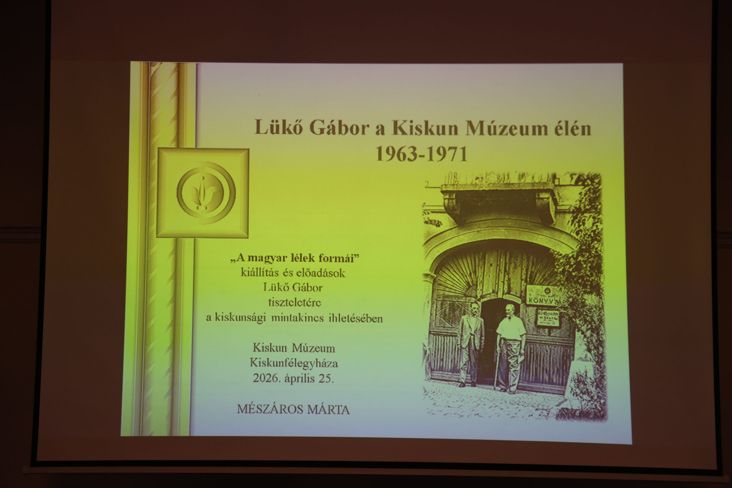 A rendezvény házigazdája, Mészáros Márta múzeumigazgató köszöntőjében kiemelte a helyszín jelentőségét: Lükő Gábor 1963 és 1971 között az intézmény igazgatójaként végezte áldásos munkáját, és itt töltötte szakmai pályafutásának utolsó aktív éveit.