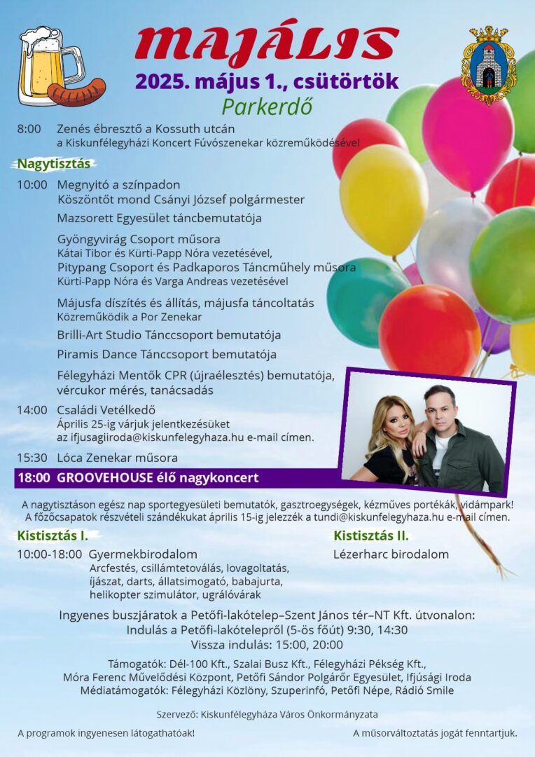 Keresztes Tünde, az önkormányzat kulturális referense elmondta, hogy idén is a hagyományos programelemek mellett újdonságokkal is készülnek, elsősorban a gyermekeknek. Ilyen lesz egy helikopter szimulátor a kistisztáson, valamint a lovas programok terén is több lehetőség közül választhatnak: a Zöldmező Lovas Sportegyesület mellett a Boldogságfarm pónijai is várják a vállalkozó kedvű kicsiket.