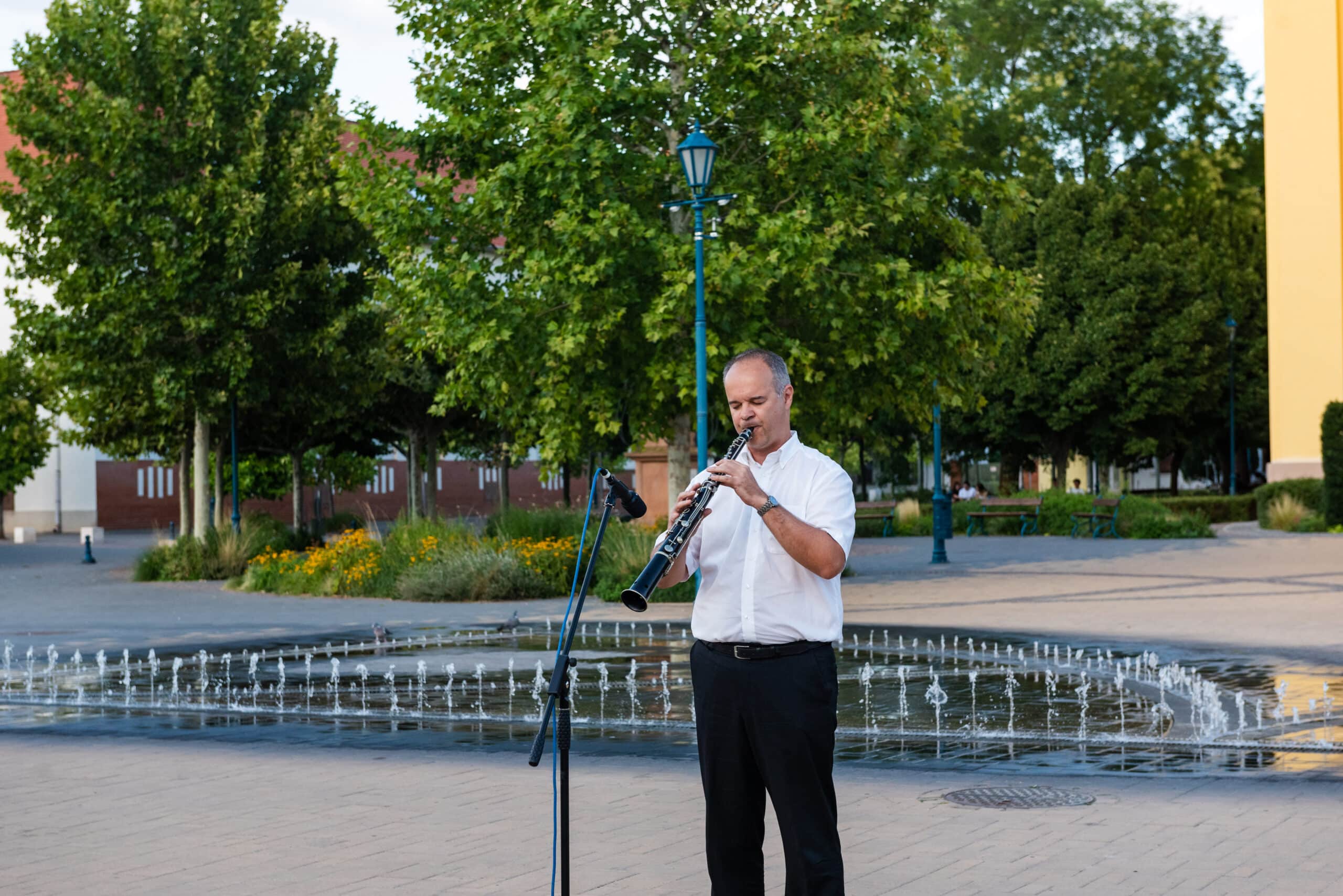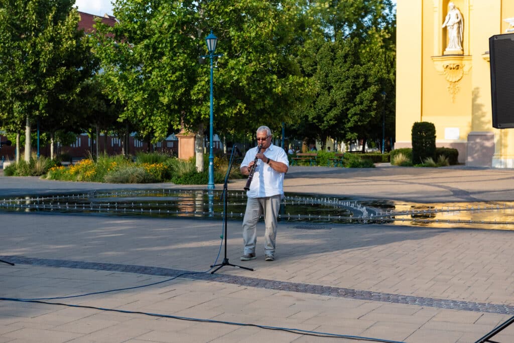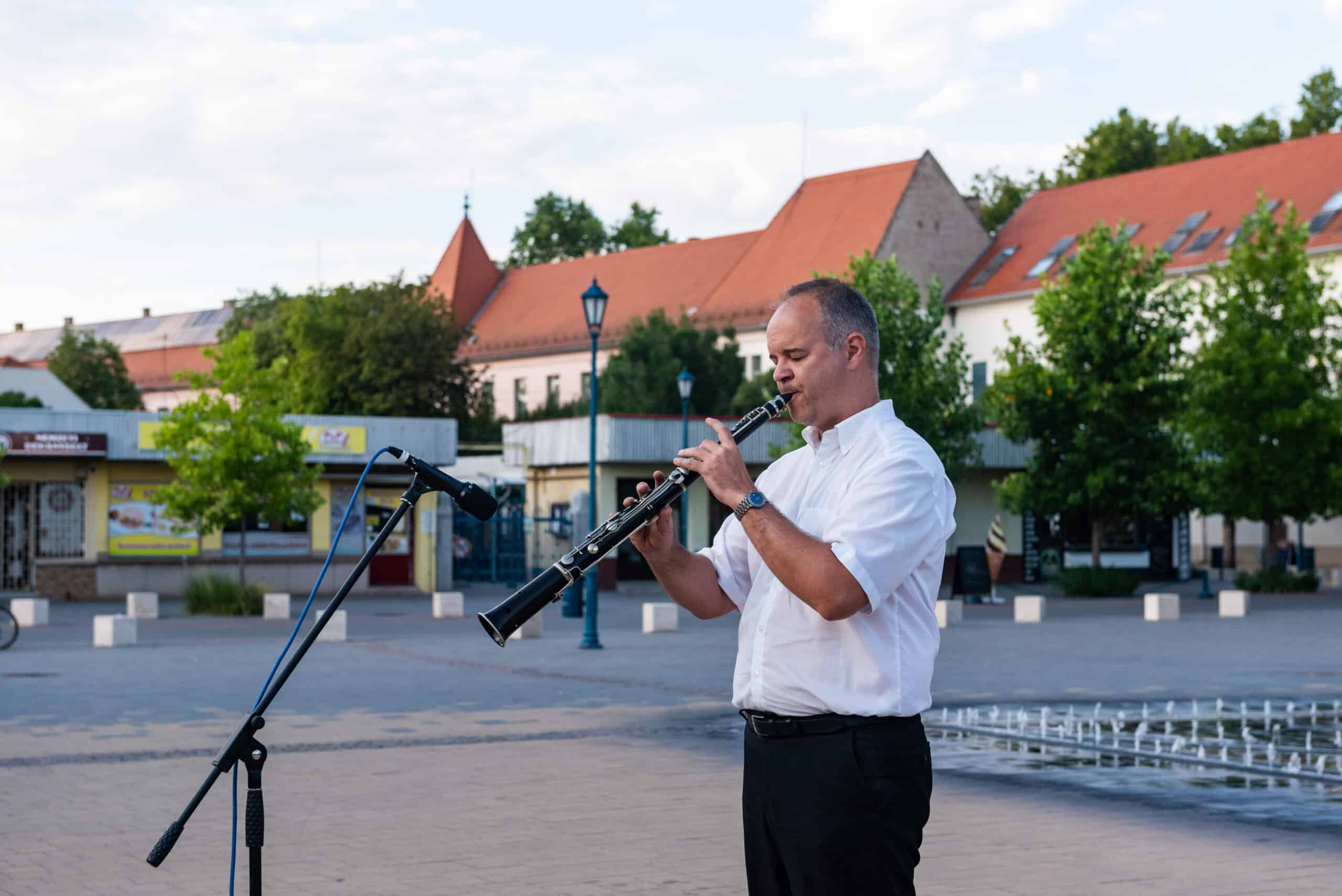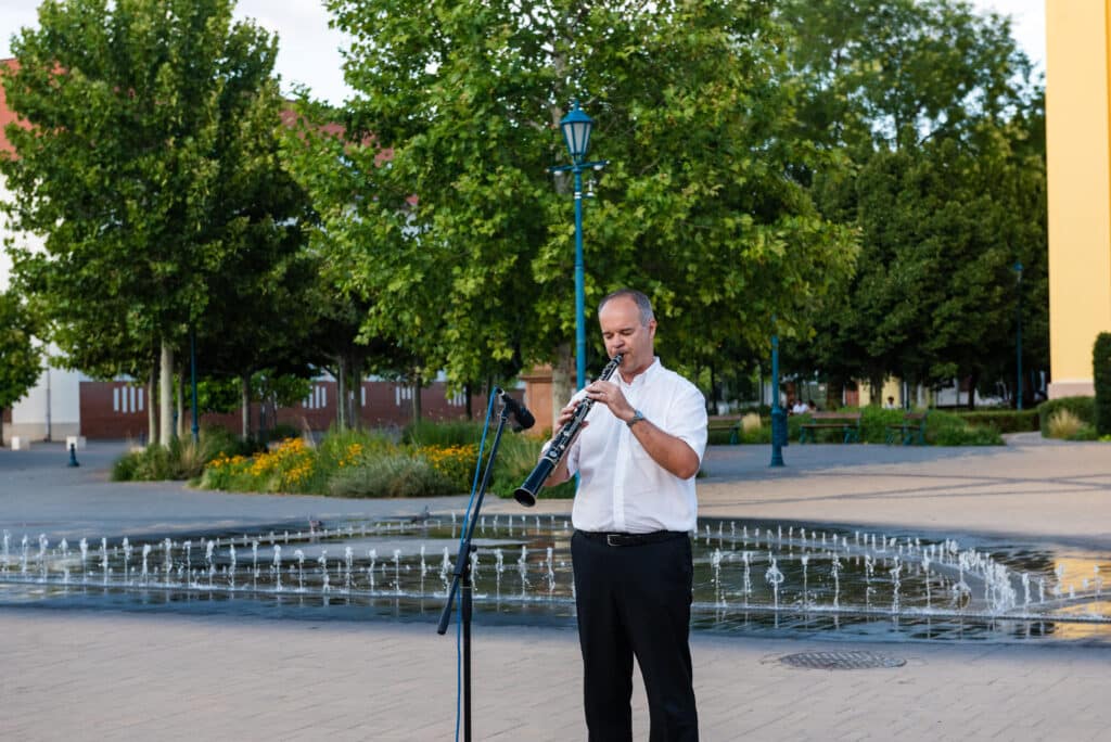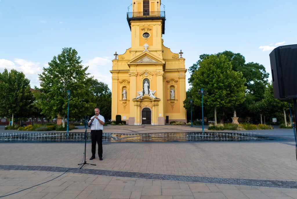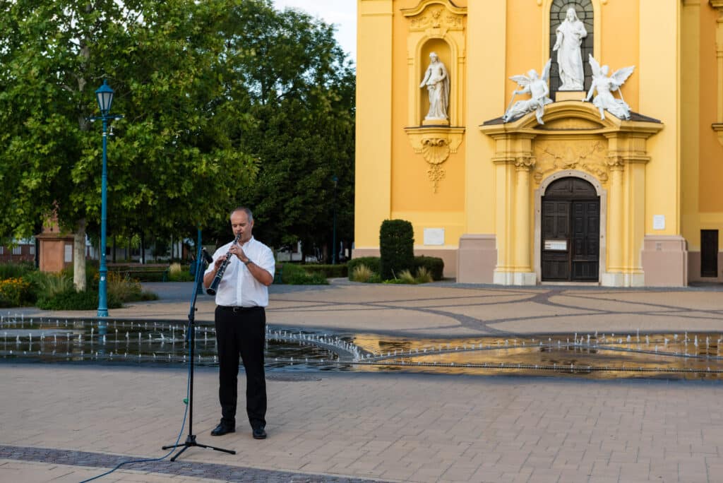 A hangverseny rendhagyó nyitánya volt, hogy a templom tornyában Dr. Francia László állt, és onnan szólaltatta meg hangszerét. A magasból a tárogató hangja áradt szét a Béke téren, ünnepélyes hangulatot teremtve.