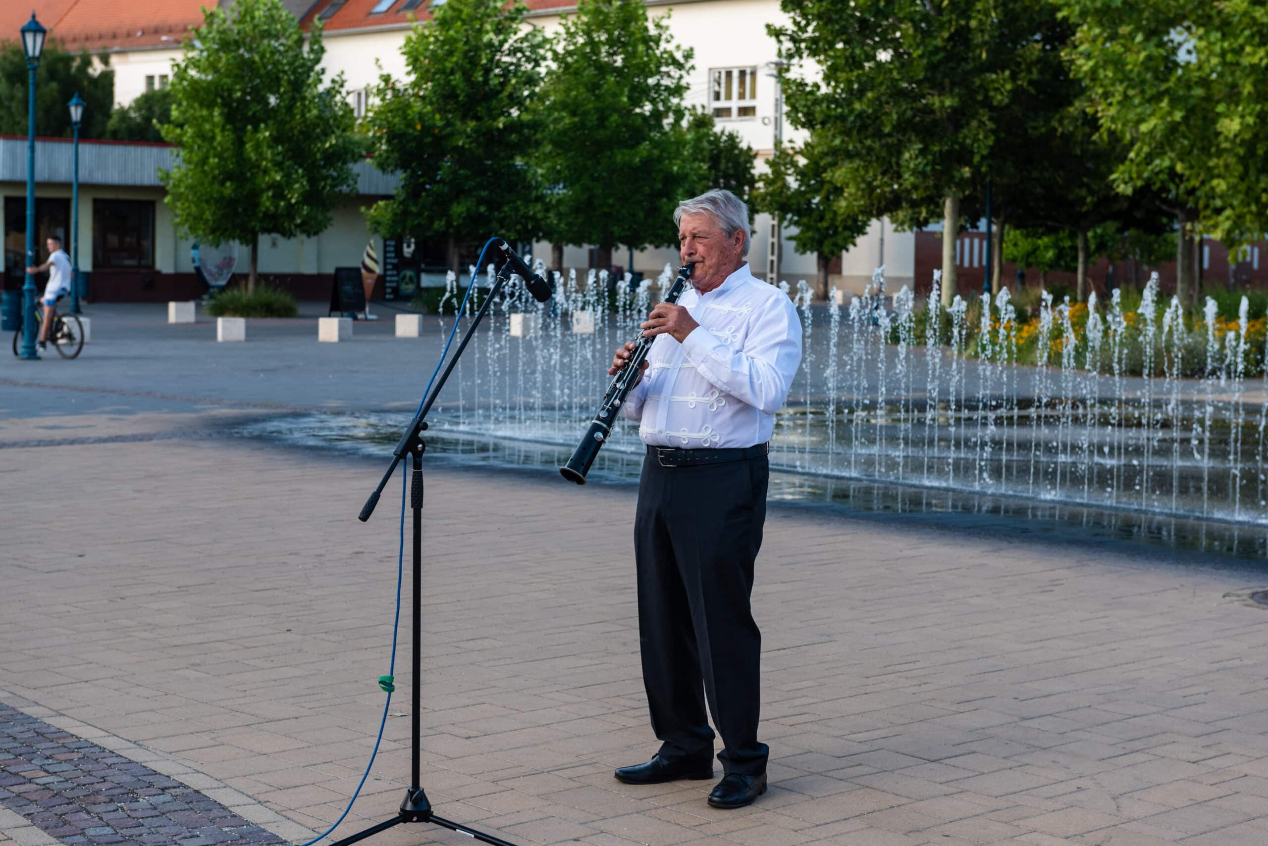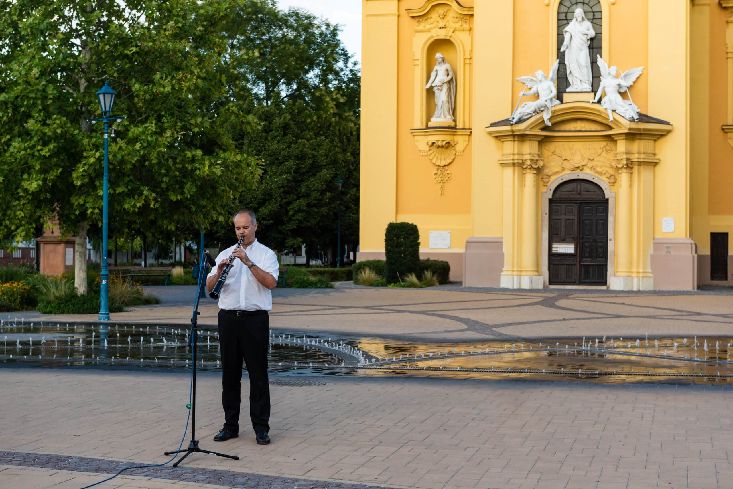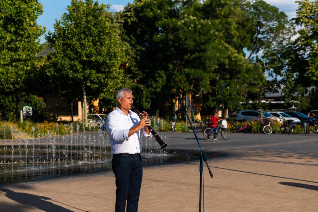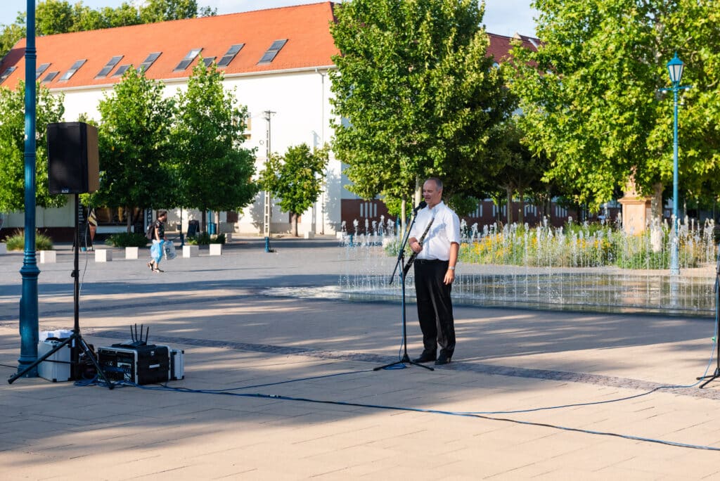 A hangverseny rendhagyó nyitánya volt, hogy a templom tornyában Dr. Francia László állt, és onnan szólaltatta meg hangszerét. A magasból a tárogató hangja áradt szét a Béke téren, ünnepélyes hangulatot teremtve.