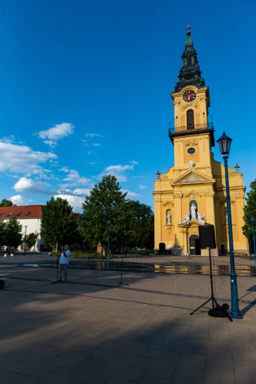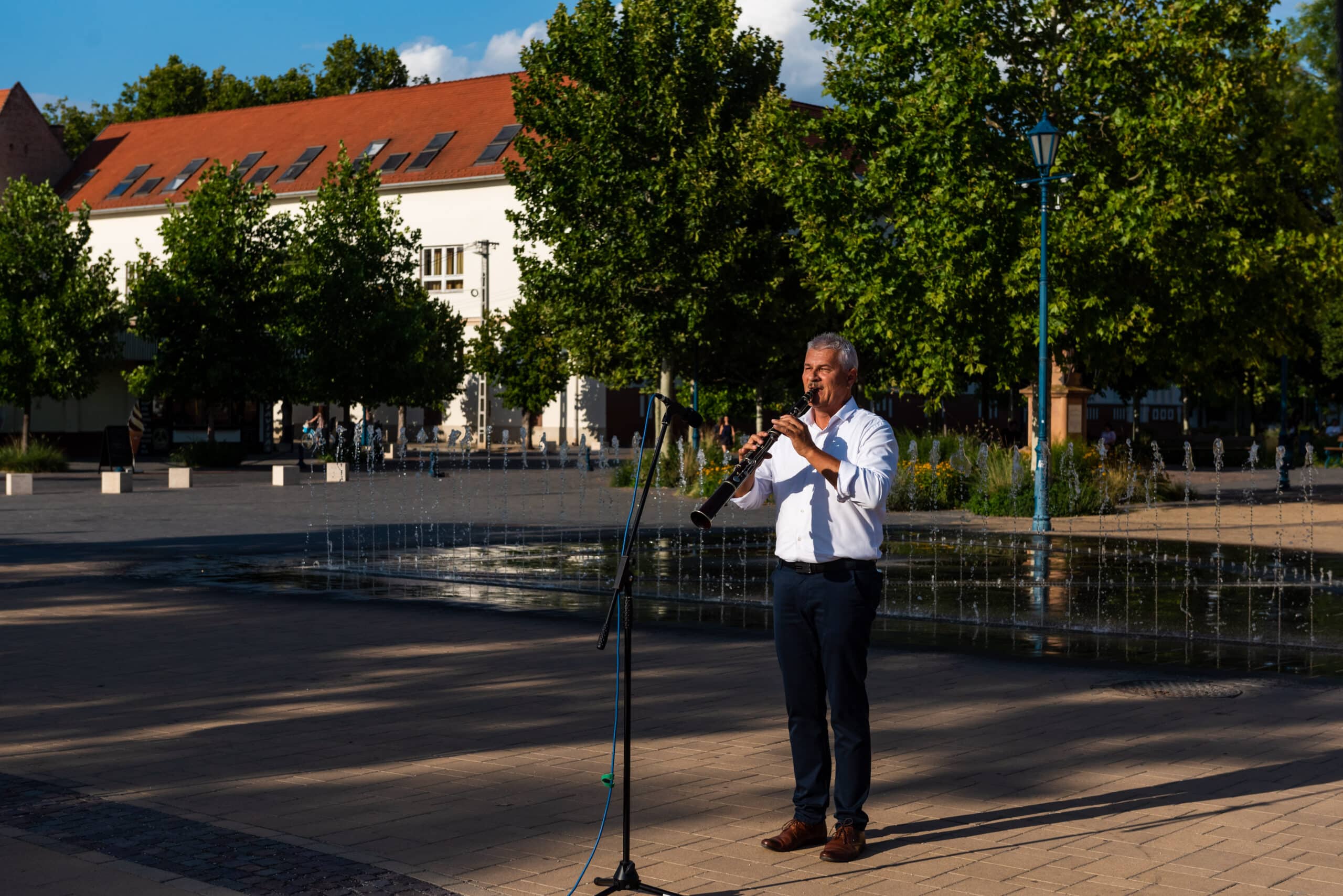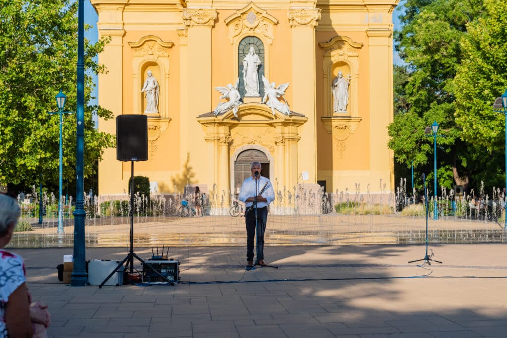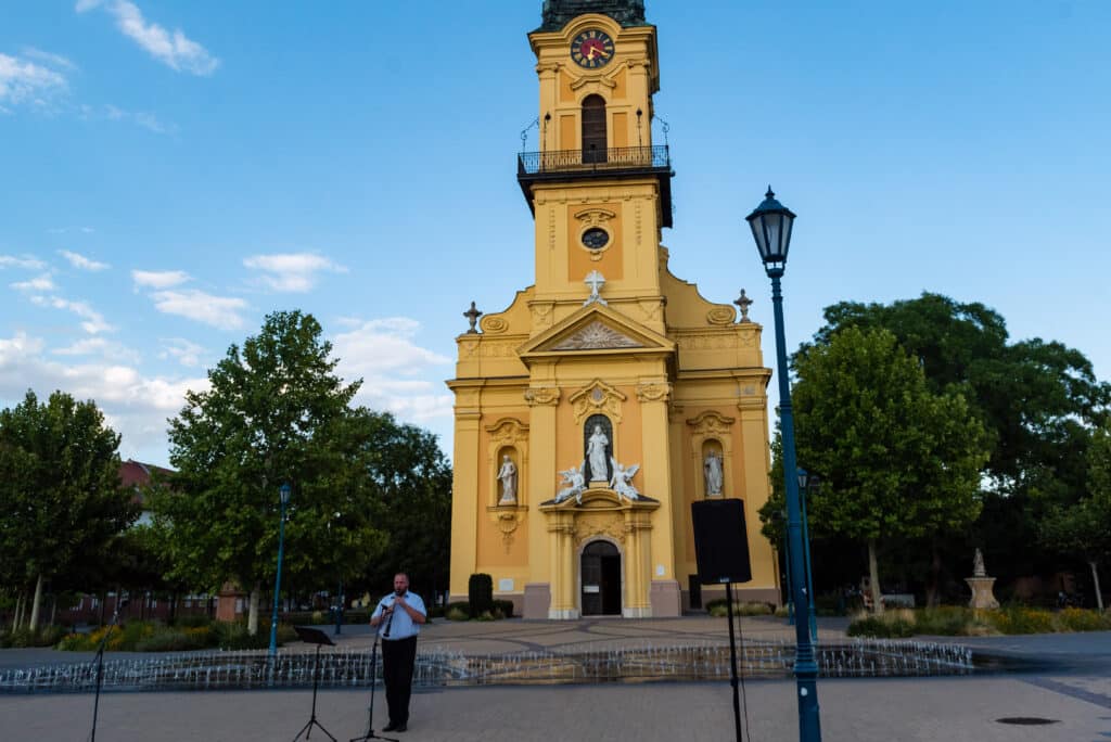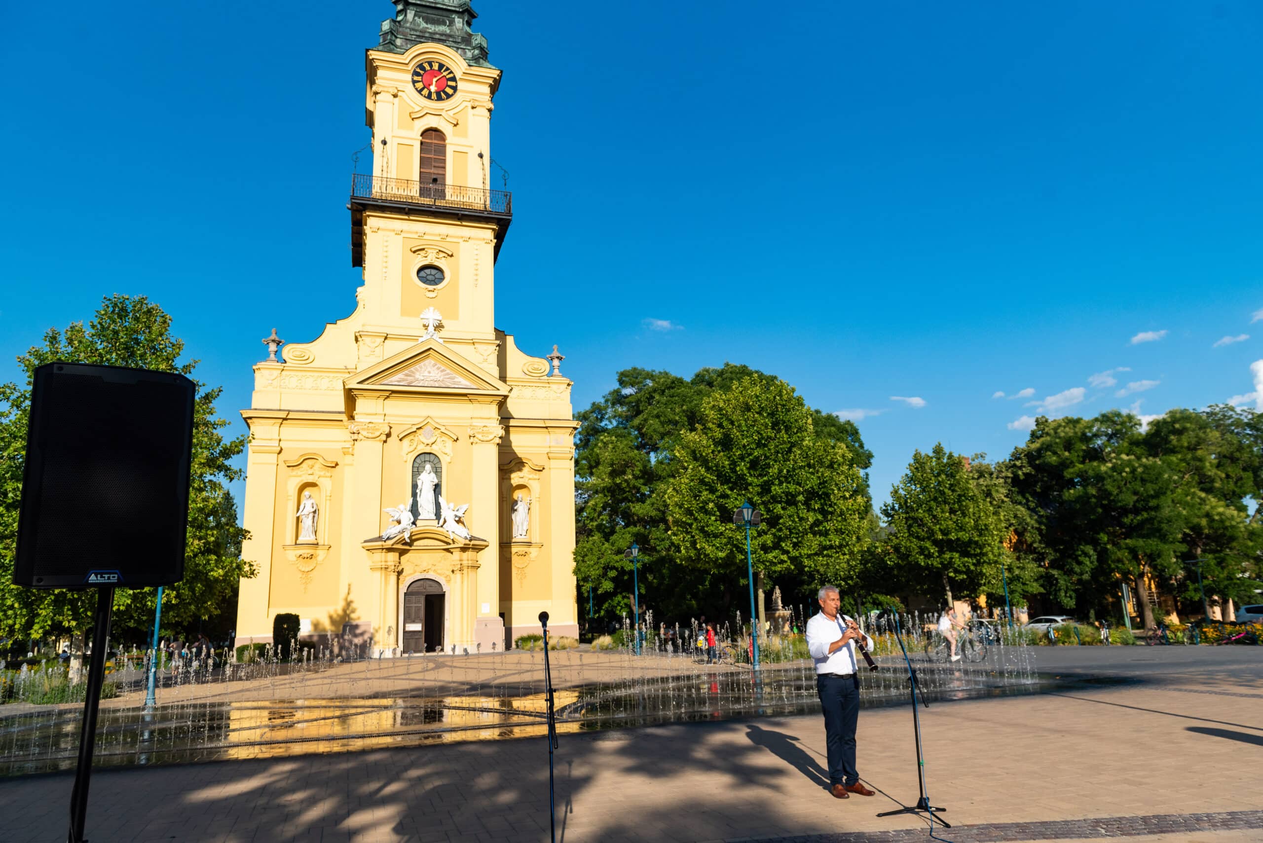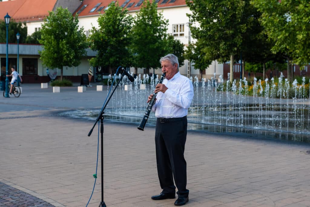 A hangverseny rendhagyó nyitánya volt, hogy a templom tornyában Dr. Francia László állt, és onnan szólaltatta meg hangszerét. A magasból a tárogató hangja áradt szét a Béke téren, ünnepélyes hangulatot teremtve.