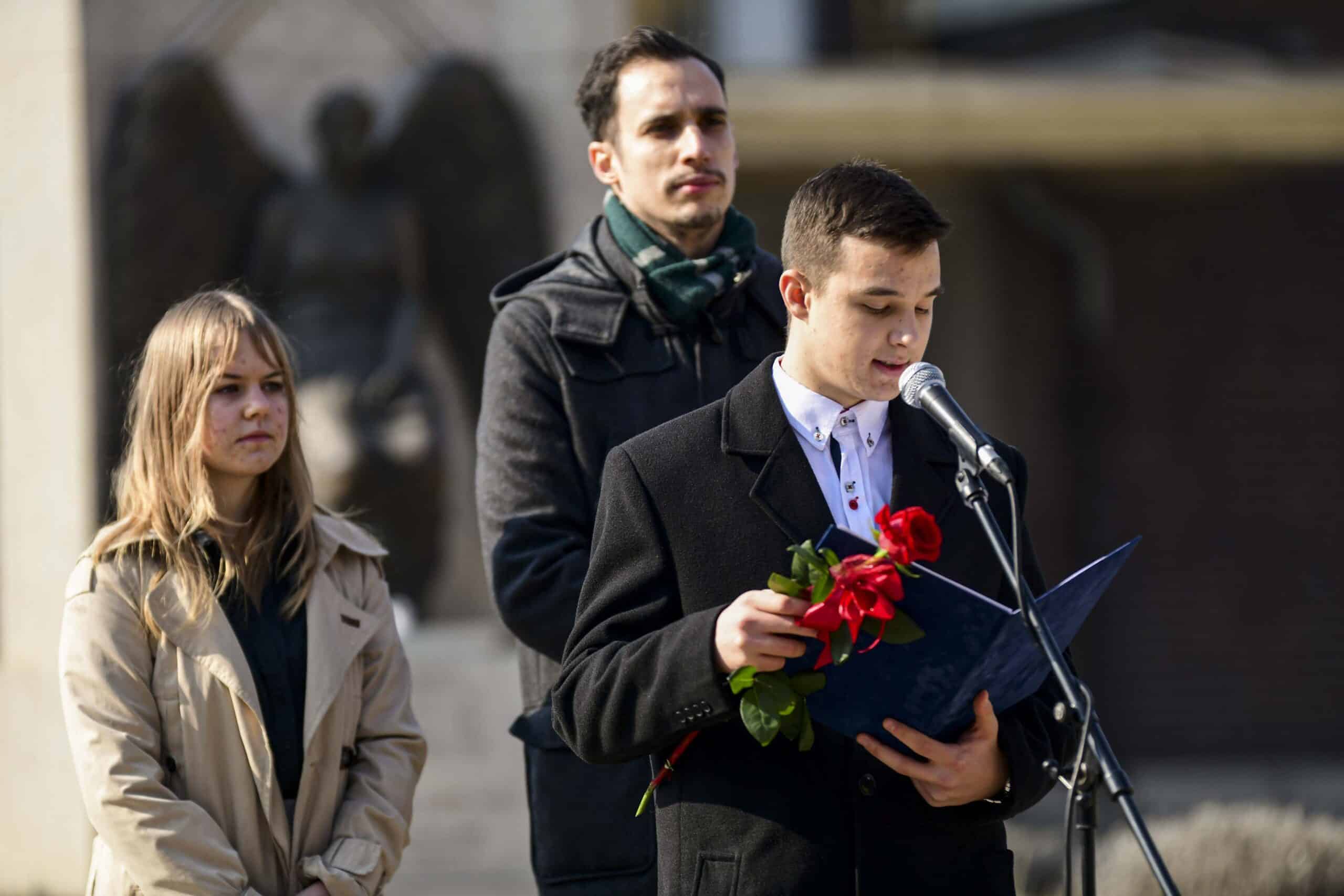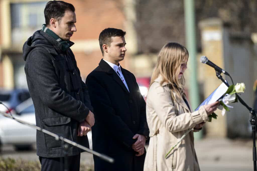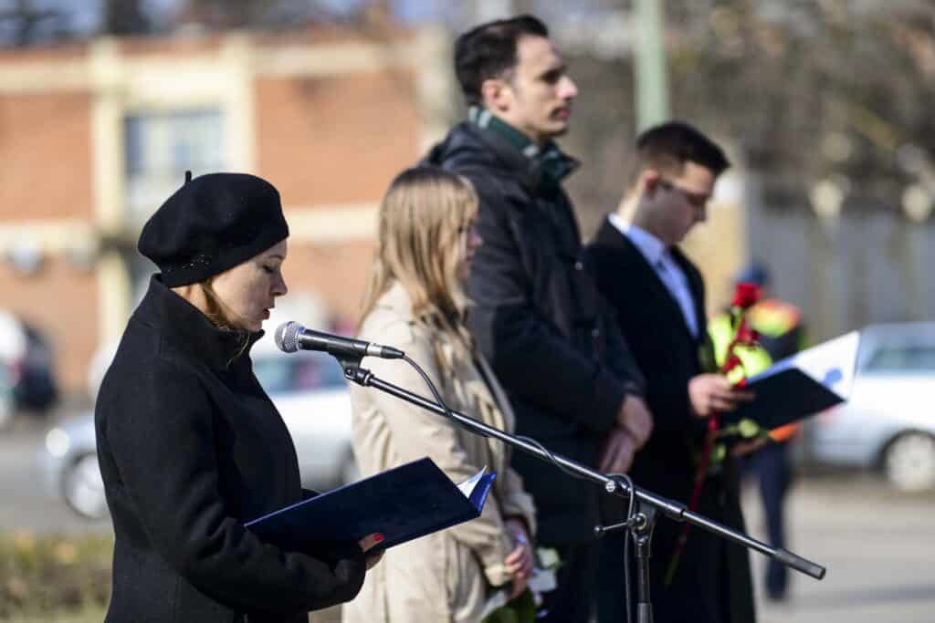 Görög Anita közművelődési referens köszöntőjét követően Magony Ádám, a Kiskun Múzeum munkatársa, Rádi Olivér a Kiskunfélegyházi Szent Benedek Két Tanítási Nyelvű Technikum és Kis Izabella a Móra Ferenc Gimnázium diákjának „Vörös, fehér, zöld” című megemlékező műsora következett.